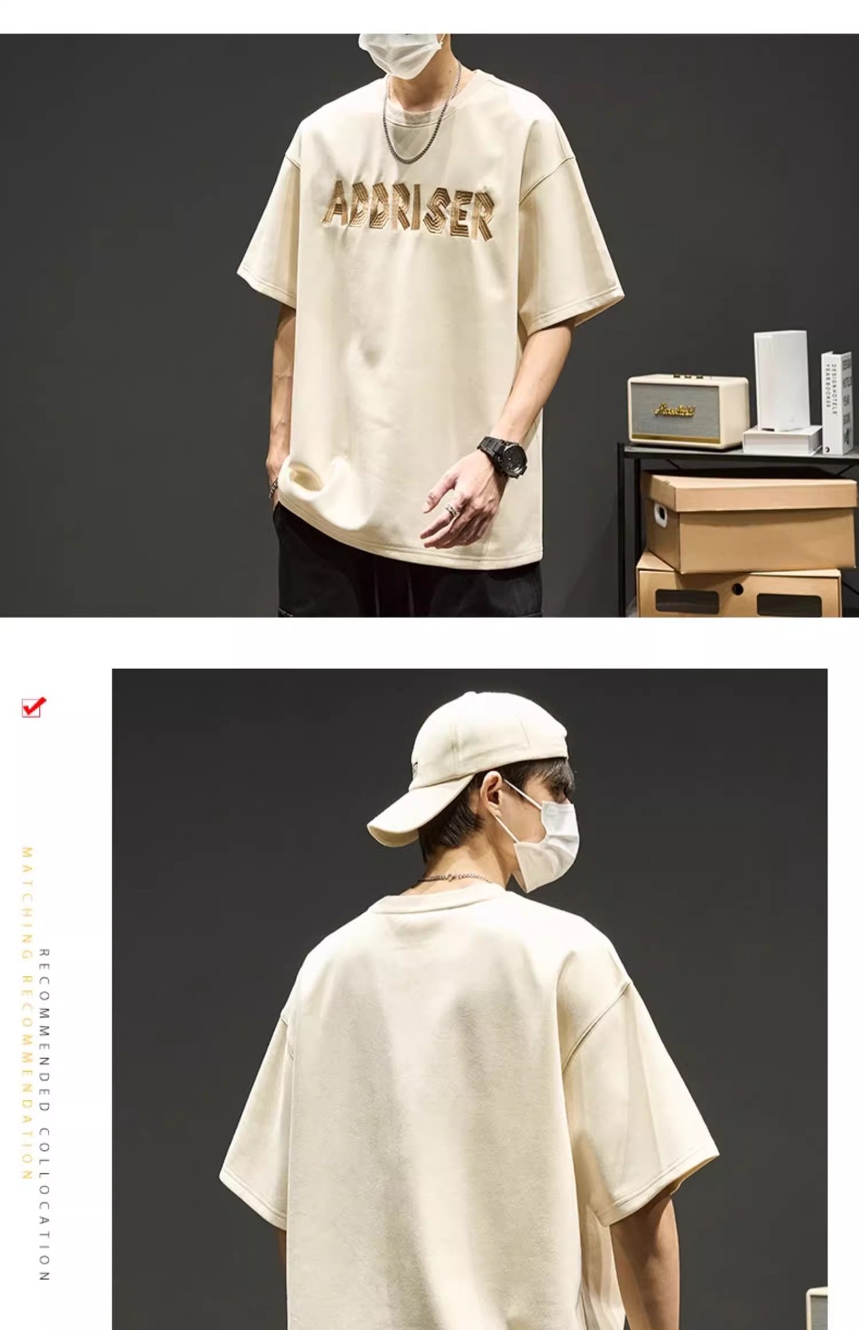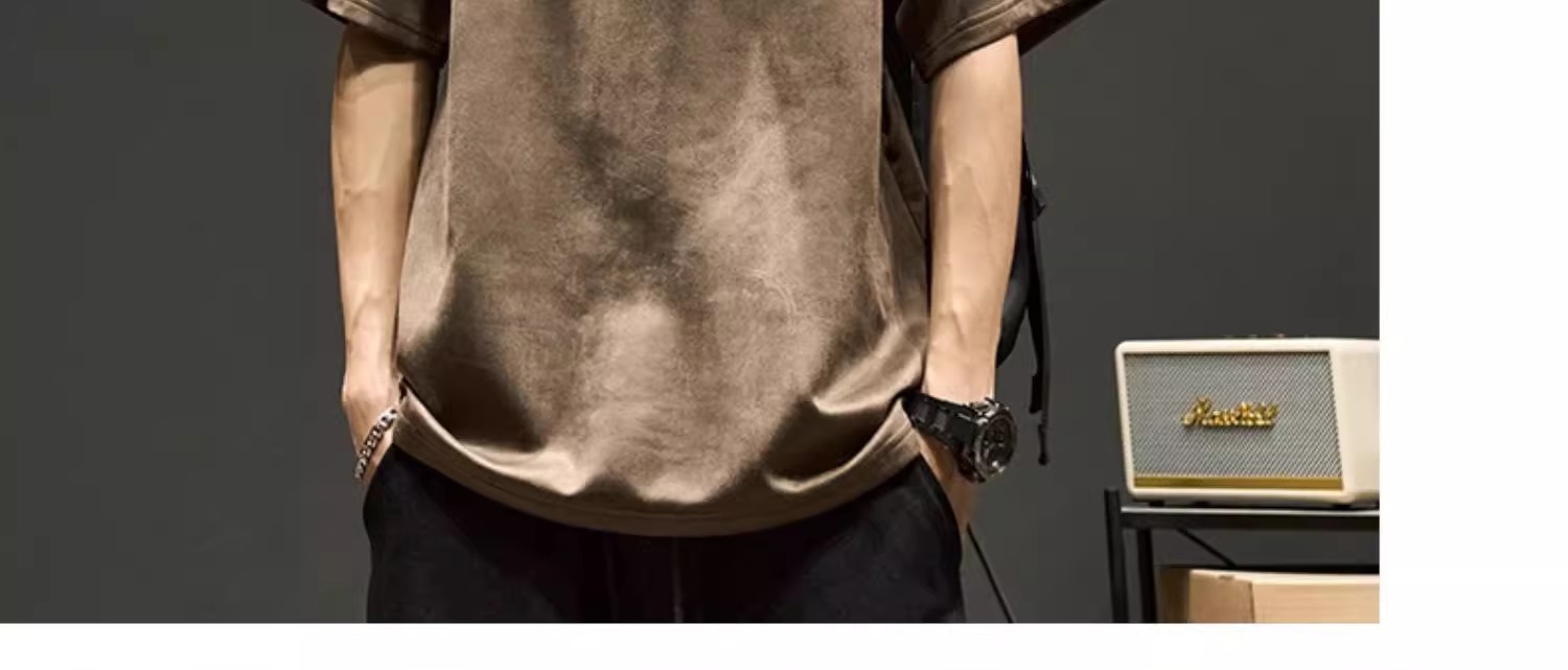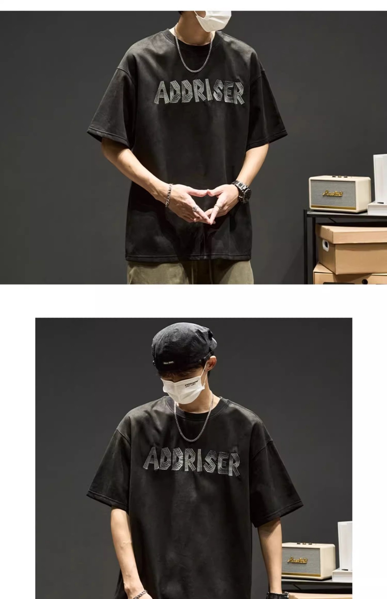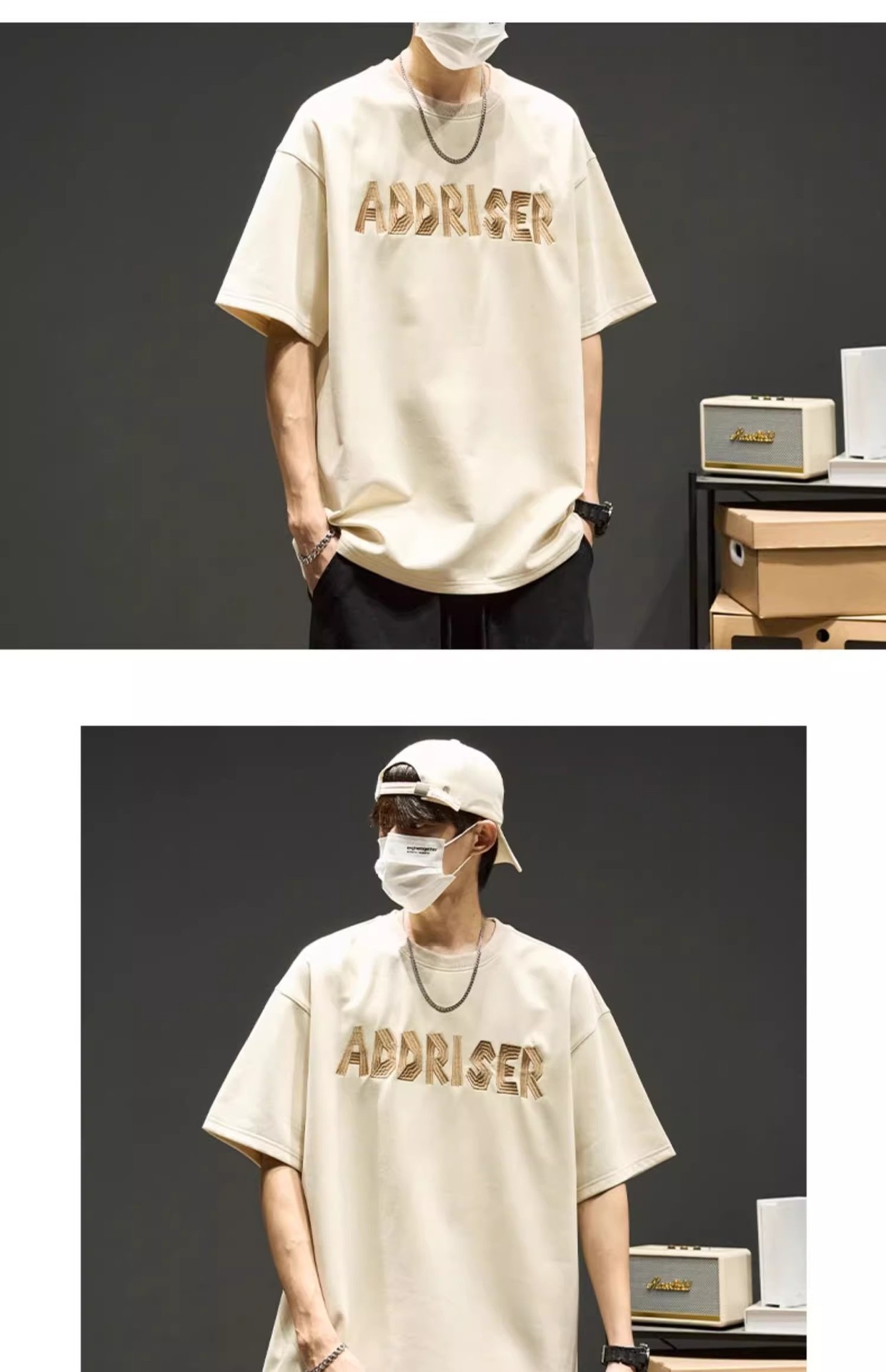 티셔츠 남자 여름 미국 스타일 하이 스트리트 트렌디 브랜드 자수 편지 크루 넥 탑 남자 2025 뉴 스웨이드 쇼트 슬리브 탑스토어 가기