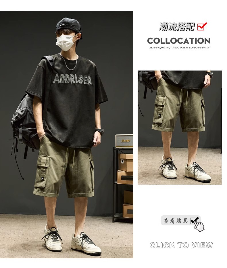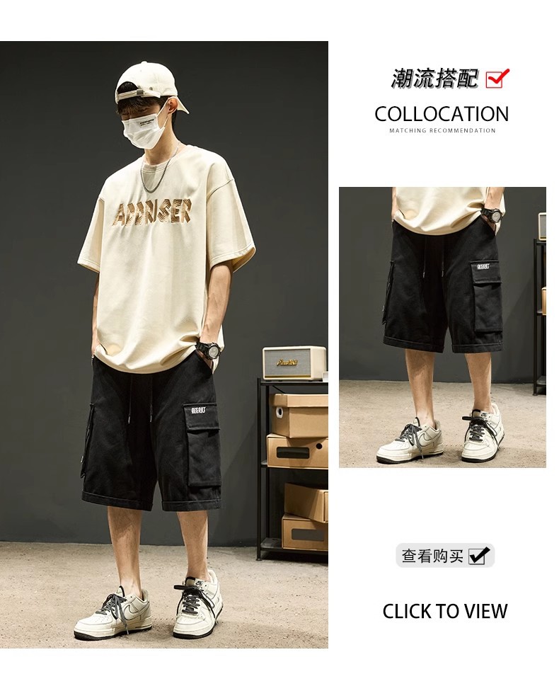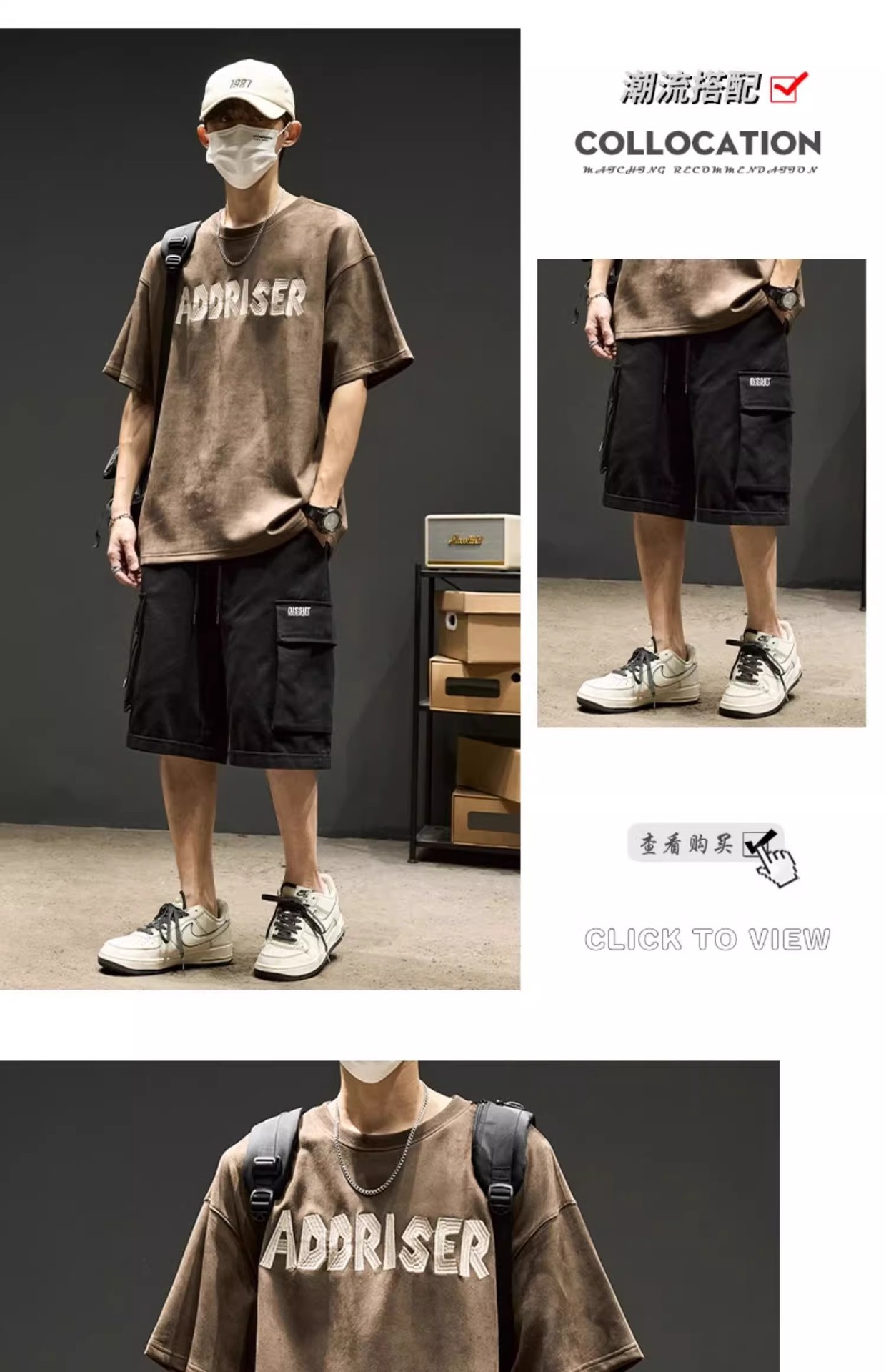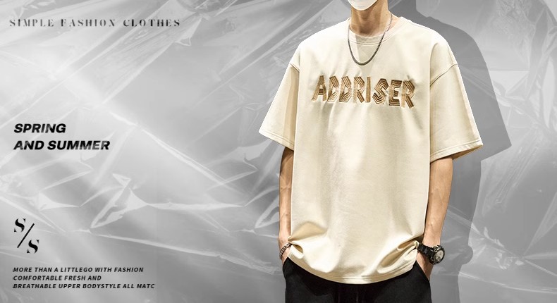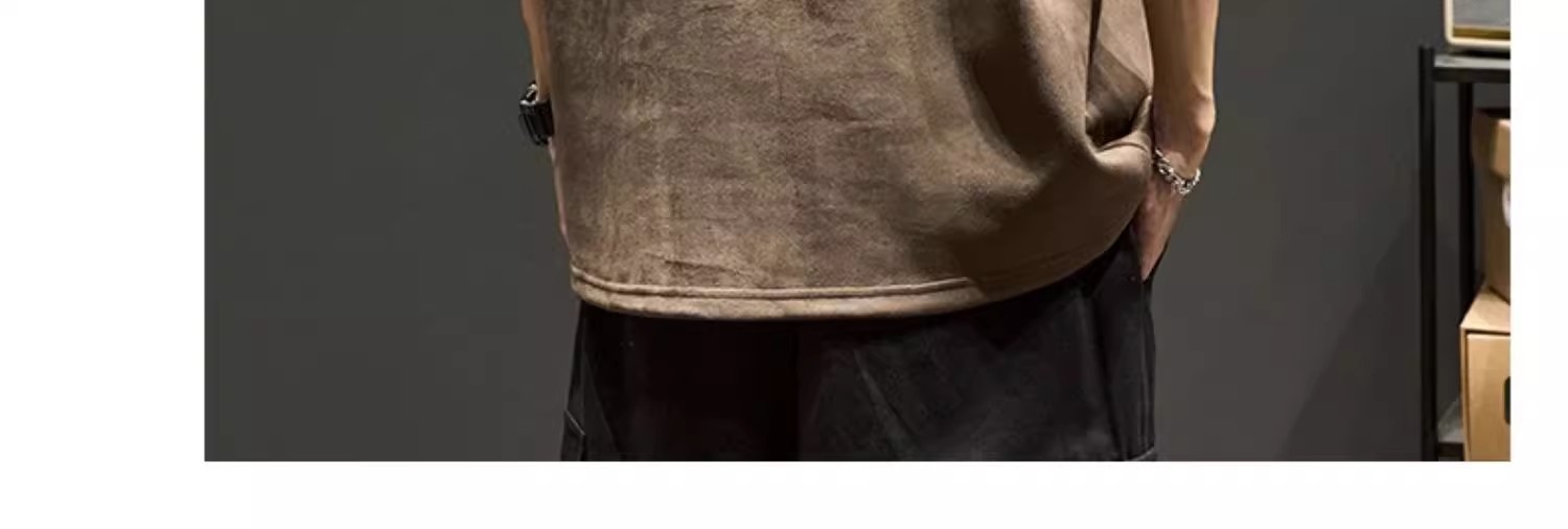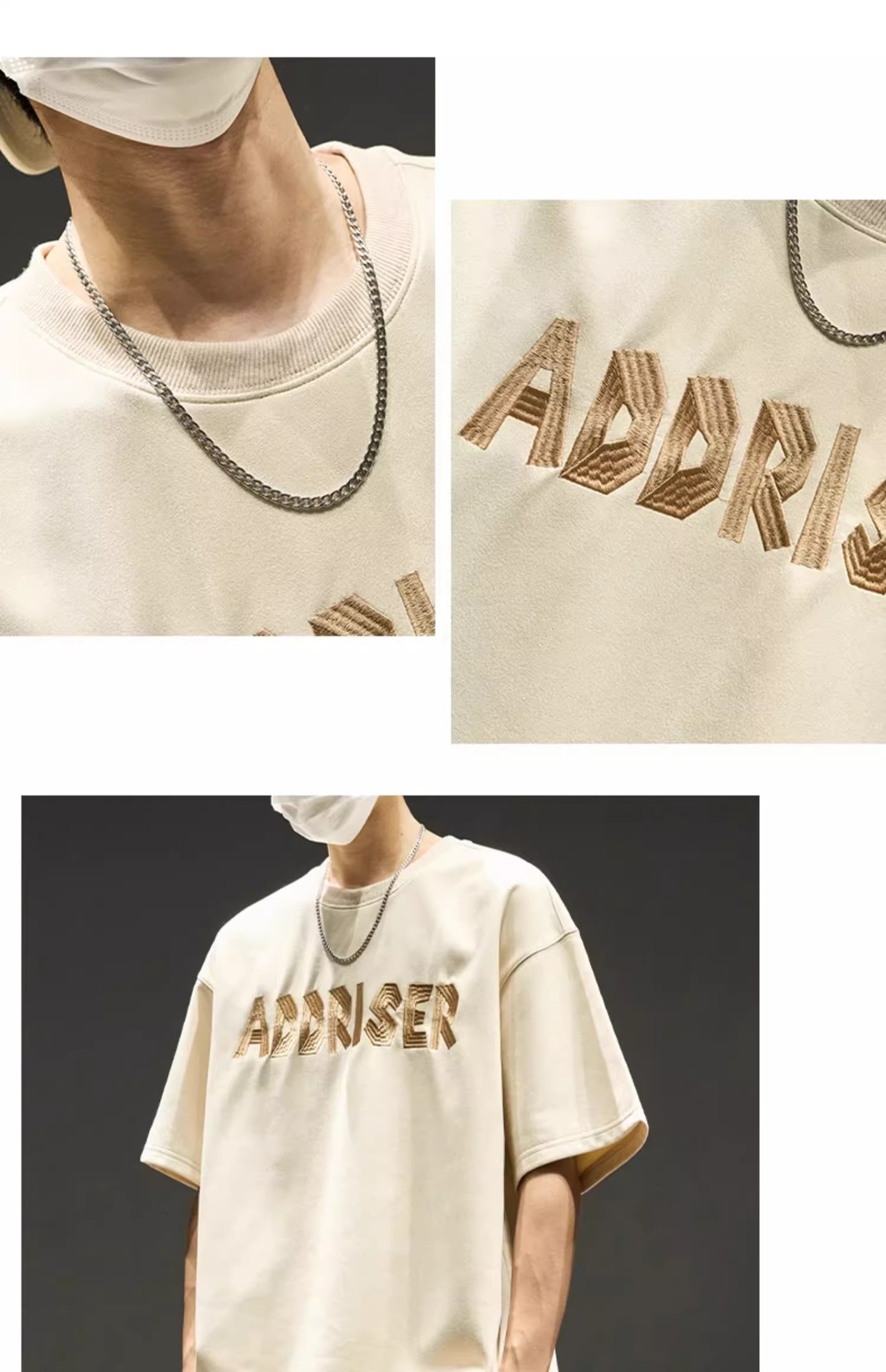 티셔츠 남자 여름 미국 스타일 하이 스트리트 트렌디 브랜드 자수 편지 크루 넥 탑 남자 2025 뉴 스웨이드 쇼트 슬리브 탑스토어 가기