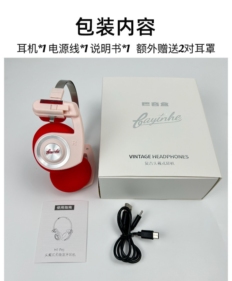 包装清单:耳机/充电线/中英文说明书/耳罩2对
