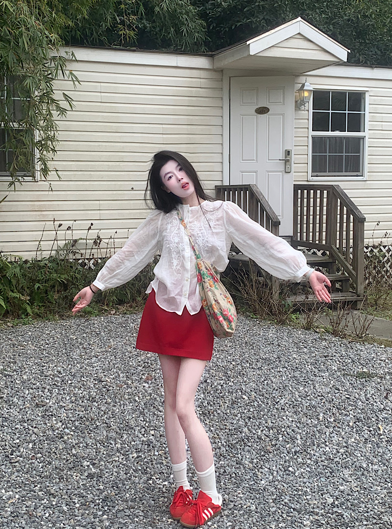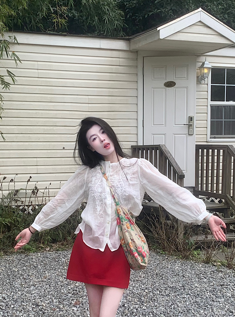 수 놓은 마이크로 투명 레이스 긴 소매 선 스크린 카디건 달콤하고 매운 스타일 반쪽 길이 스커트 여성의 2025 년 이른 봄 새로운 패션 세트