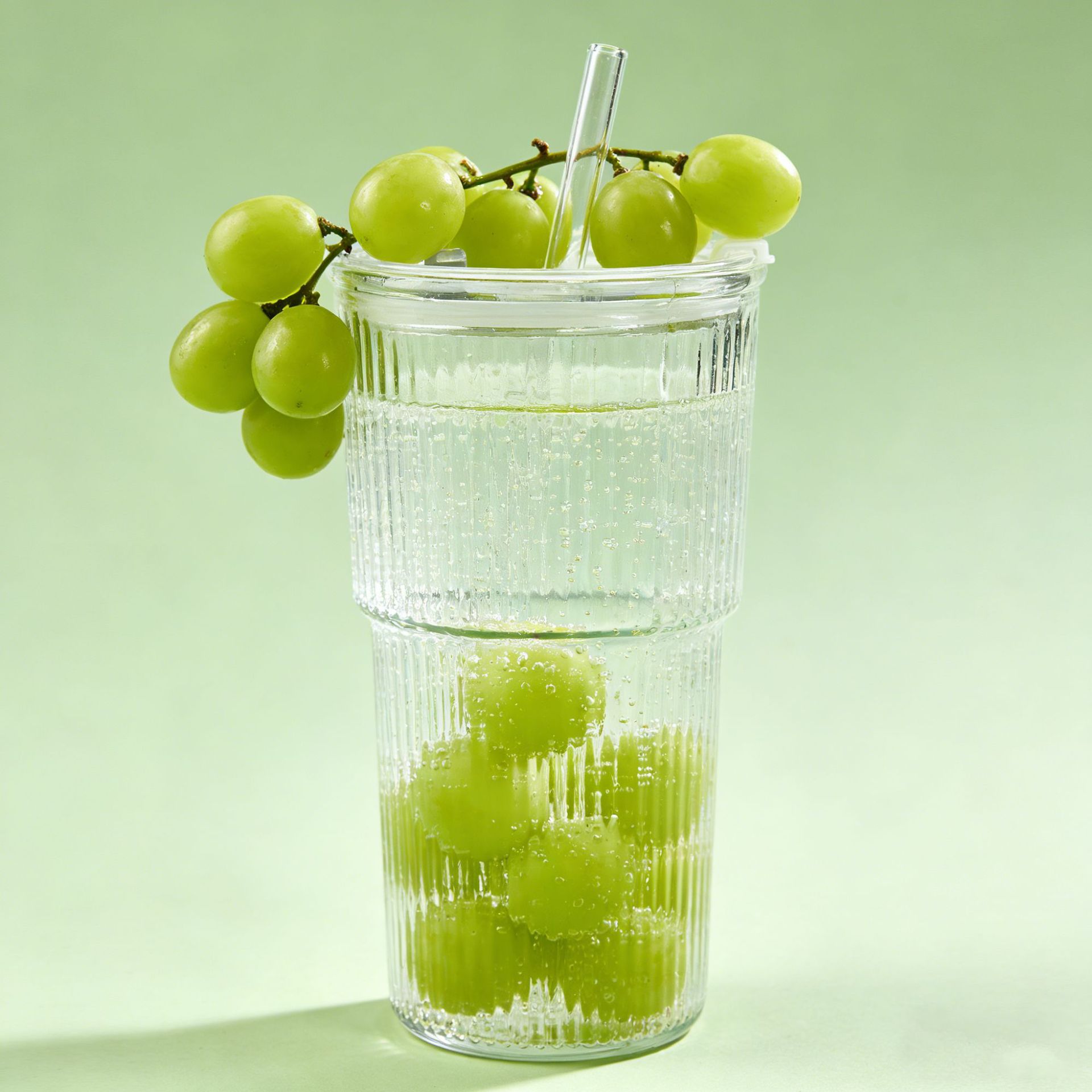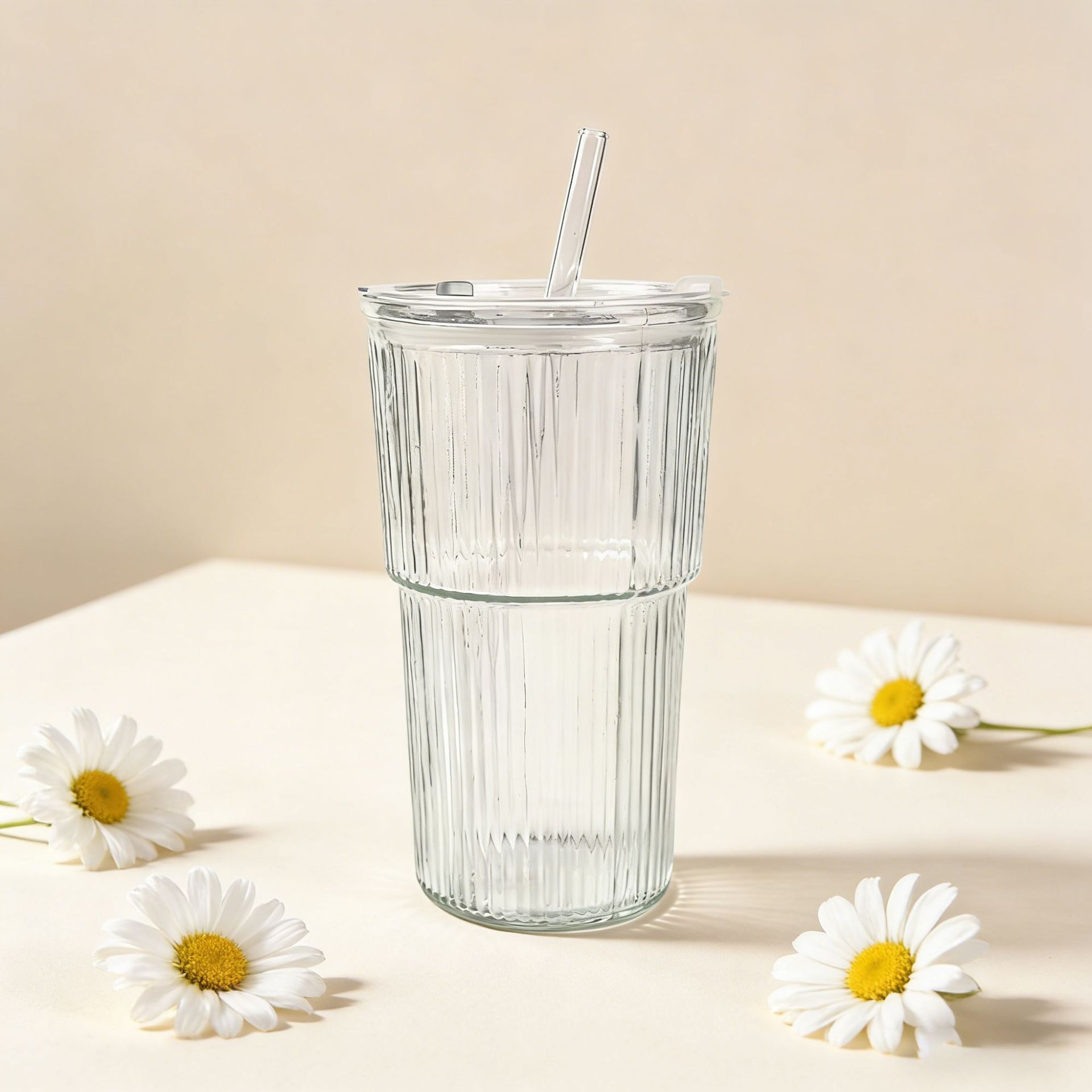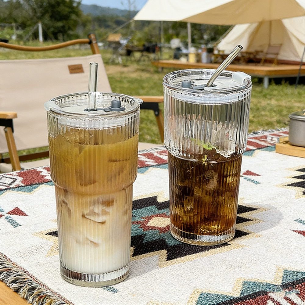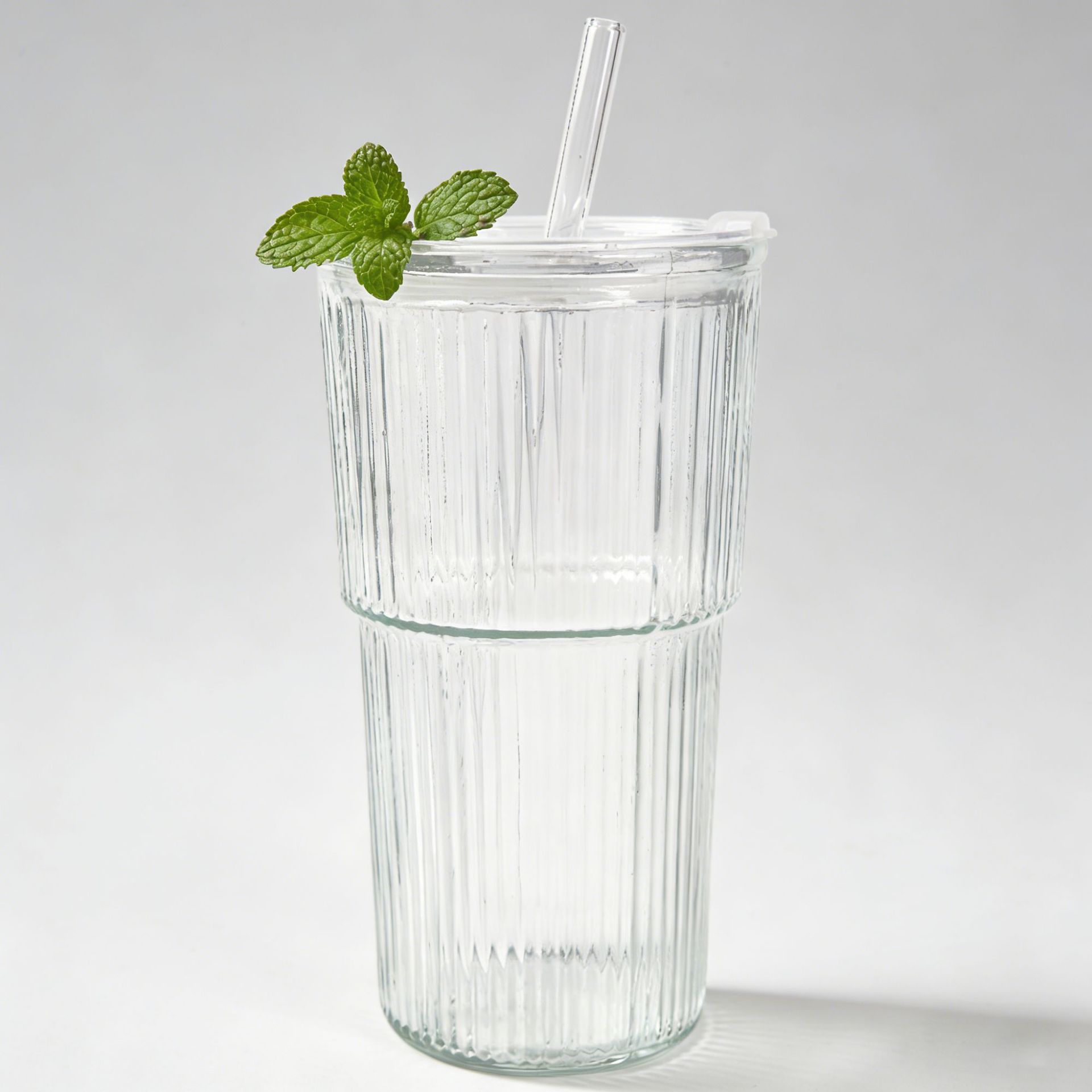 무료 배송 Ins 스타일 유리 아이스 아메리칸 스타일 대형 수직 패턴 흡입 튜브 컵 여름 차가운 음료 컵 가구 큰 용량 뚜껑