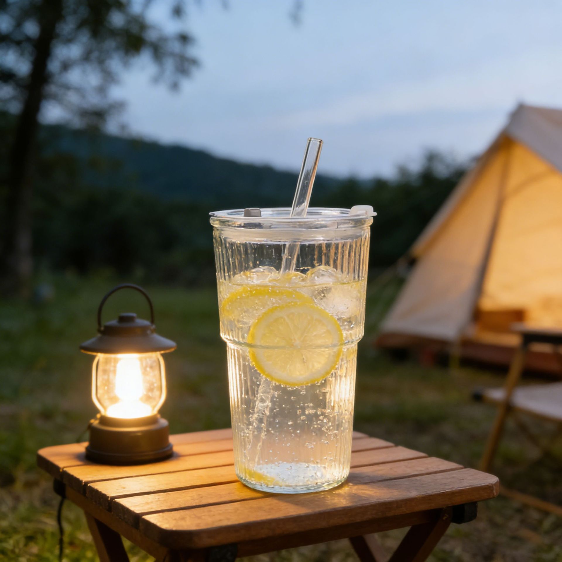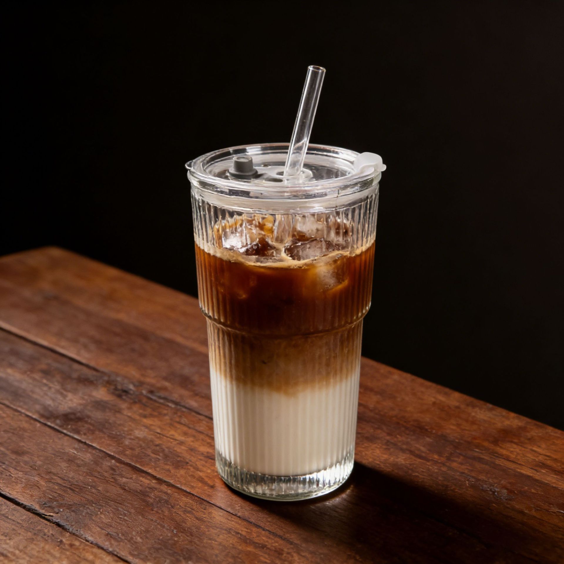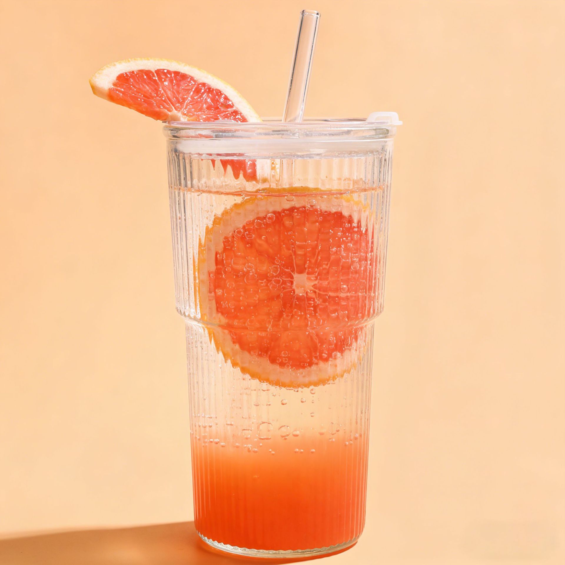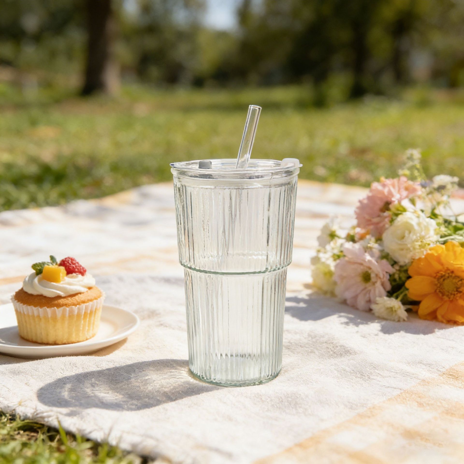 무료 배송 Ins 스타일 유리 아이스 아메리칸 스타일 대형 수직 패턴 흡입 튜브 컵 여름 차가운 음료 컵 가구 큰 용량 뚜껑