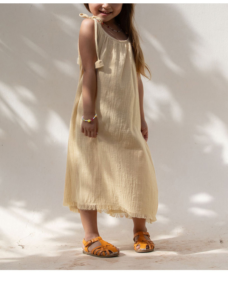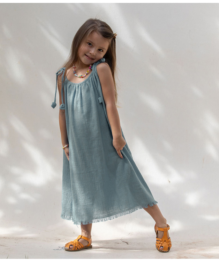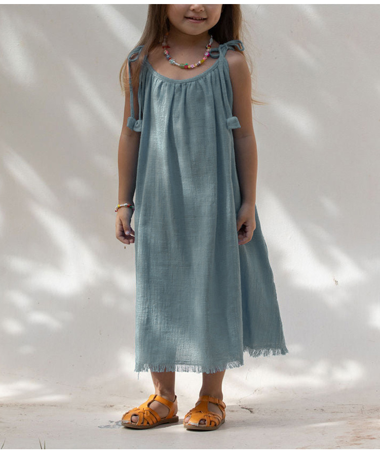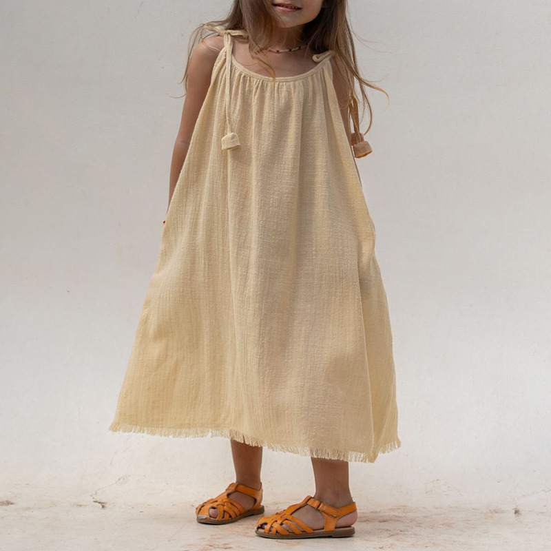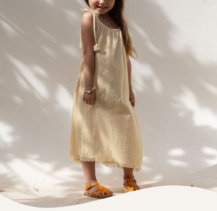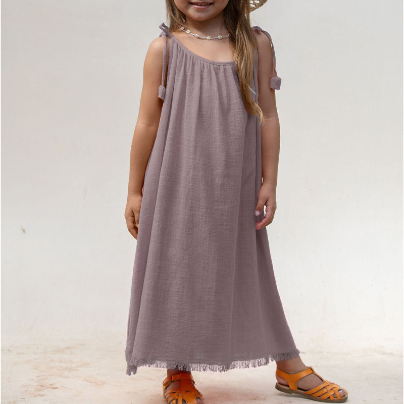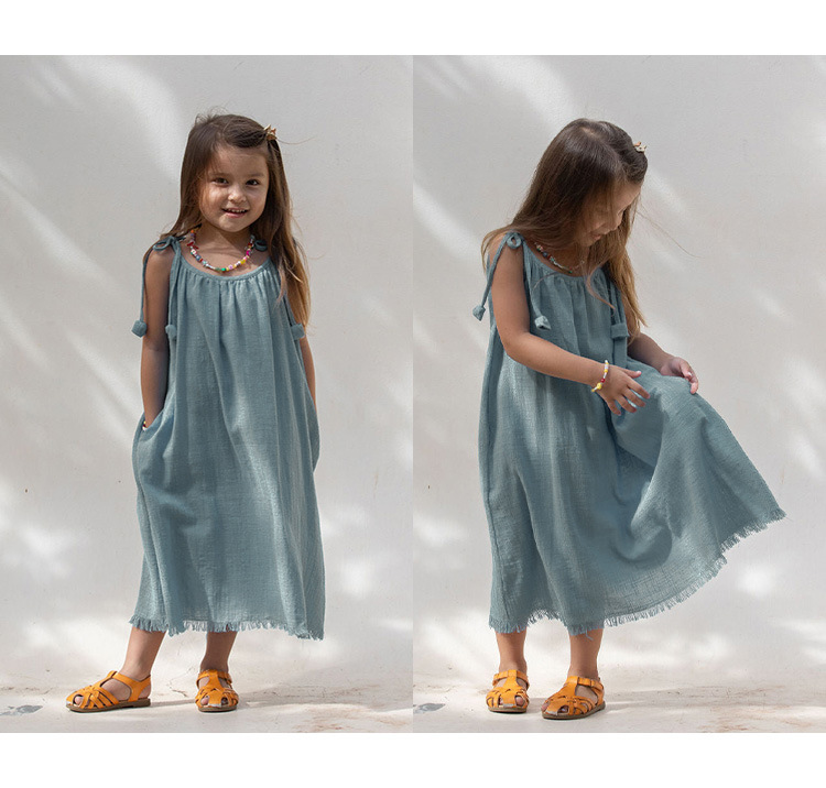 순수한면 민소매 해변 긴 원피스 캐주얼 홀리데이 스타일 슬립 스커트 아동복 주름진 승무원 귀여운 원피스 소녀 아기스토어 가기