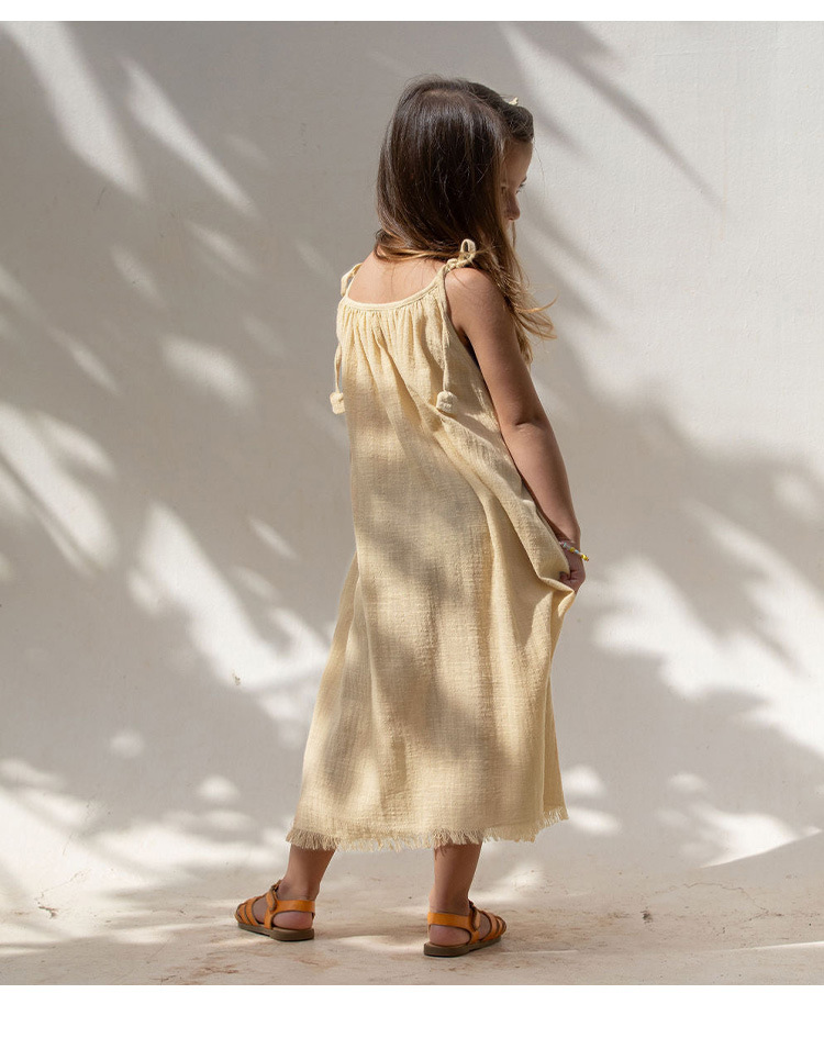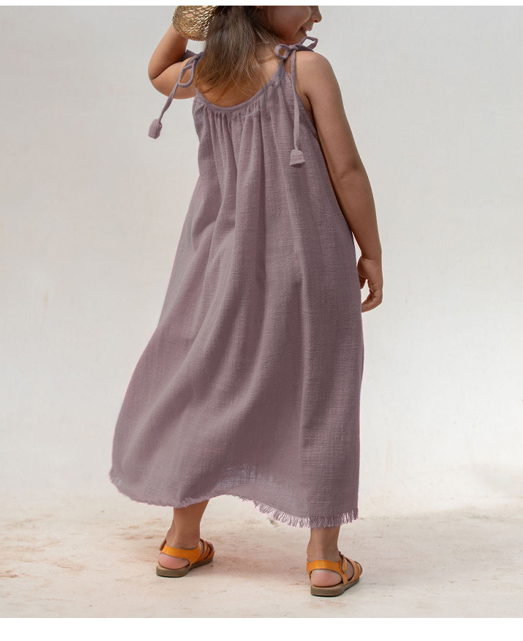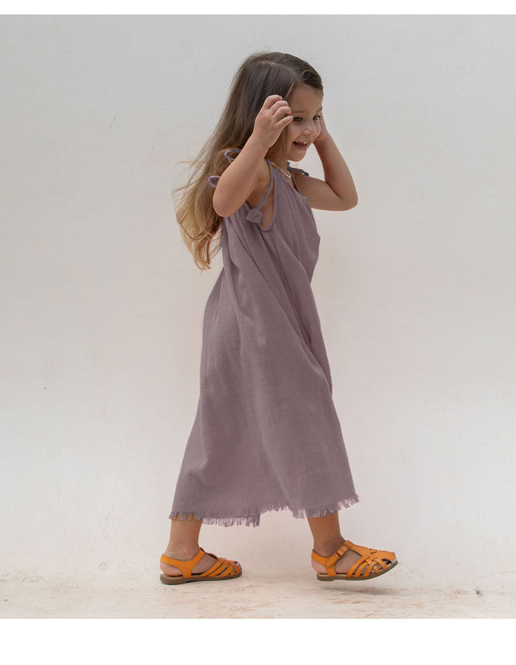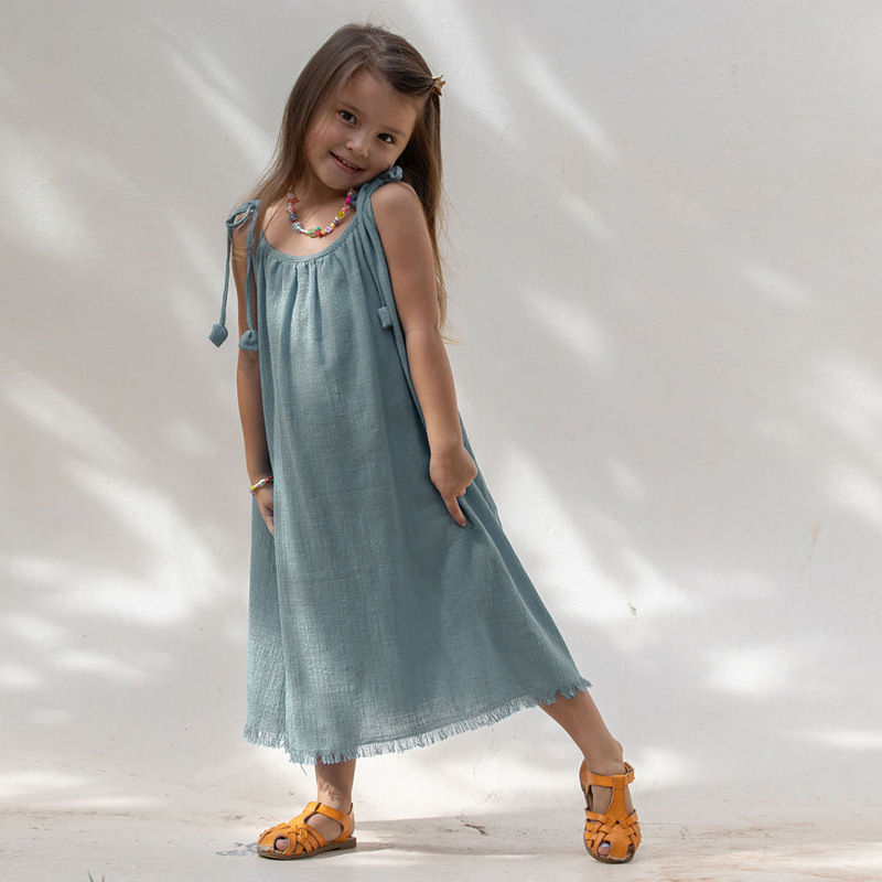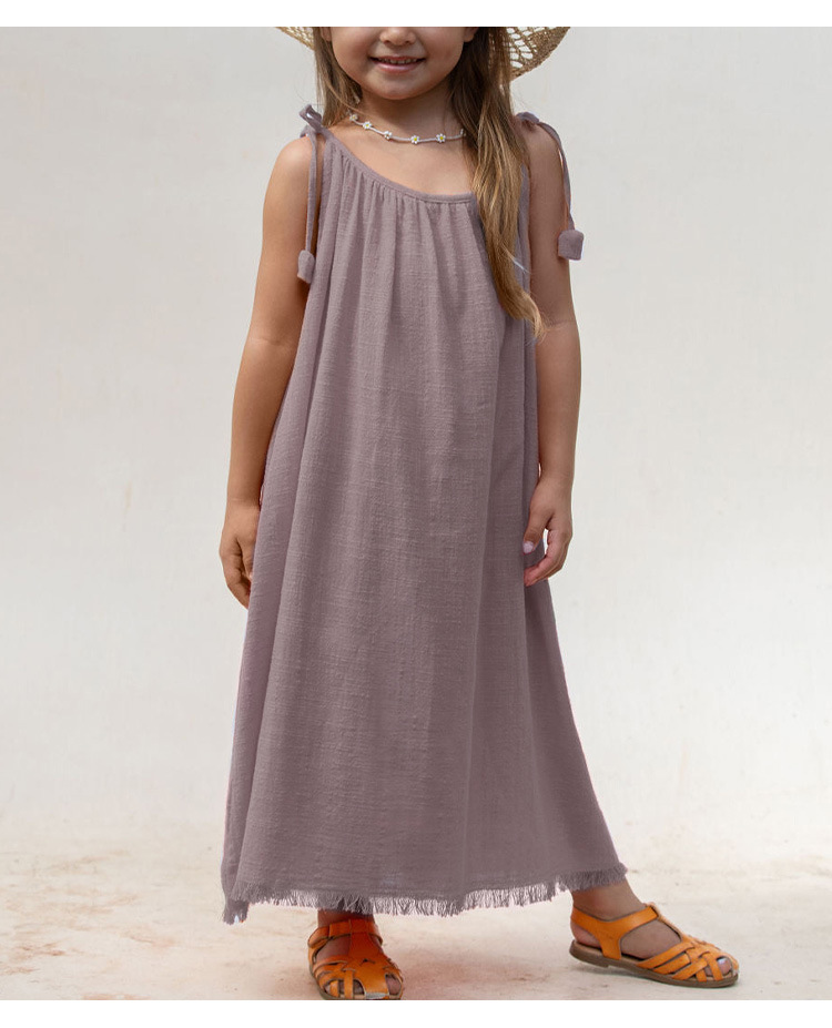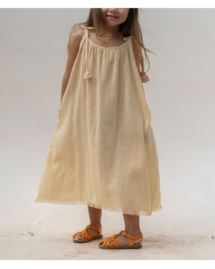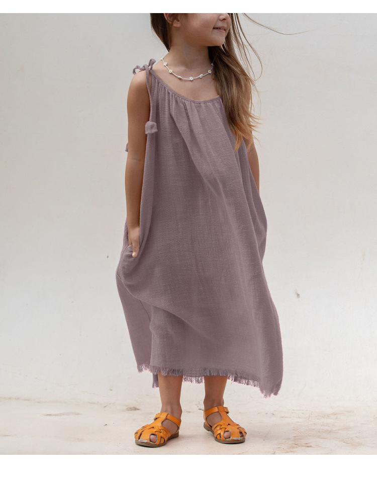 순수한면 민소매 해변 긴 원피스 캐주얼 홀리데이 스타일 슬립 스커트 아동복 주름진 승무원 귀여운 원피스 소녀 아기스토어 가기