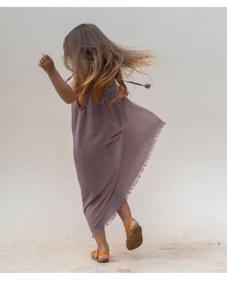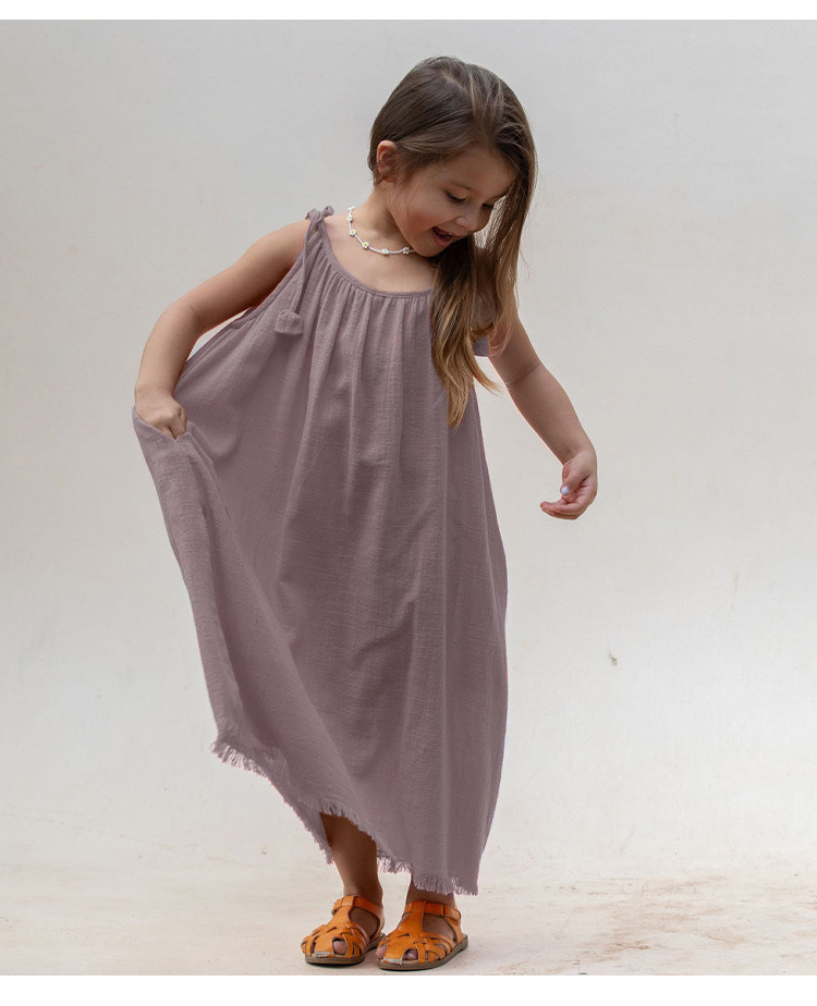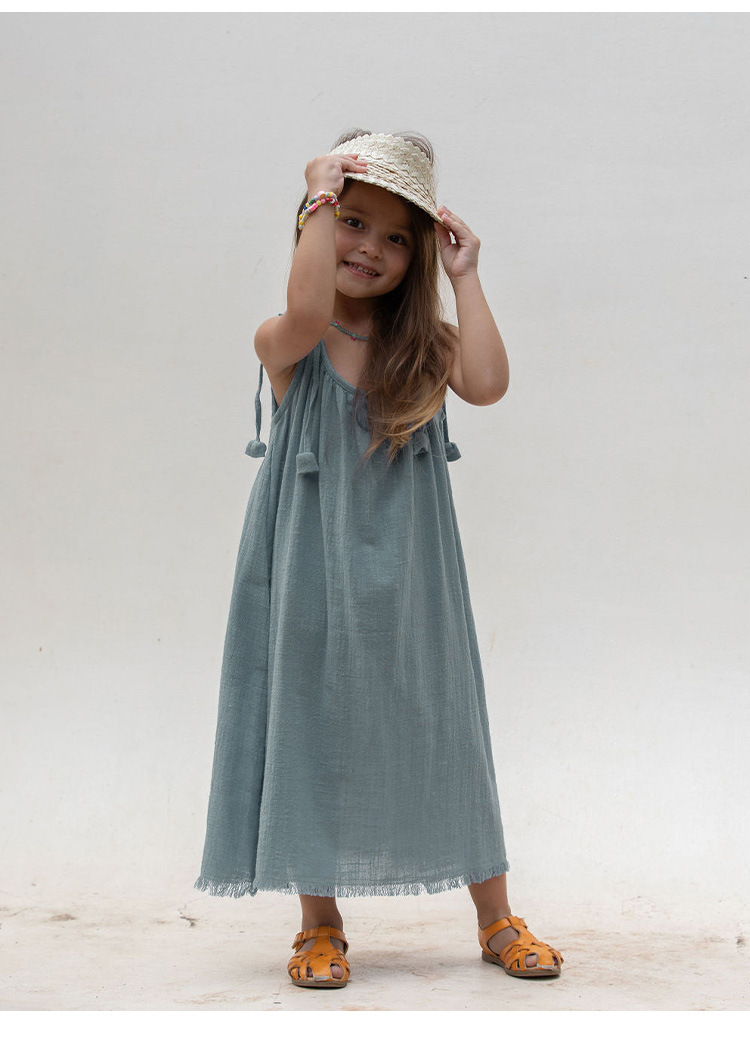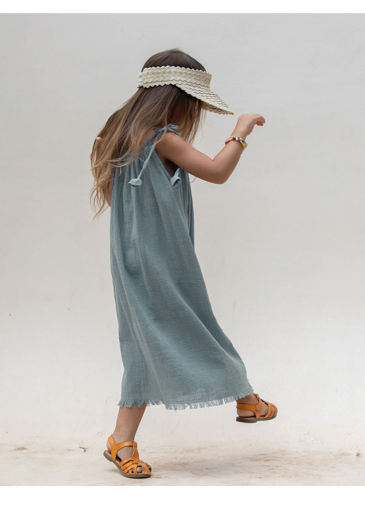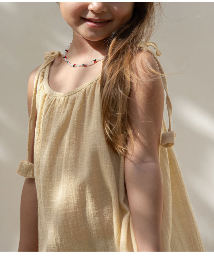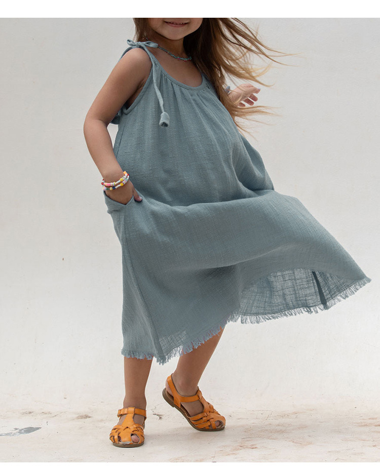 순수한면 민소매 해변 긴 원피스 캐주얼 홀리데이 스타일 슬립 스커트 아동복 주름진 승무원 귀여운 원피스 소녀 아기스토어 가기