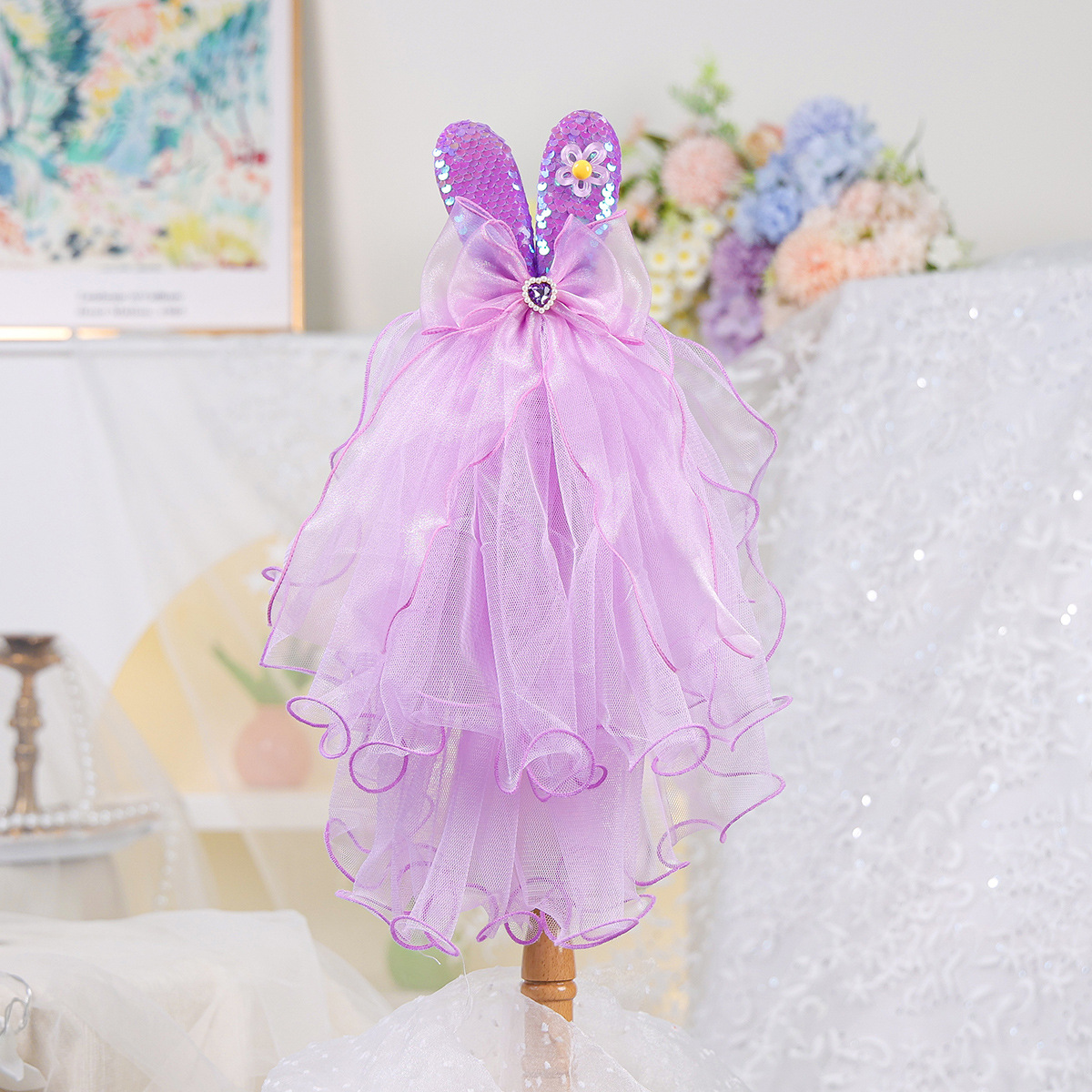 • 토끼 귀 베일 퍼플-원 사이즈