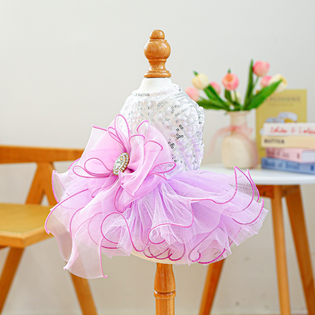 PETCIRCLE 애완동물 의류 소형 및 중형견용 애완용품 애완견 의류 스타드림 망사 드레스