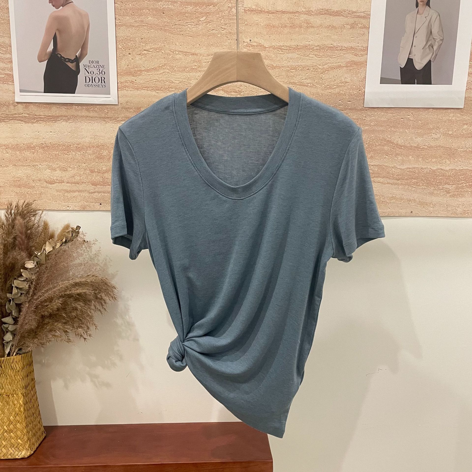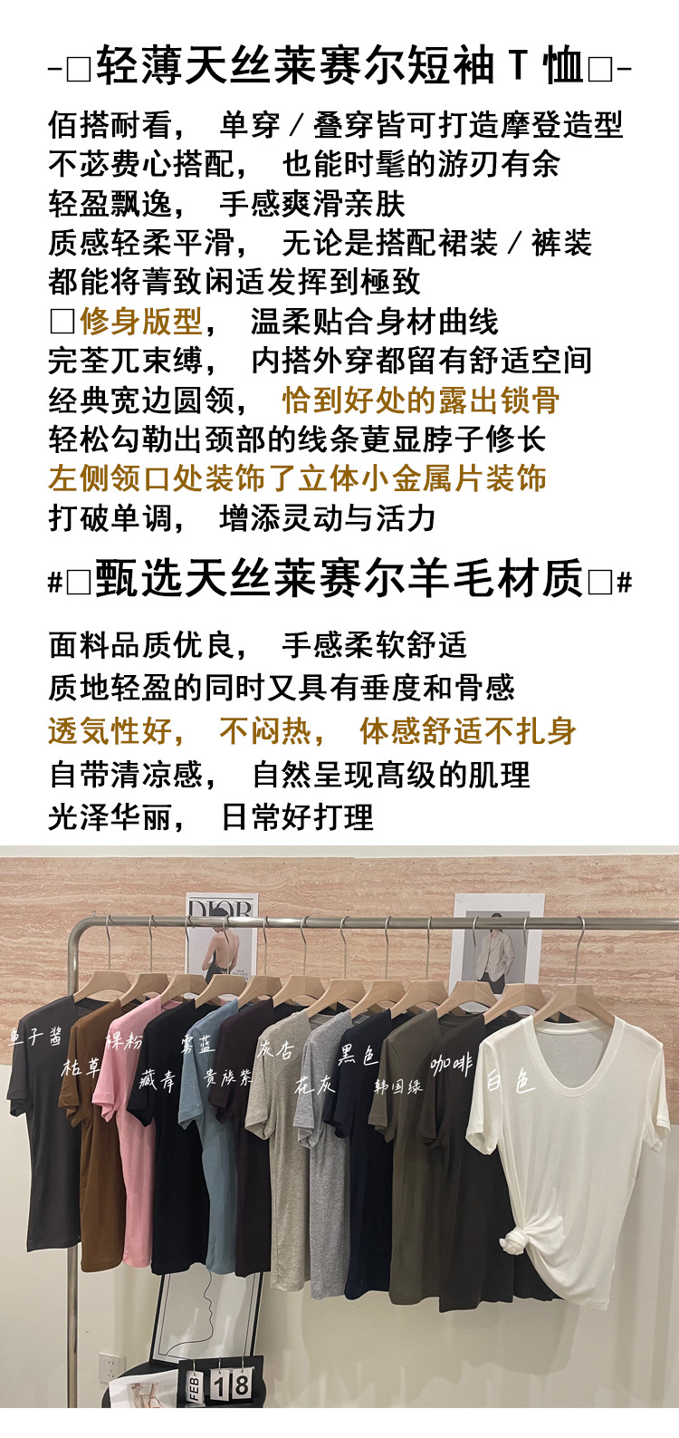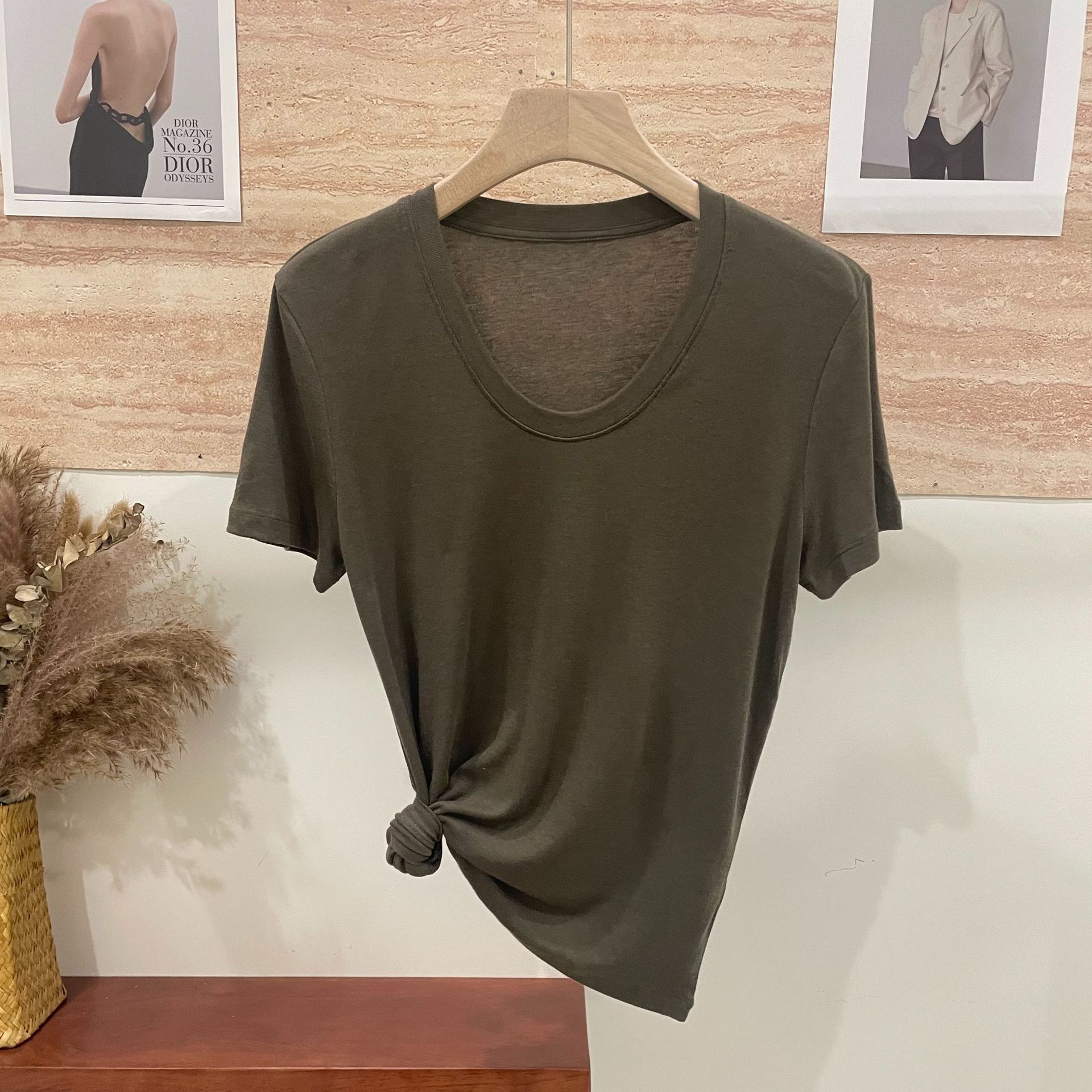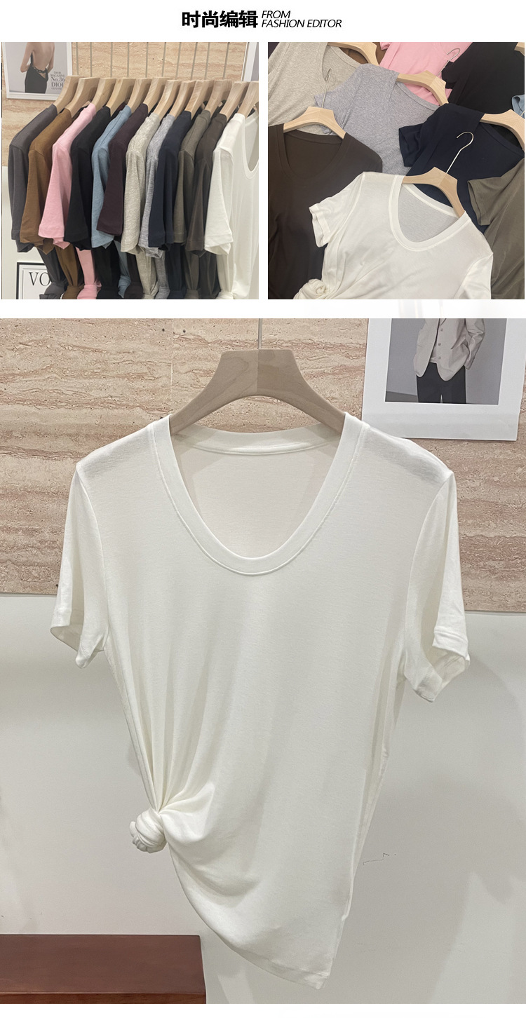 반팔 티셔츠 여성용 탑 텐셀 울 티셔츠 슬림 핏 슬리밍 하이 엔드 센스 패션 슬림 핏 캐주얼 올 매치 편안한스토어 가기