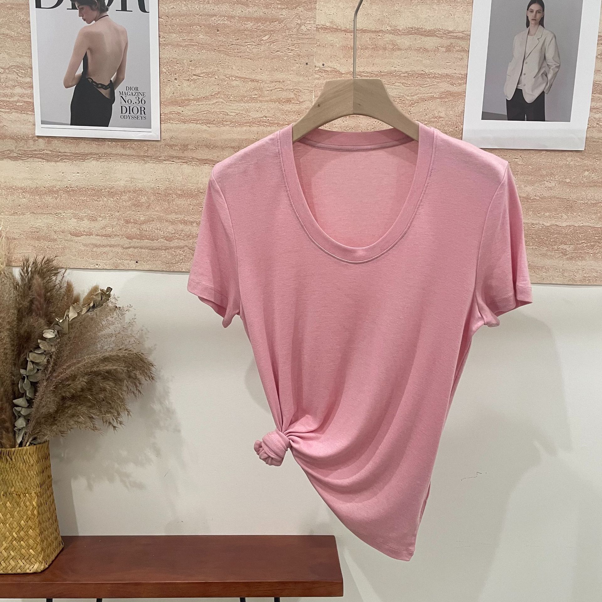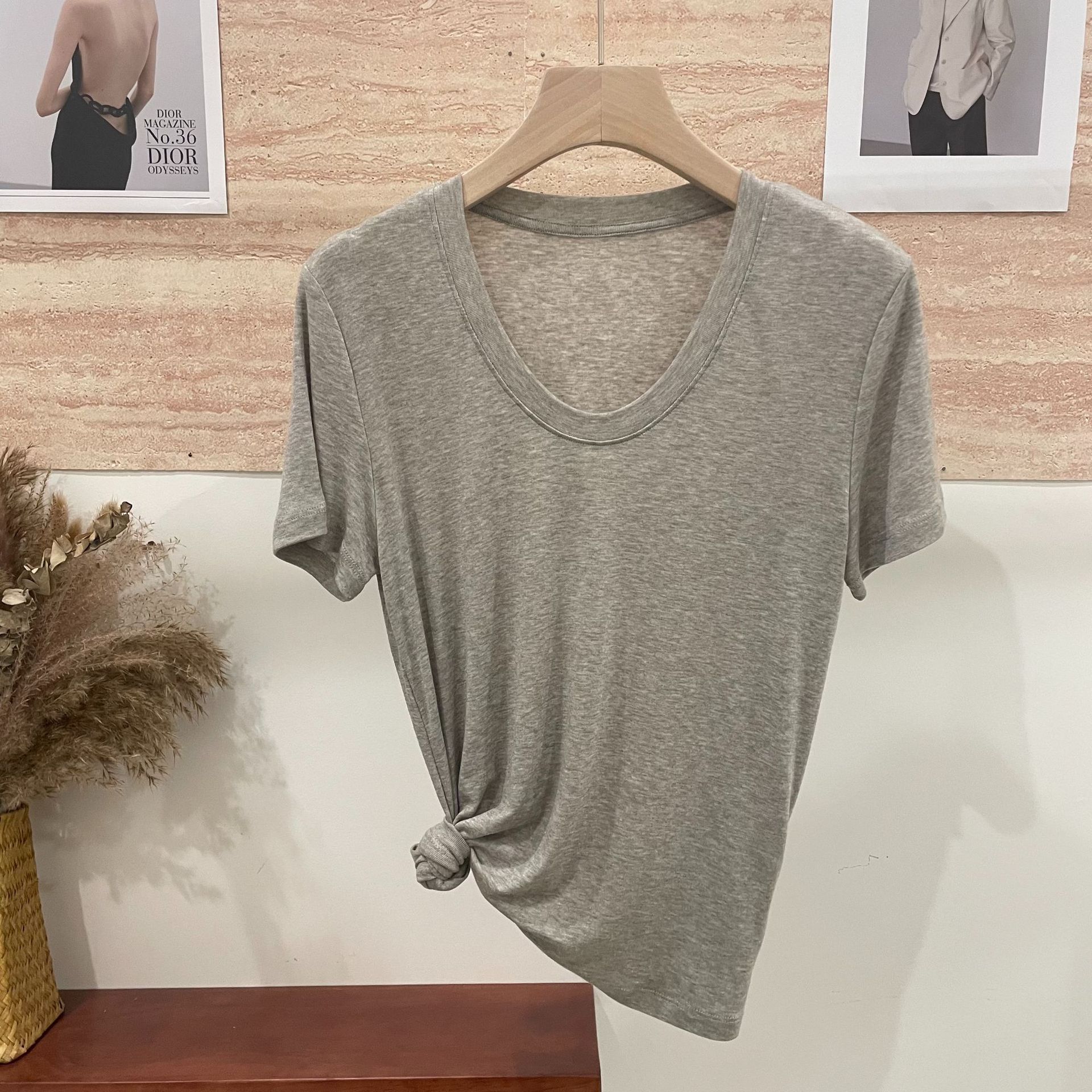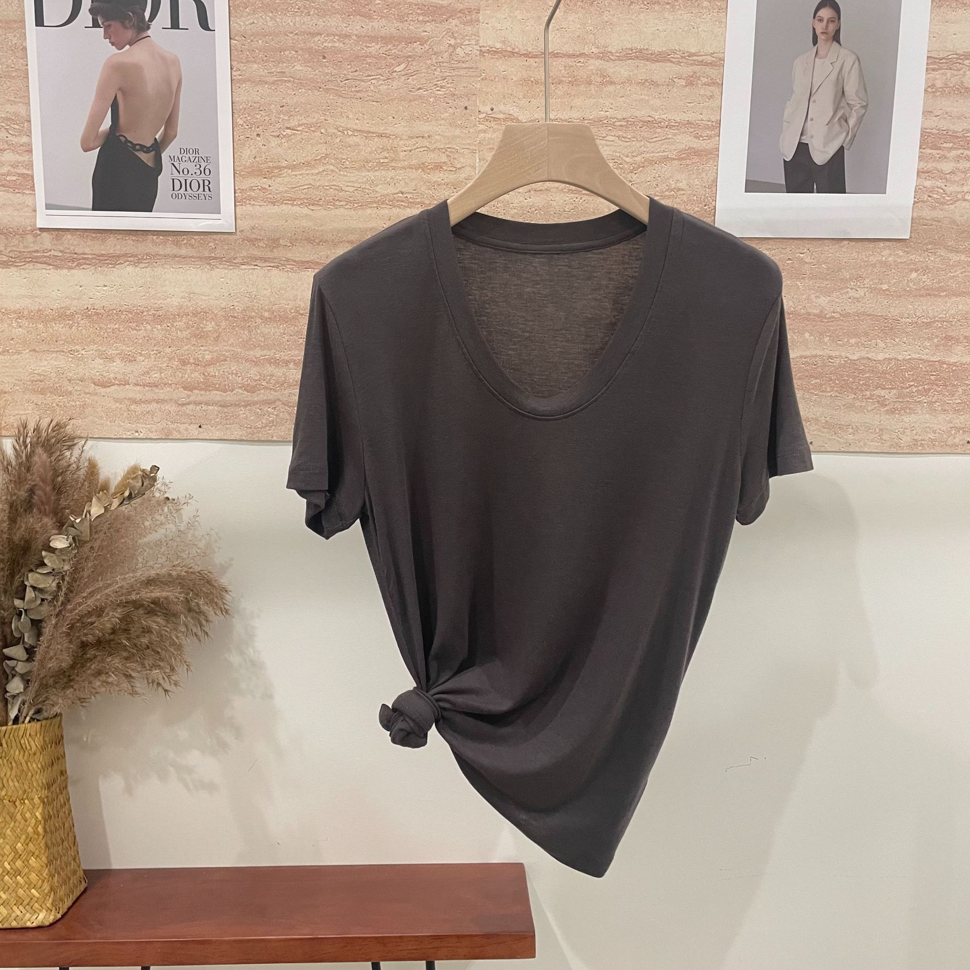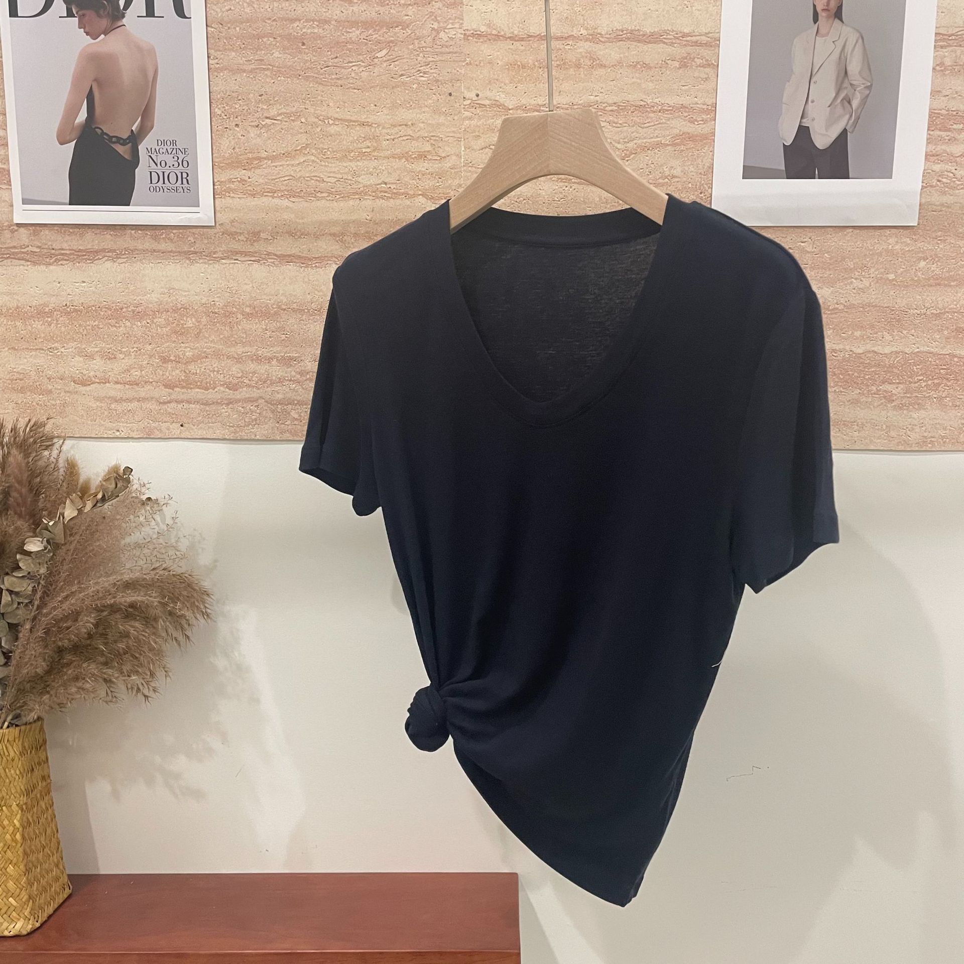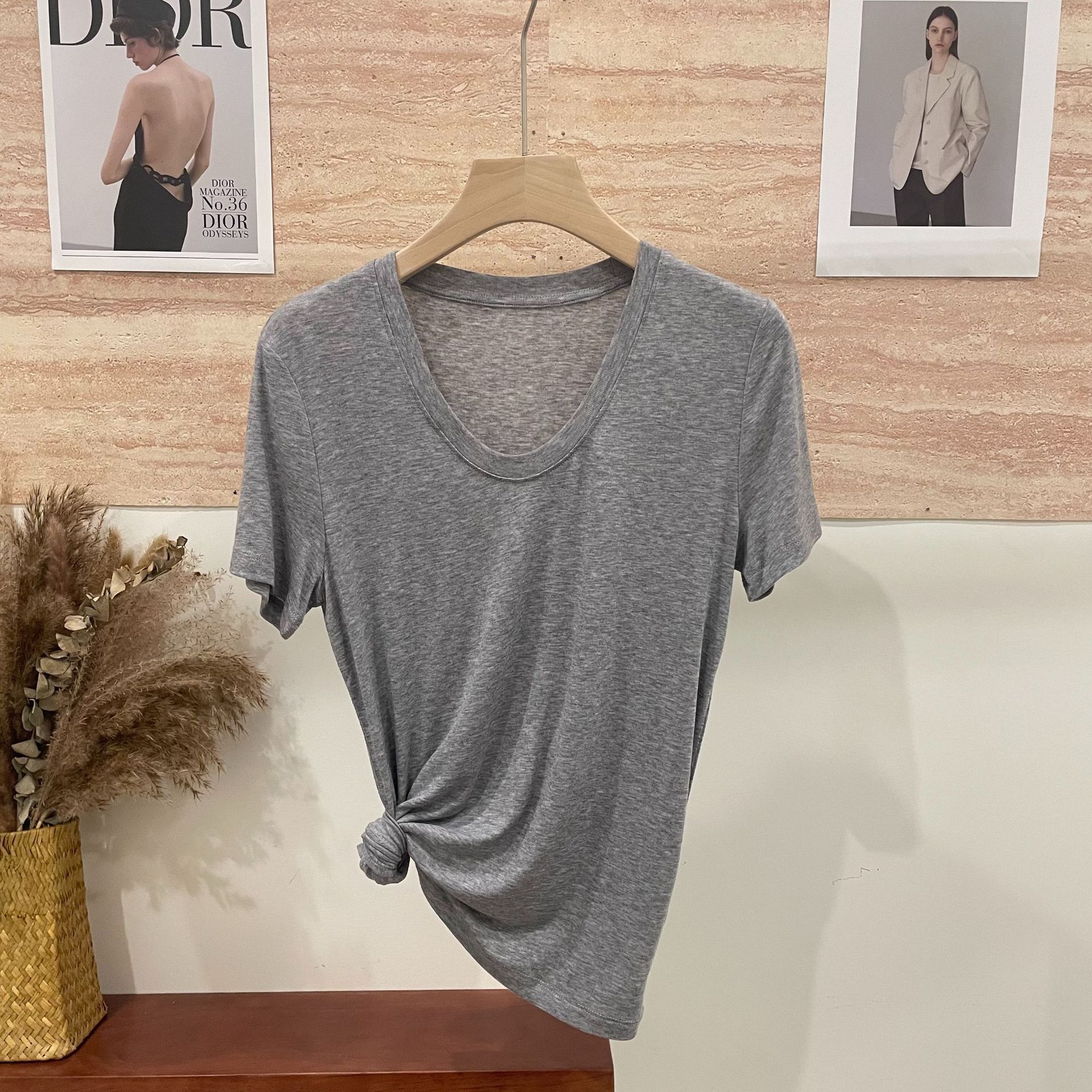 반팔 티셔츠 여성용 탑 텐셀 울 티셔츠 슬림 핏 슬리밍 하이 엔드 센스 패션 슬림 핏 캐주얼 올 매치 편안한스토어 가기