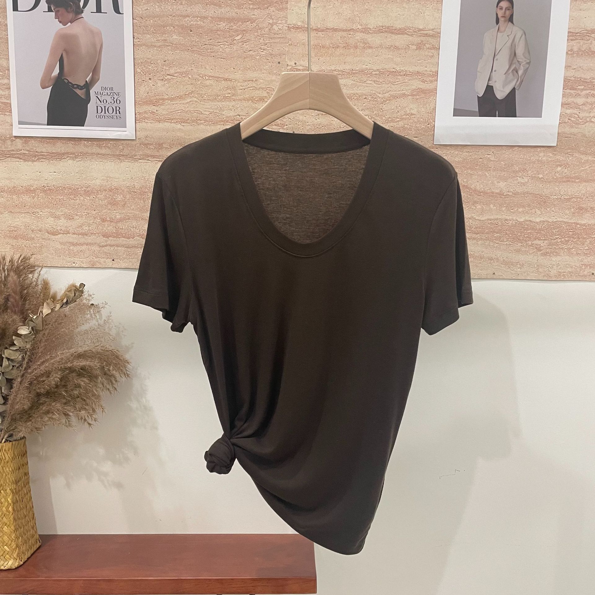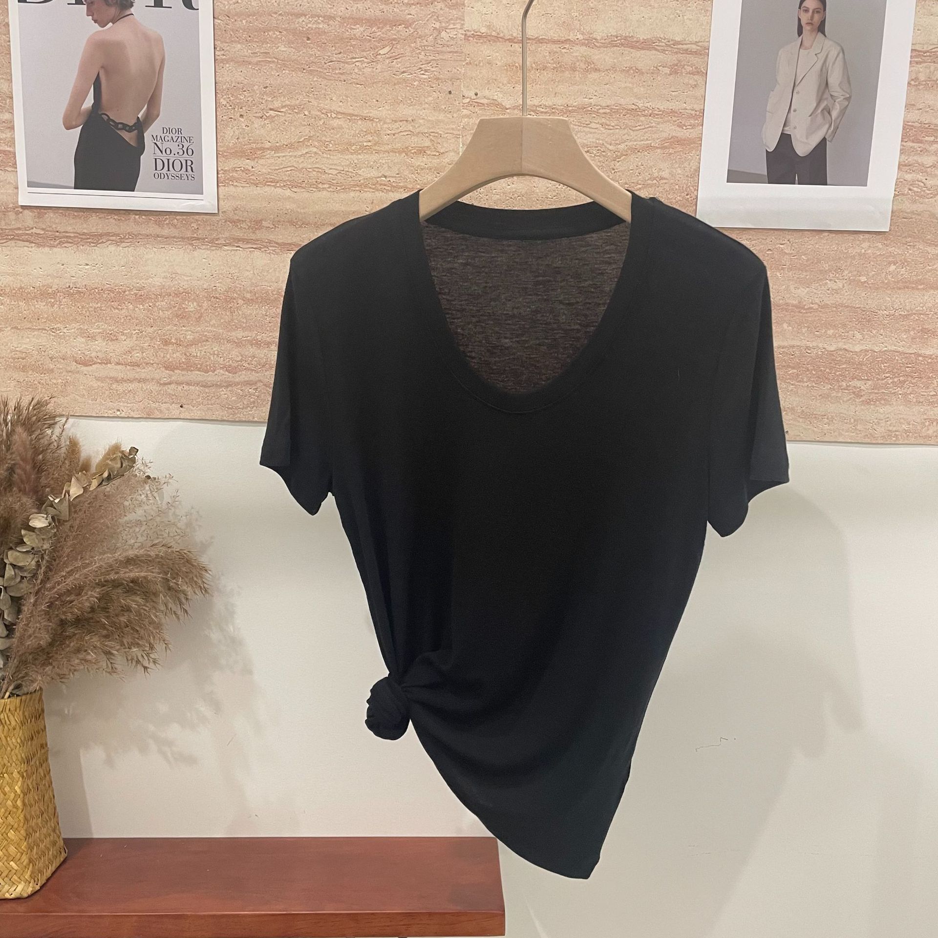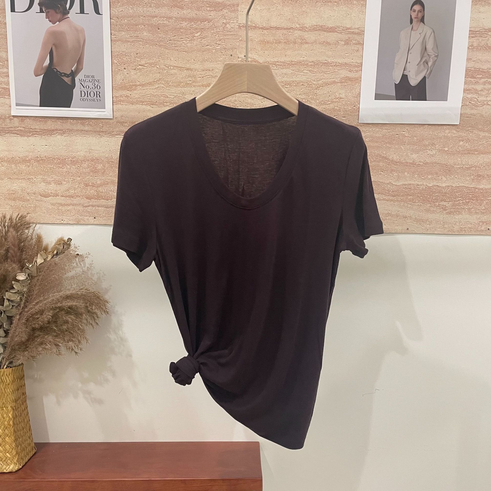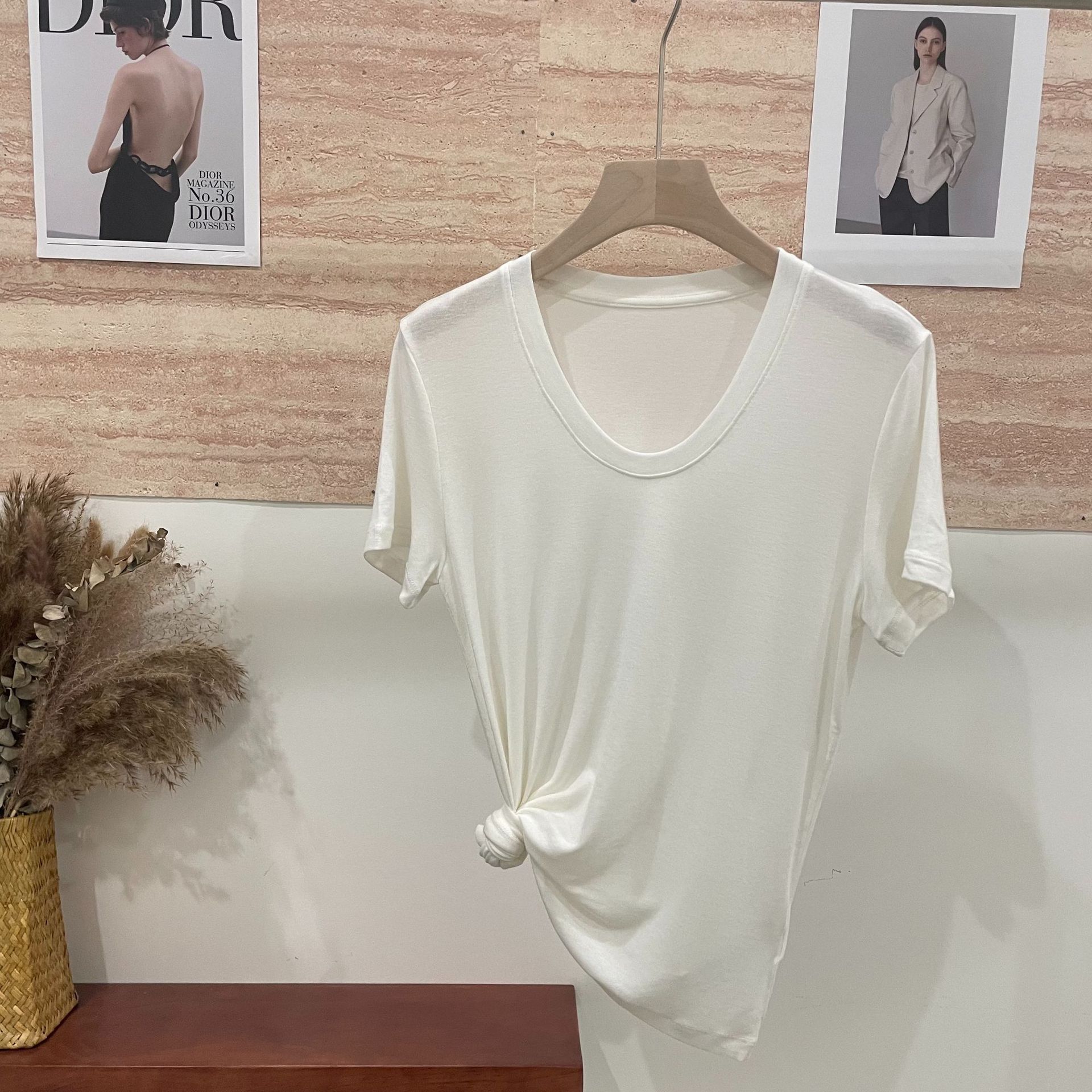 반팔 티셔츠 여성용 탑 텐셀 울 티셔츠 슬림 핏 슬리밍 하이 엔드 센스 패션 슬림 핏 캐주얼 올 매치 편안한스토어 가기