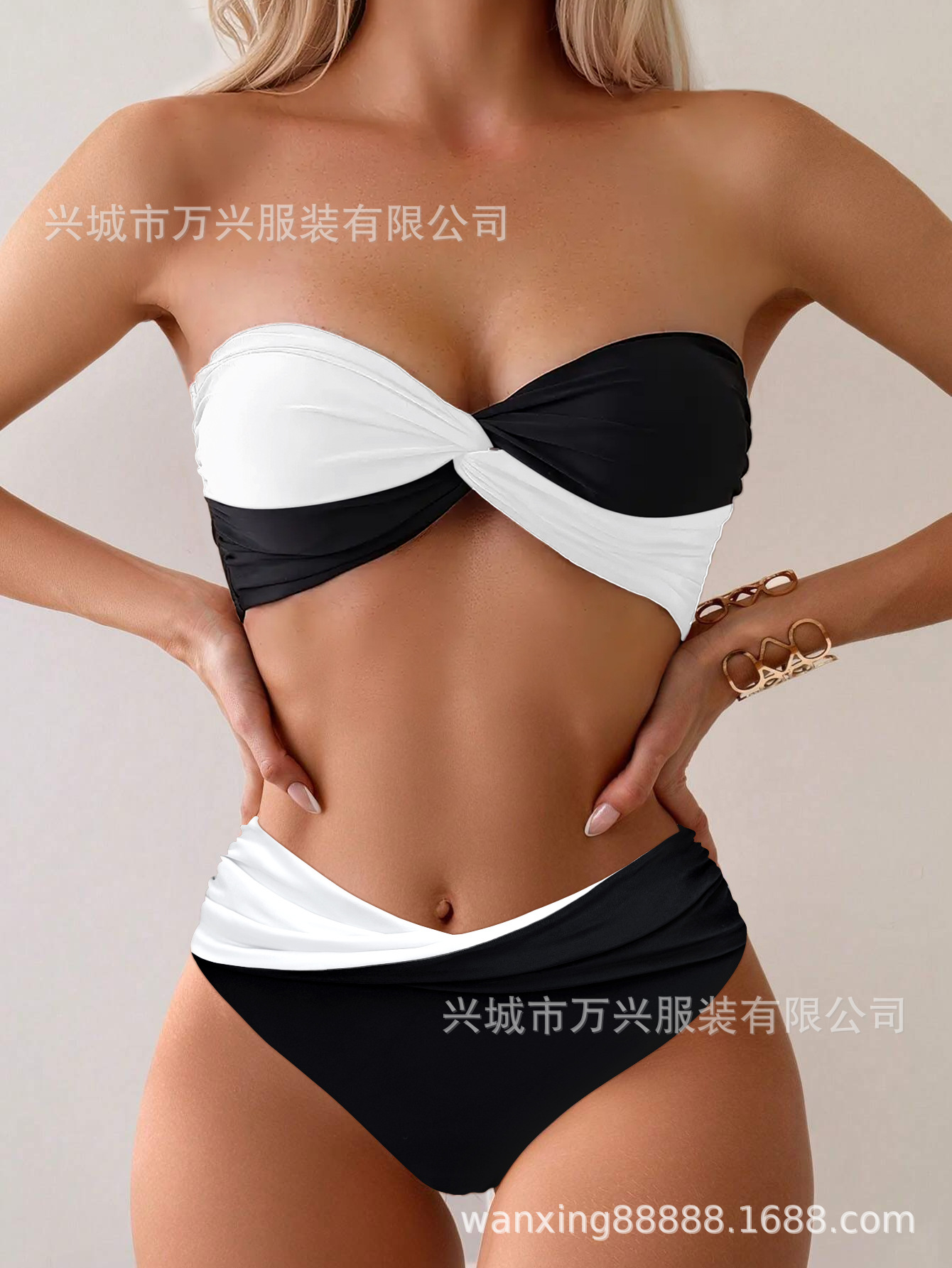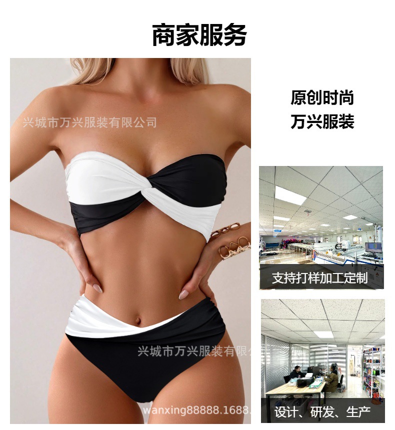Huludao 2025 유럽과 미국의 새로운 국경 대외 무역 수영복 분할 스티칭 컬러 비키니 해변 비키니