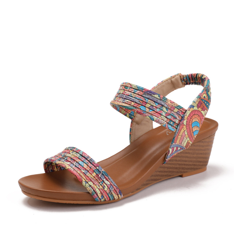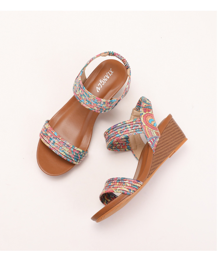 여성용 웨지 샌들 2026 여름 신상품 보헤미안 해변 휴가용 레트로 직조 편안한 로마 샌들스토어 가기
