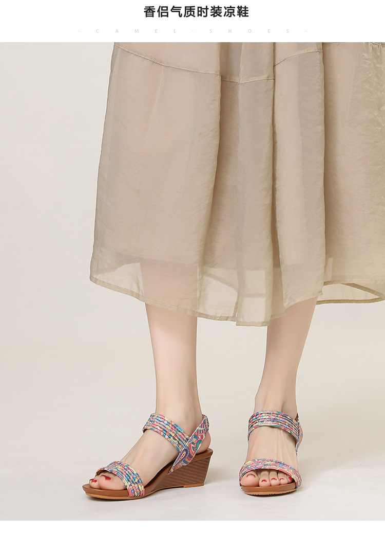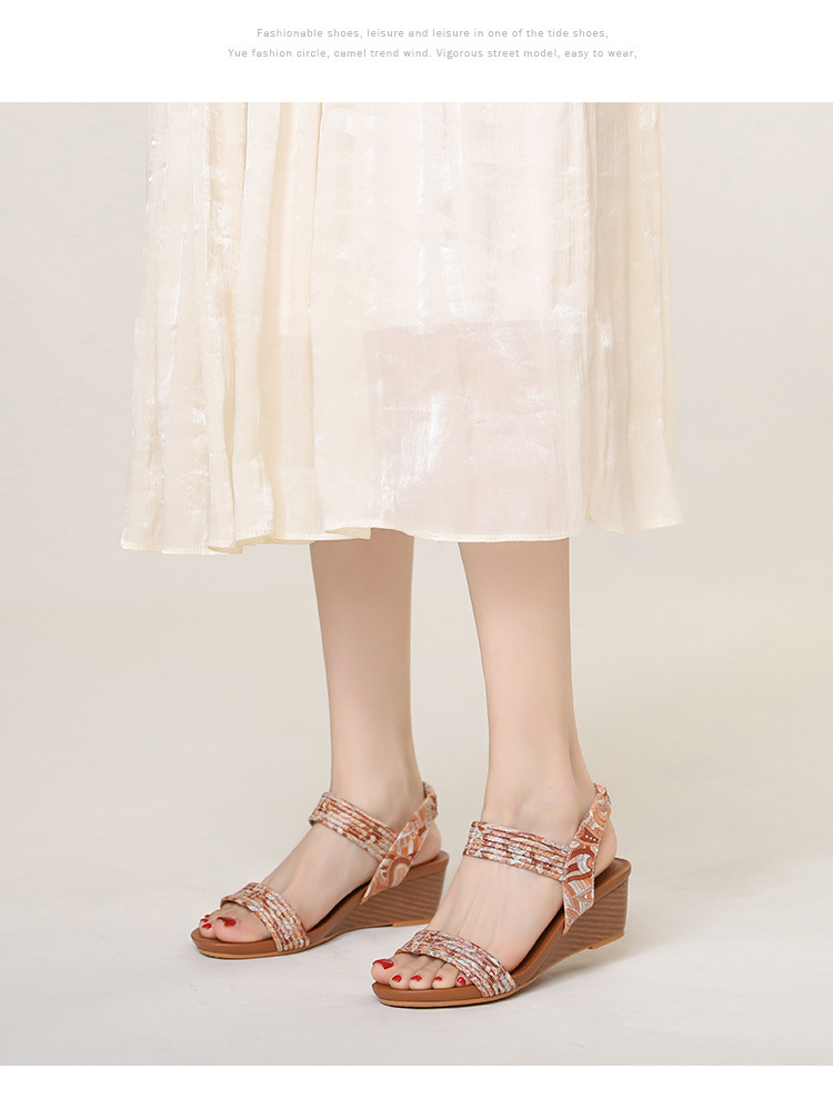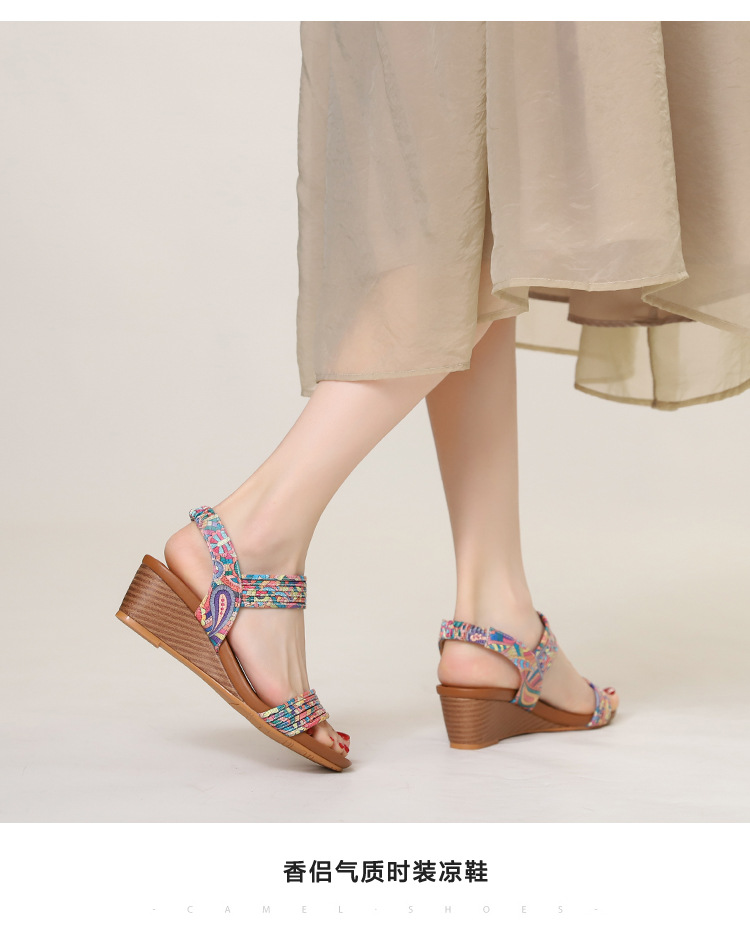 여성용 웨지 샌들 2026 여름 신상품 보헤미안 해변 휴가용 레트로 직조 편안한 로마 샌들