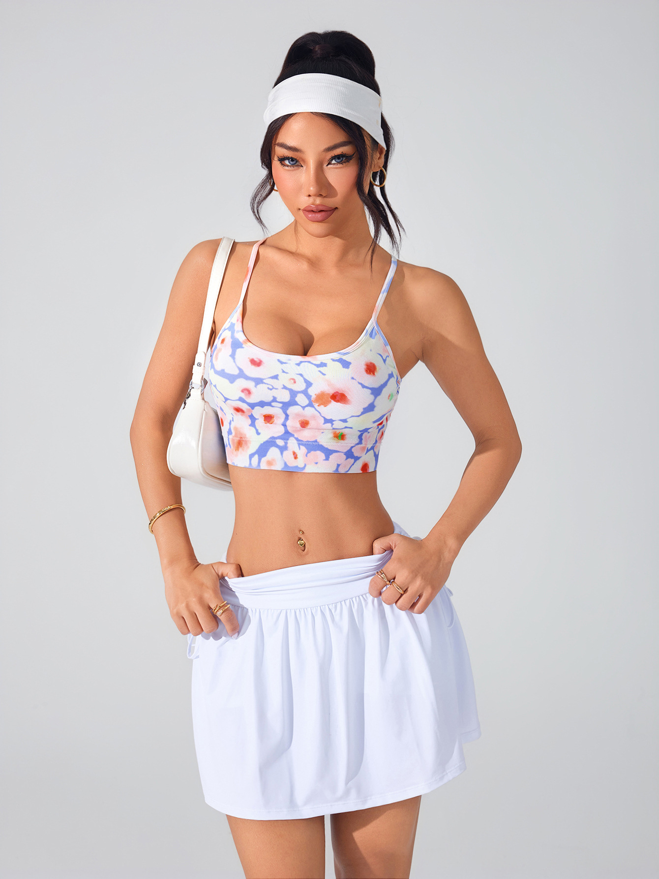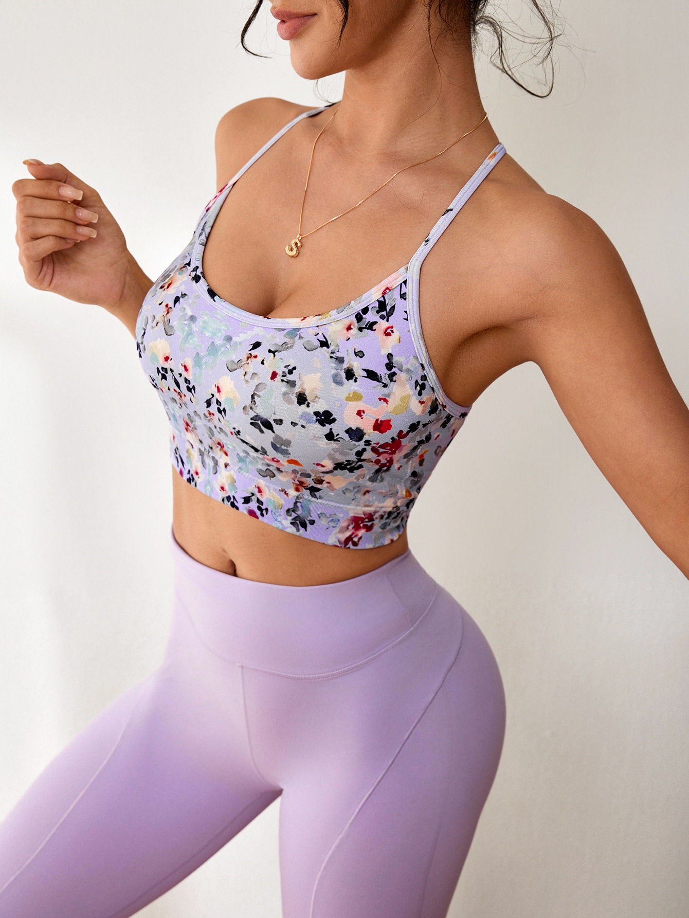 봄과 여름 새로운 십자가 얇은 어깨 끈 꽃 인쇄 매일 피트니스 브래지어 여성의 모임 속옷 요가 조끼