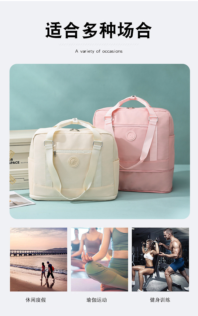 새로운 확장형 피트니스 가방, 건식 및 습식 분리, 경량 수하물 보관 가방, 대용량, 트롤리형, 패셔너블한 여행 가방