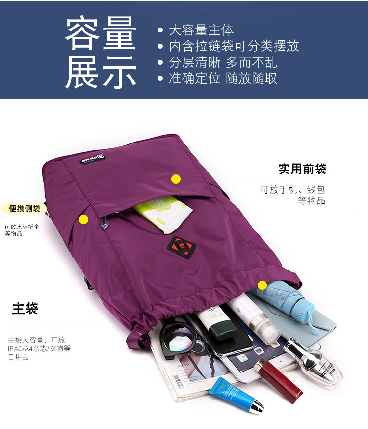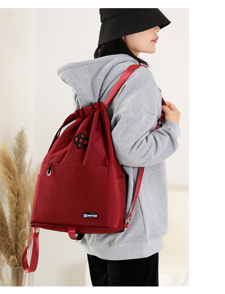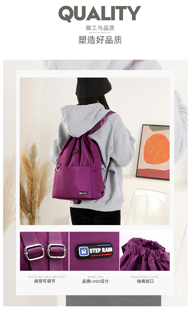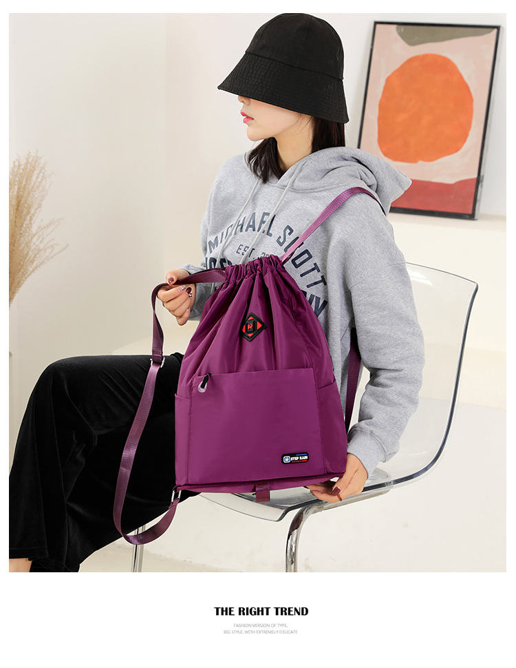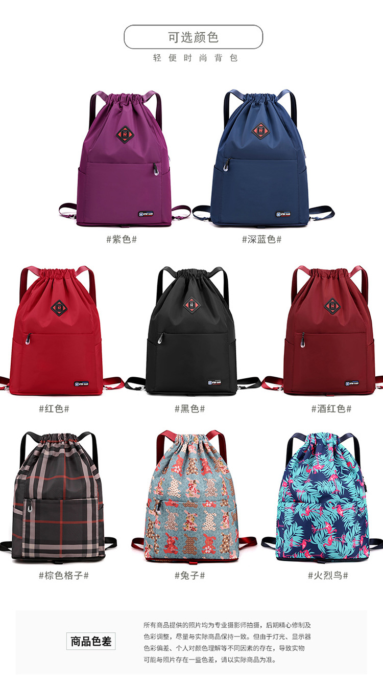 새로운 Drawstring Backpack 남성과 여성의 Drawstring Pocket Drawstring Bag 간단한 나일론 옥스포드 천 스포츠 여행 배낭