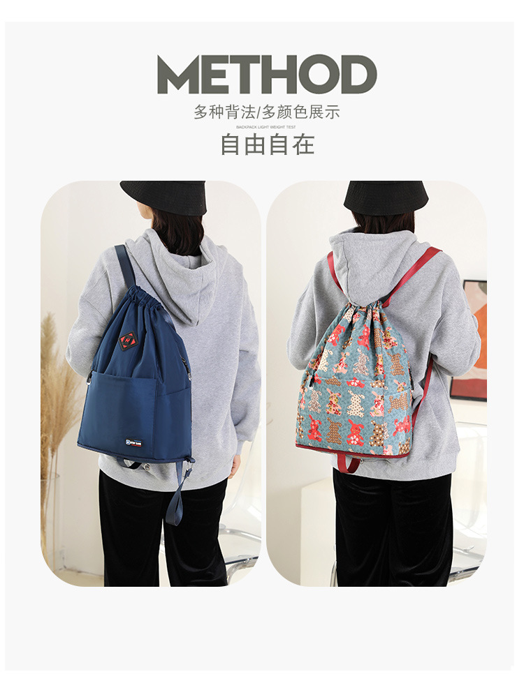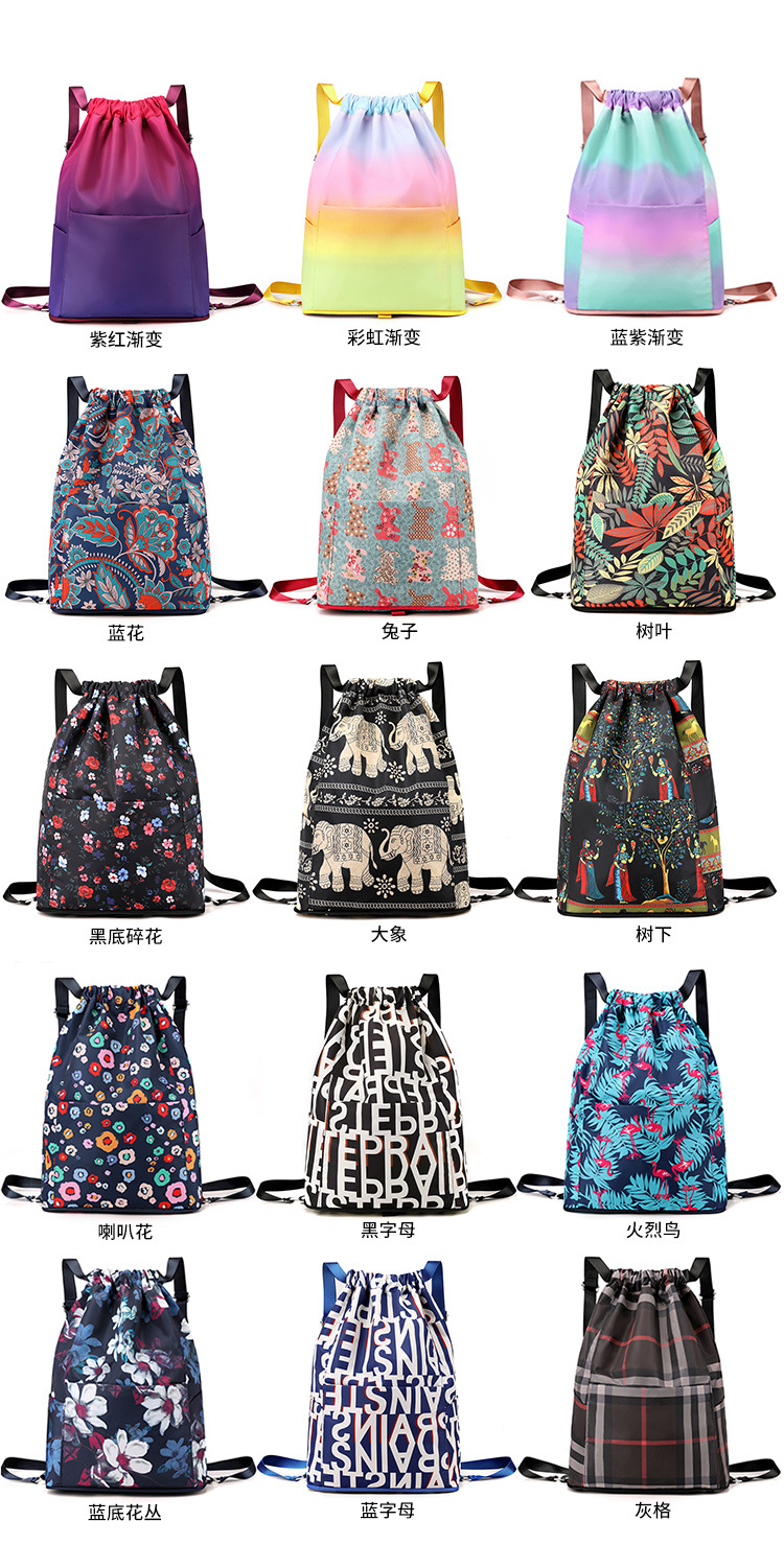 새로운 Drawstring Backpack 남성과 여성의 Drawstring Pocket Drawstring Bag 간단한 나일론 옥스포드 천 스포츠 여행 배낭스토어 가기