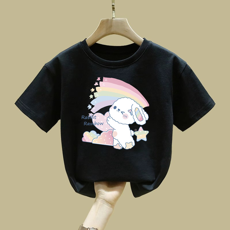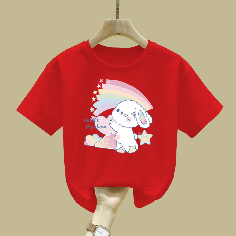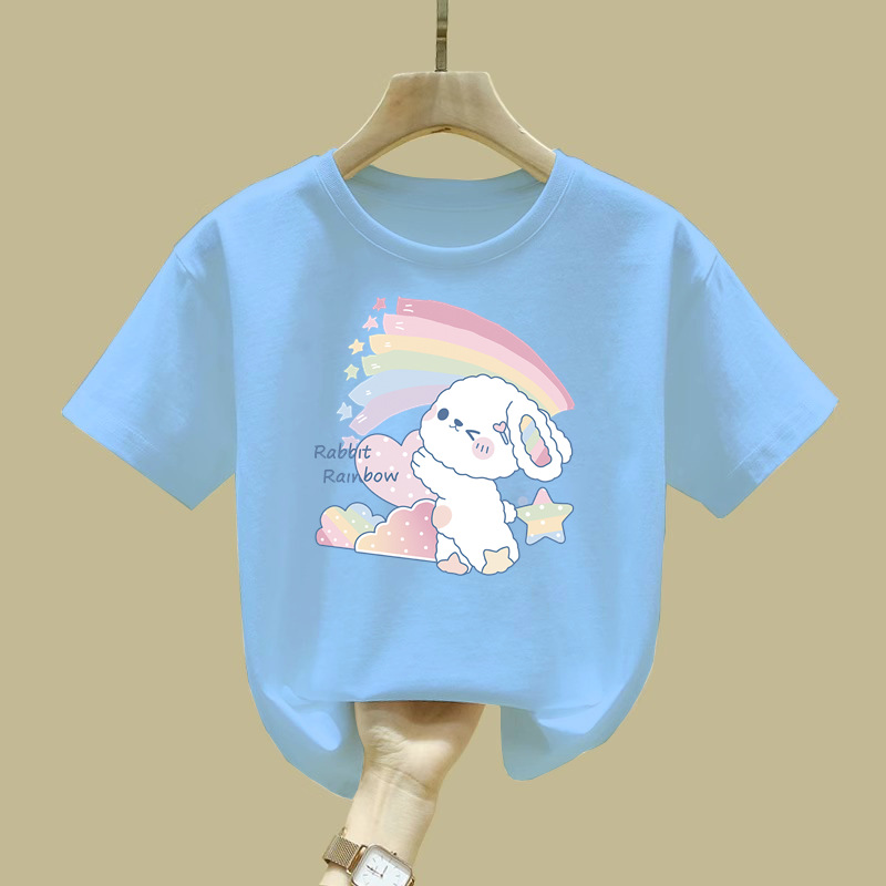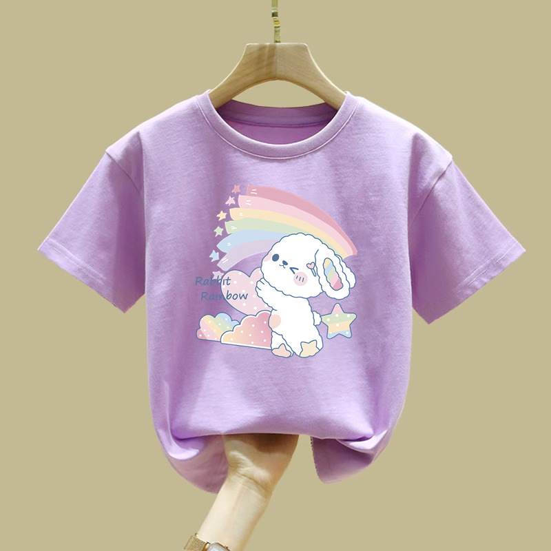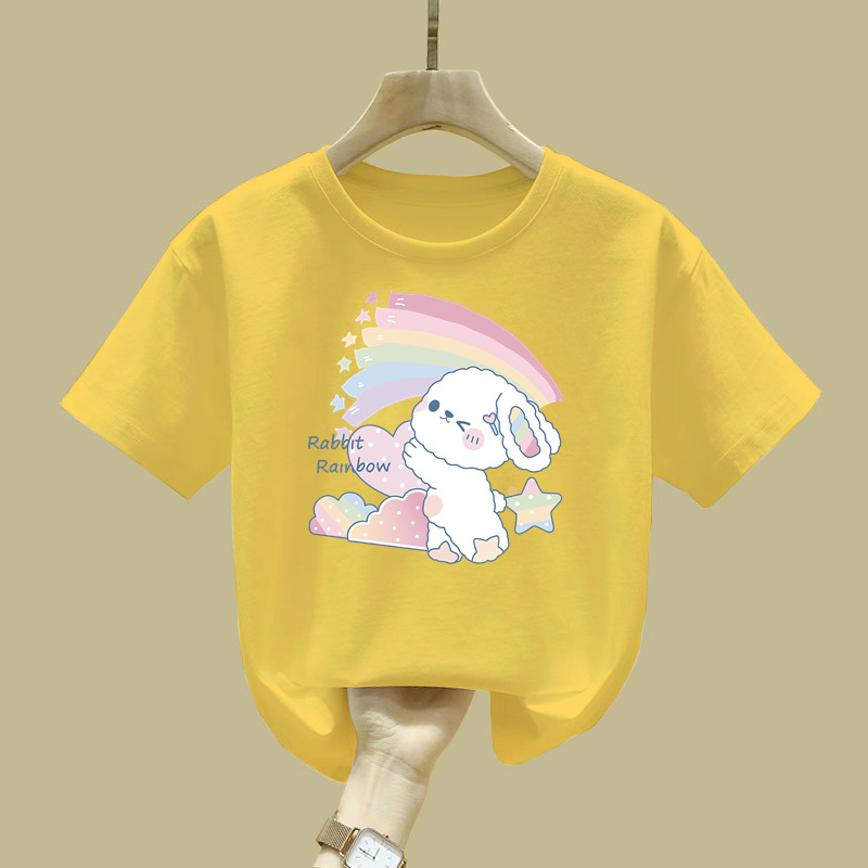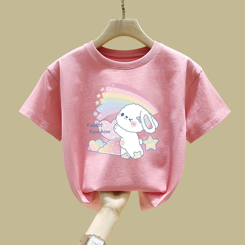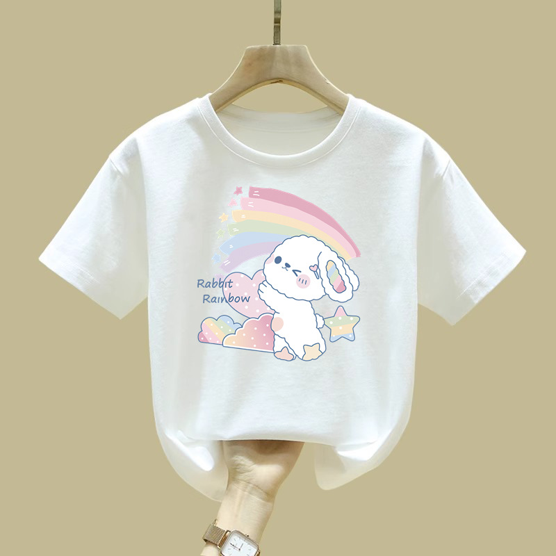 2062 # 면 여성 아동복 화이트 티셔츠 새 짧은 소매 한국 스타일 외국 스타일 큰 어린이 느슨한 올매치 탑 여름