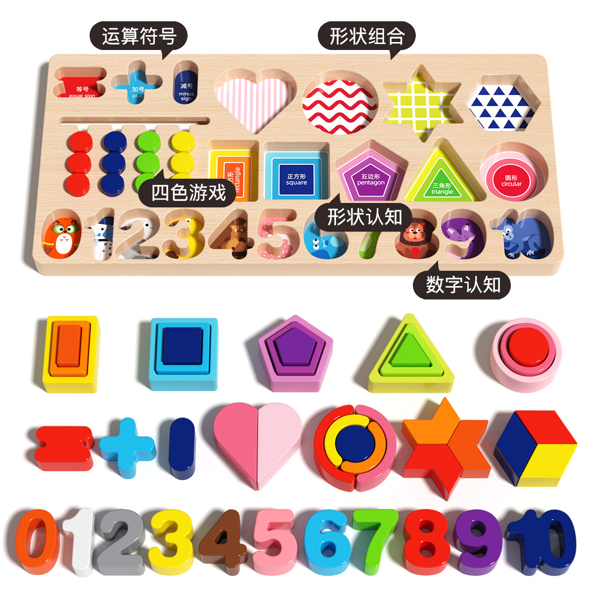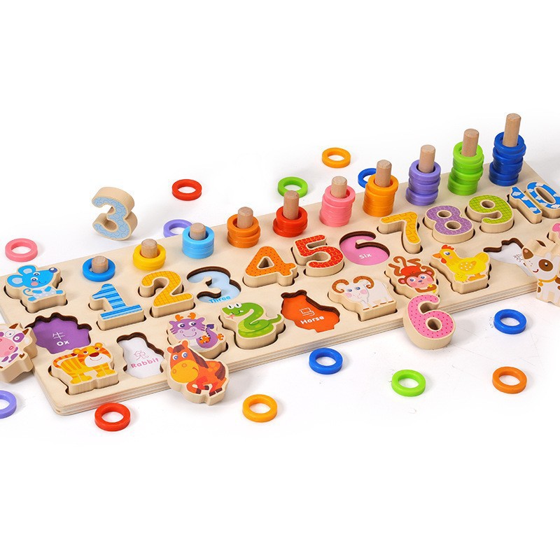어린이 조기 교육 인지 매칭 퍼즐 다기능 디지털 퍼즐 3 ~ 6 세 교육 건물 블록 로그 보드 장난감스토어 가기