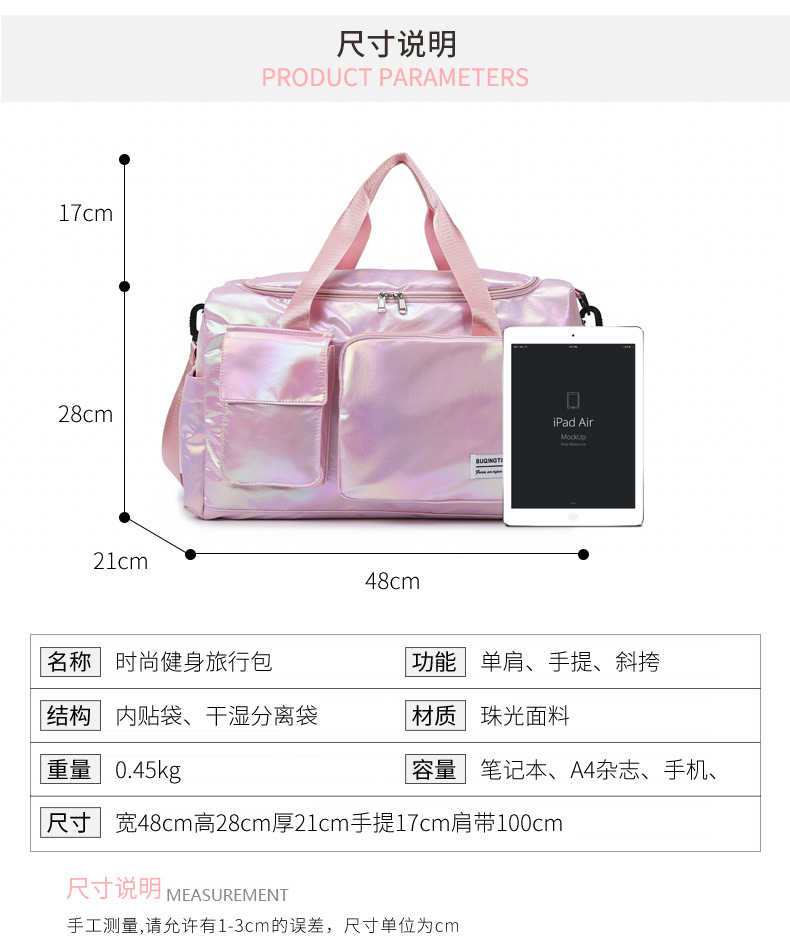 다채로운 여행 가방 여성의 대용량 휴대용 크로스 바디 가방 스포츠 피트니스 요가 가방 단거리 비즈니스 스토리지 더플 백