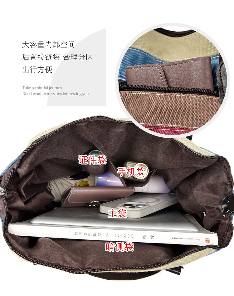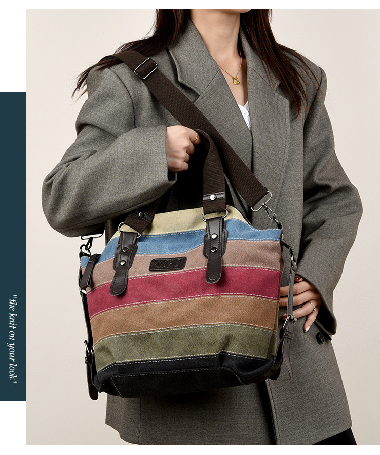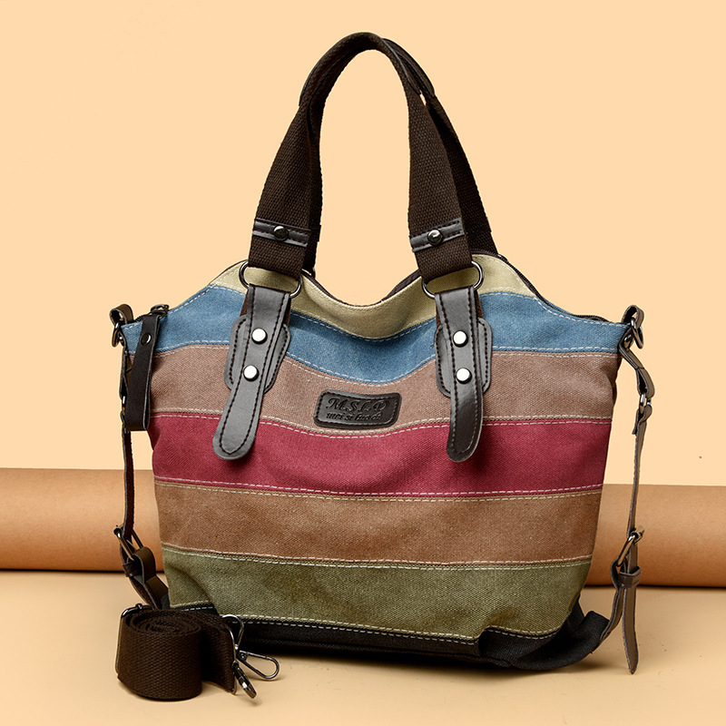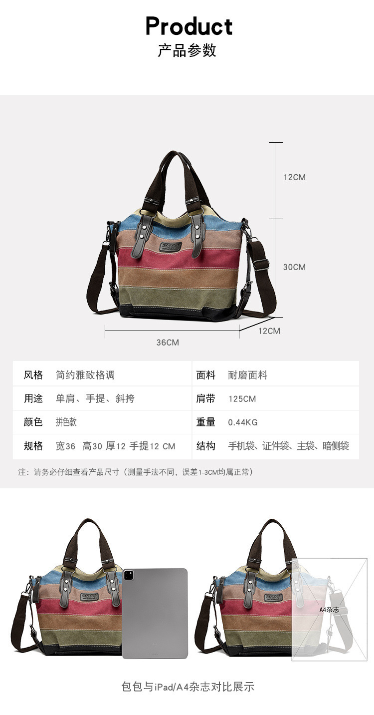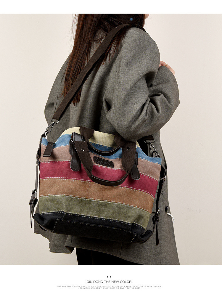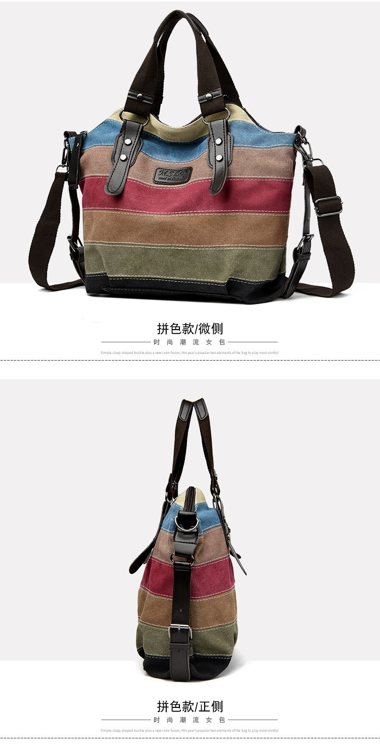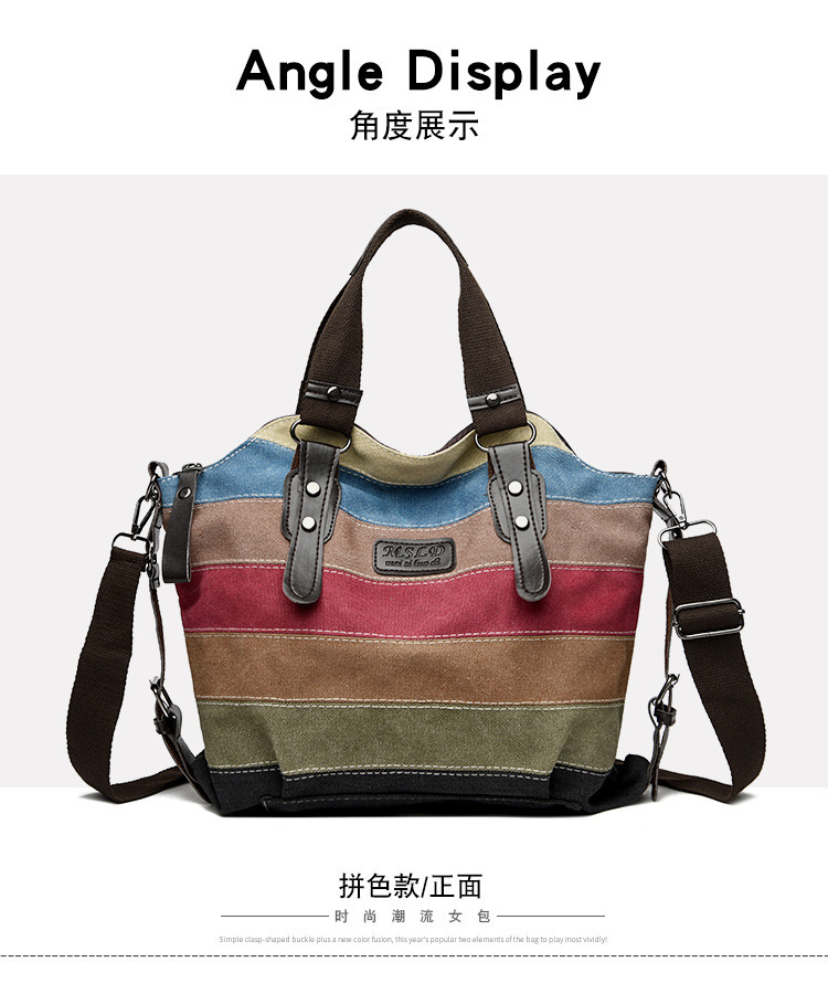 국경 간 새로운 도착 캔버스 캐주얼 빈티지 패션 아트 칼리지 싱글 숄더 크로스 바디 대형 여성용 가방 대결 컬러 스플 라이스 백스토어 가기