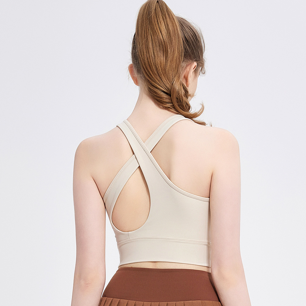 스포츠 속옷 여성용 고정 원피스 컵 고강도 충격 방지 브래지어 피트니스 러닝 뷰티 백 요가 옷 브래지어 탑