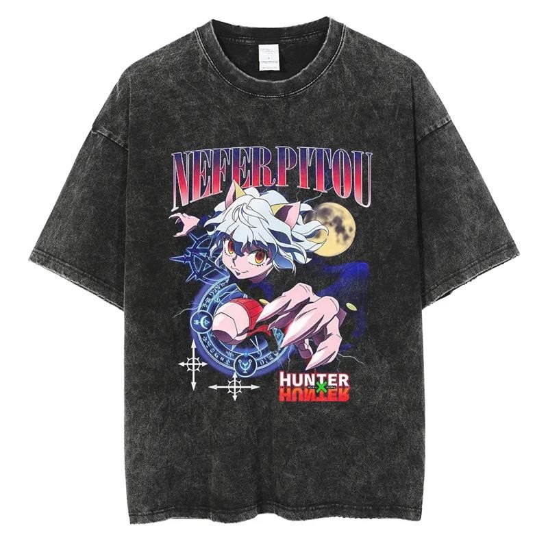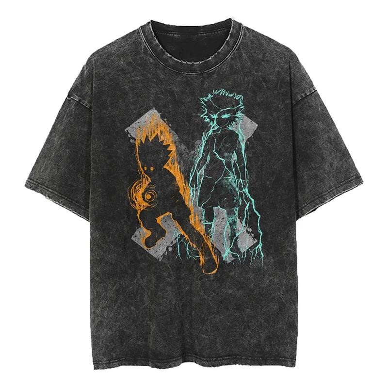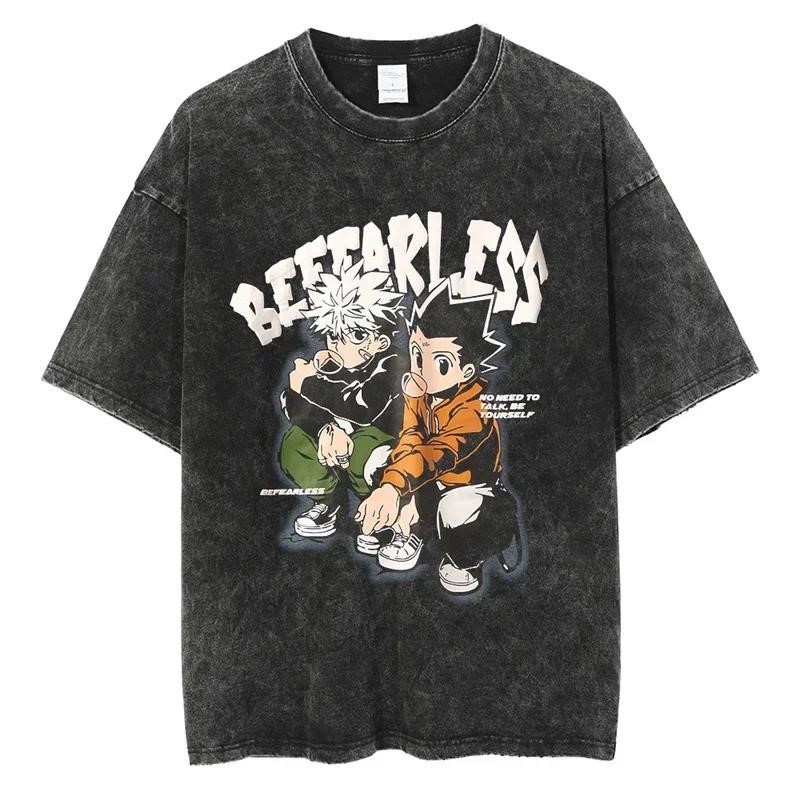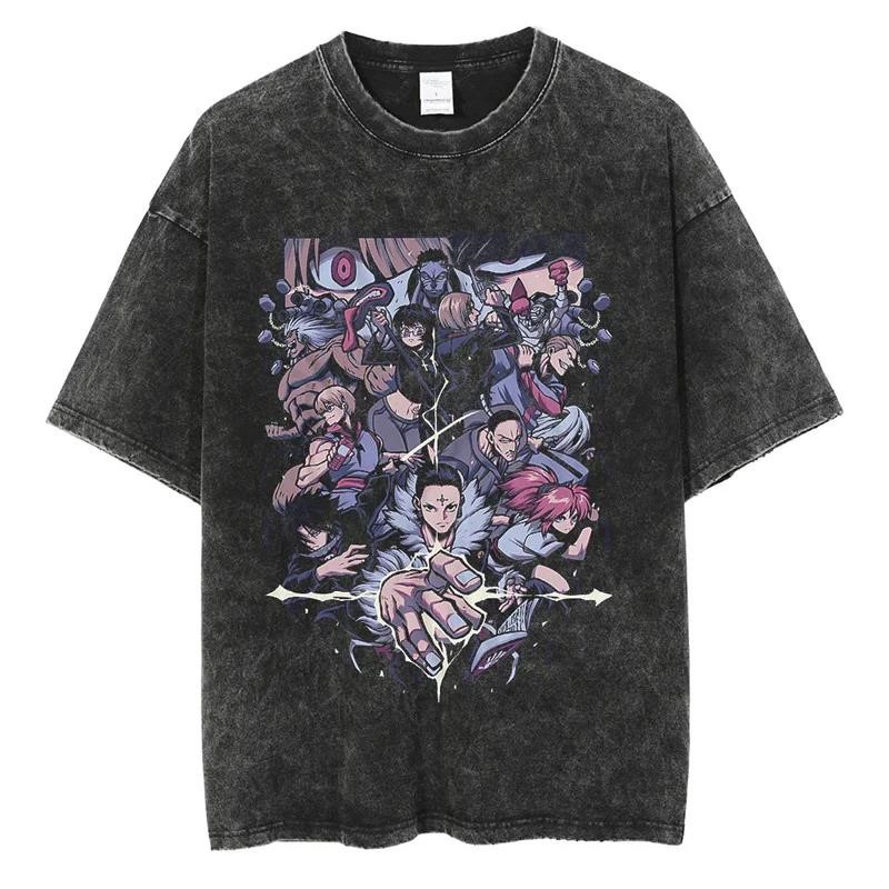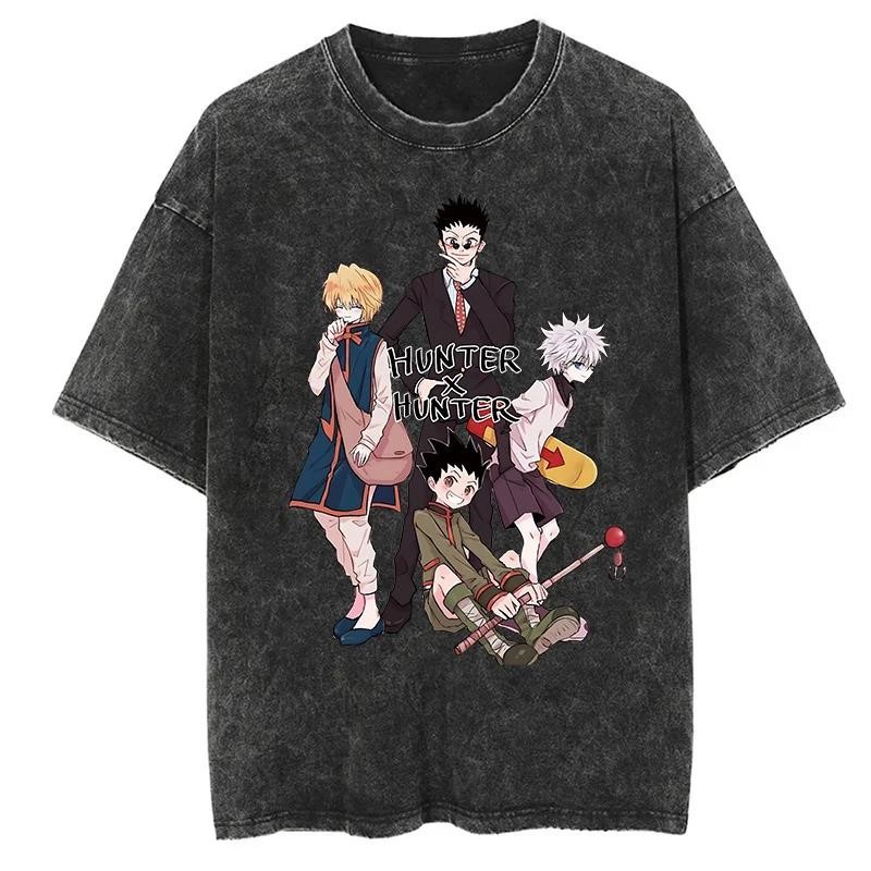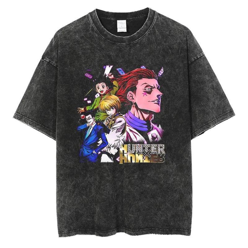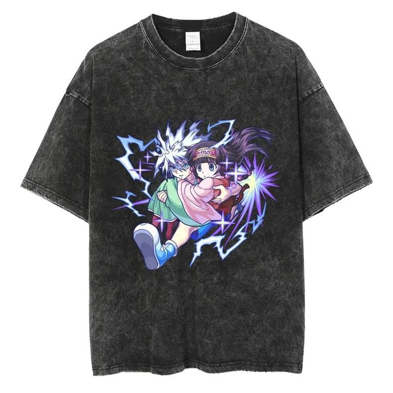 애니메이션 헌터 X 헌터 Killua GON Kurapika Leorio 인쇄 세척 티셔츠 남성용 빈티지 T