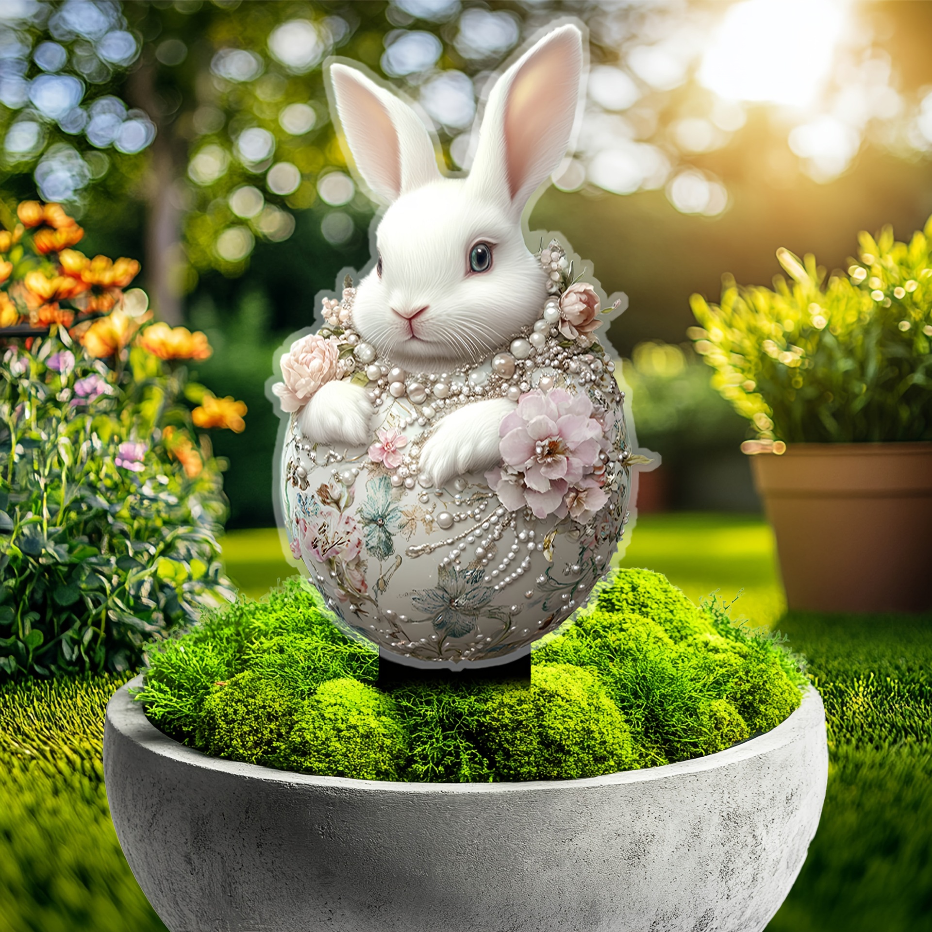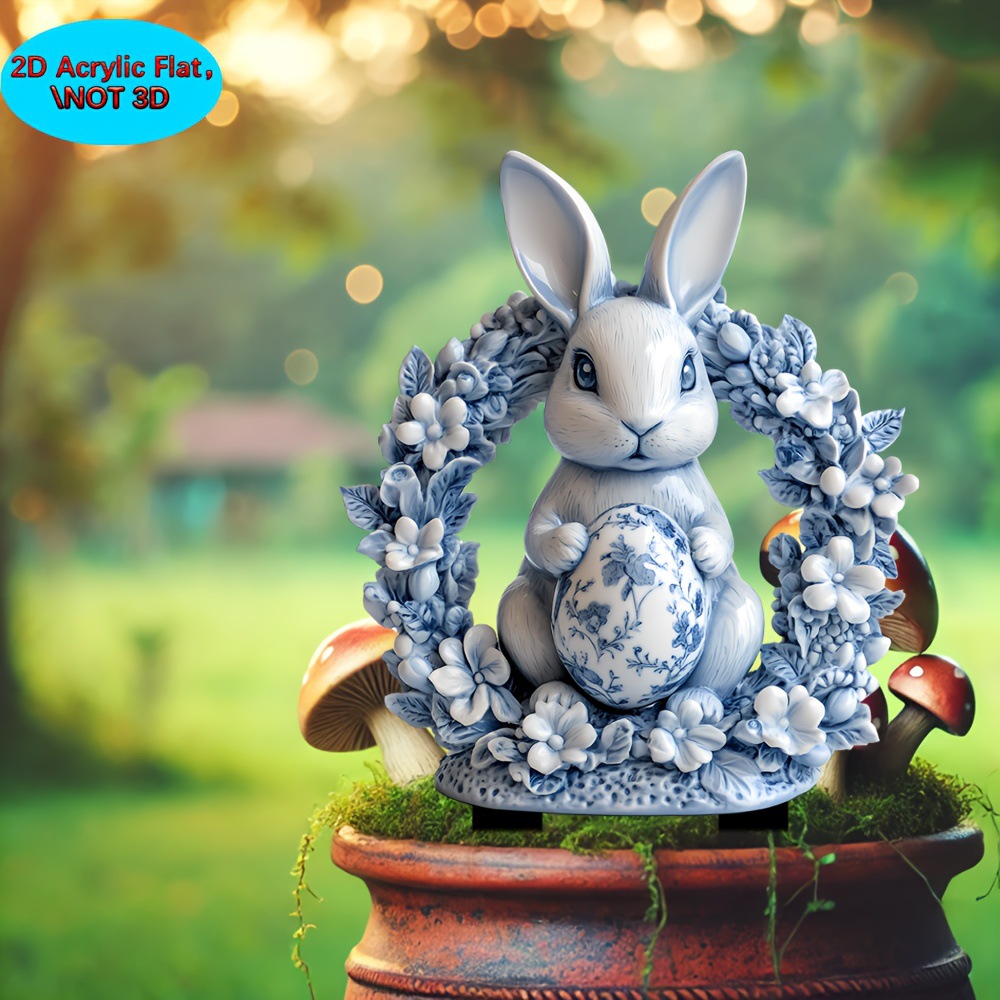 아마존 부활절 애완 동물 토끼 2D 아크릴 야외 정원 조각 바닥 장식 정원 소품