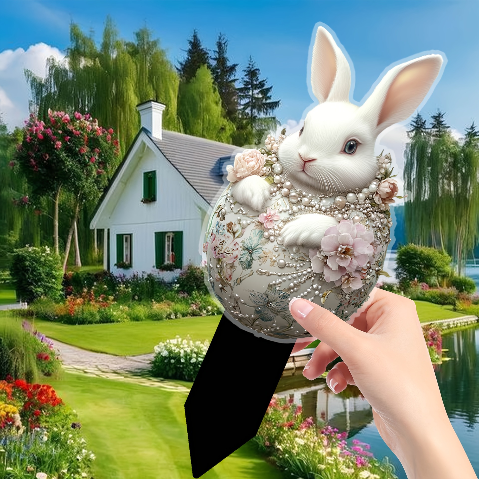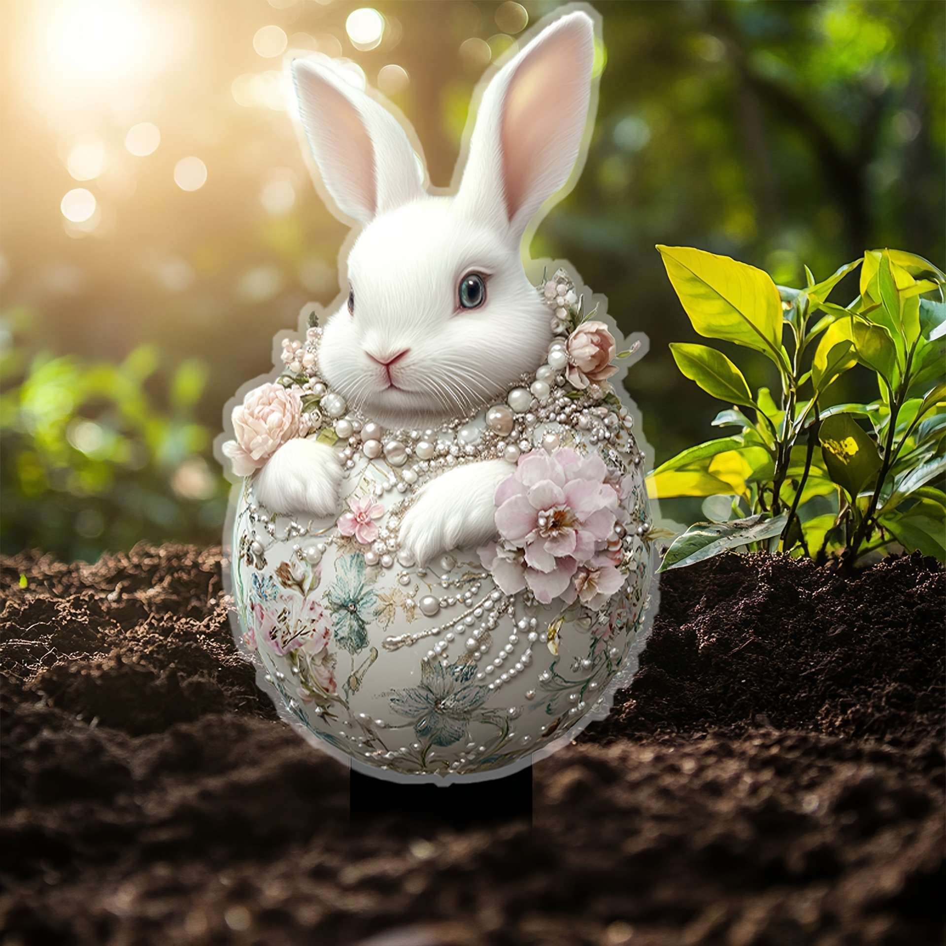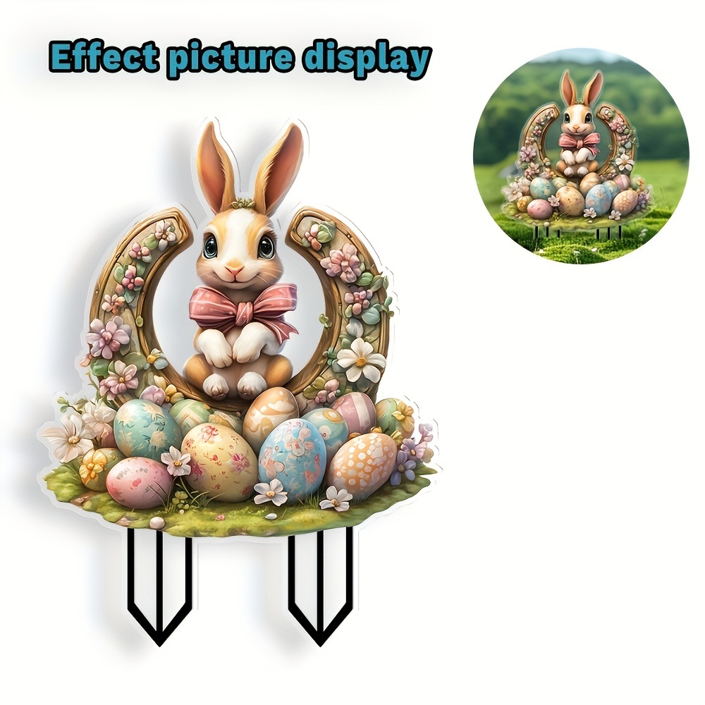 아마존 부활절 애완 동물 토끼 2D 아크릴 야외 정원 조각 바닥 장식 정원 소품스토어 가기