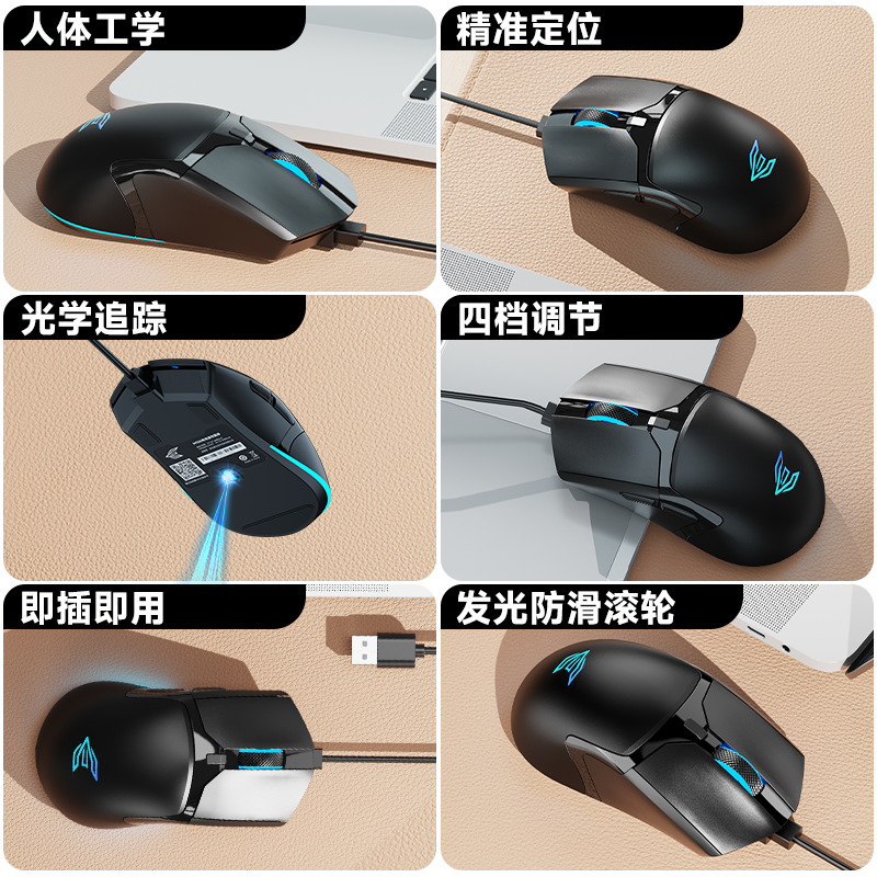 전원 E 가족 M100 유선 마우스 USB 게임 빛나는 컴퓨터 노트북 홈 오피스 공장 마우스