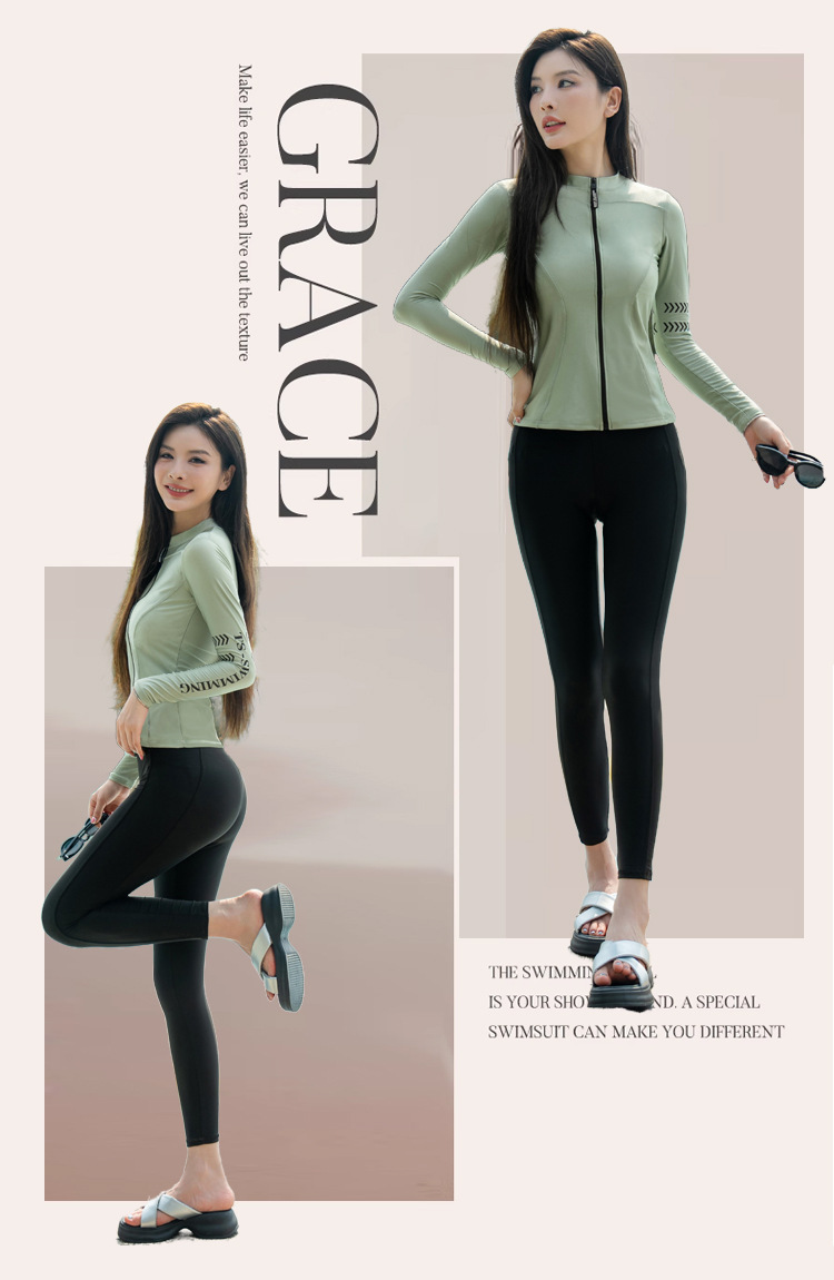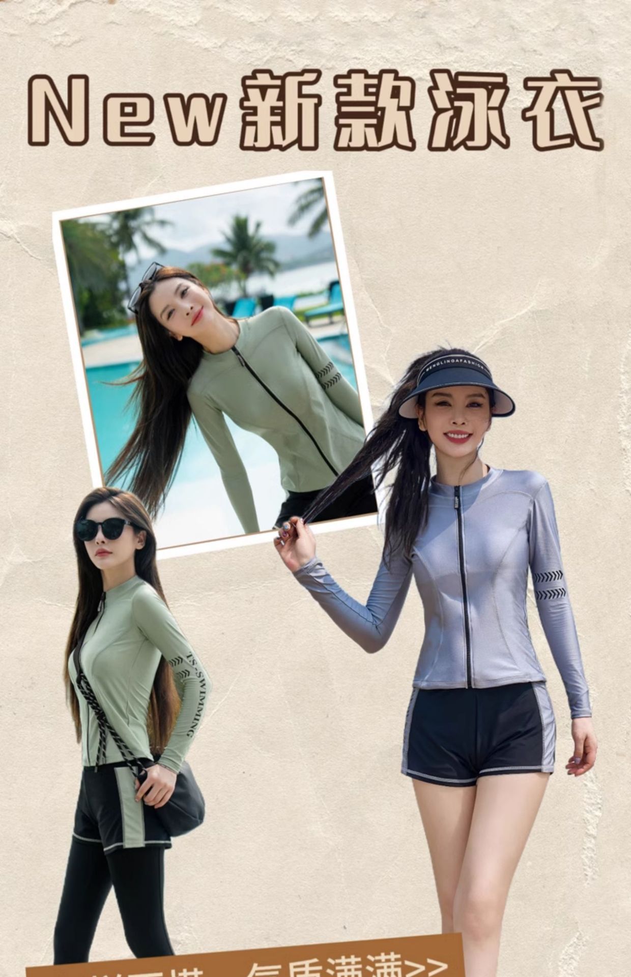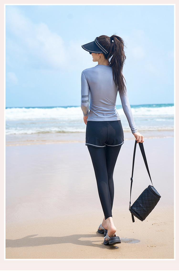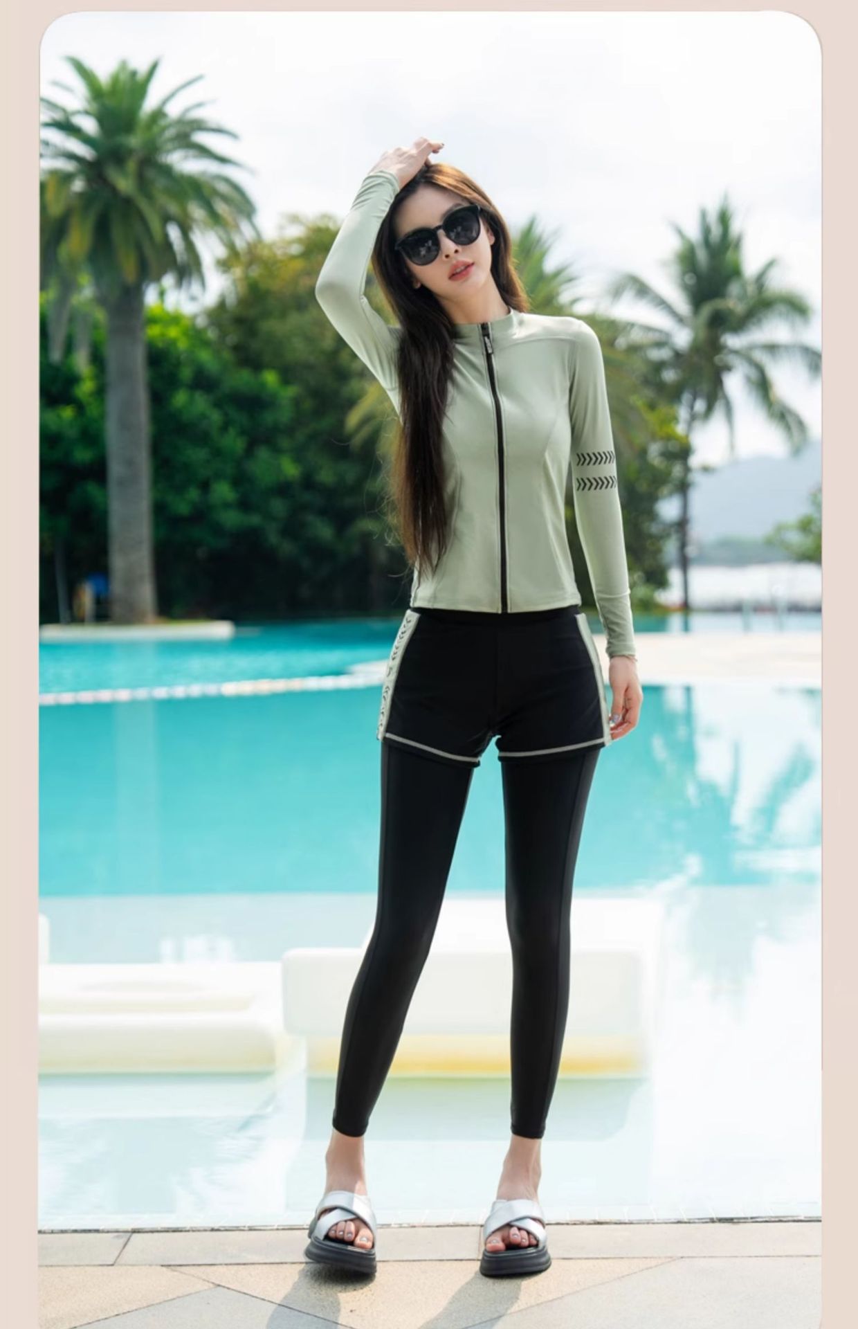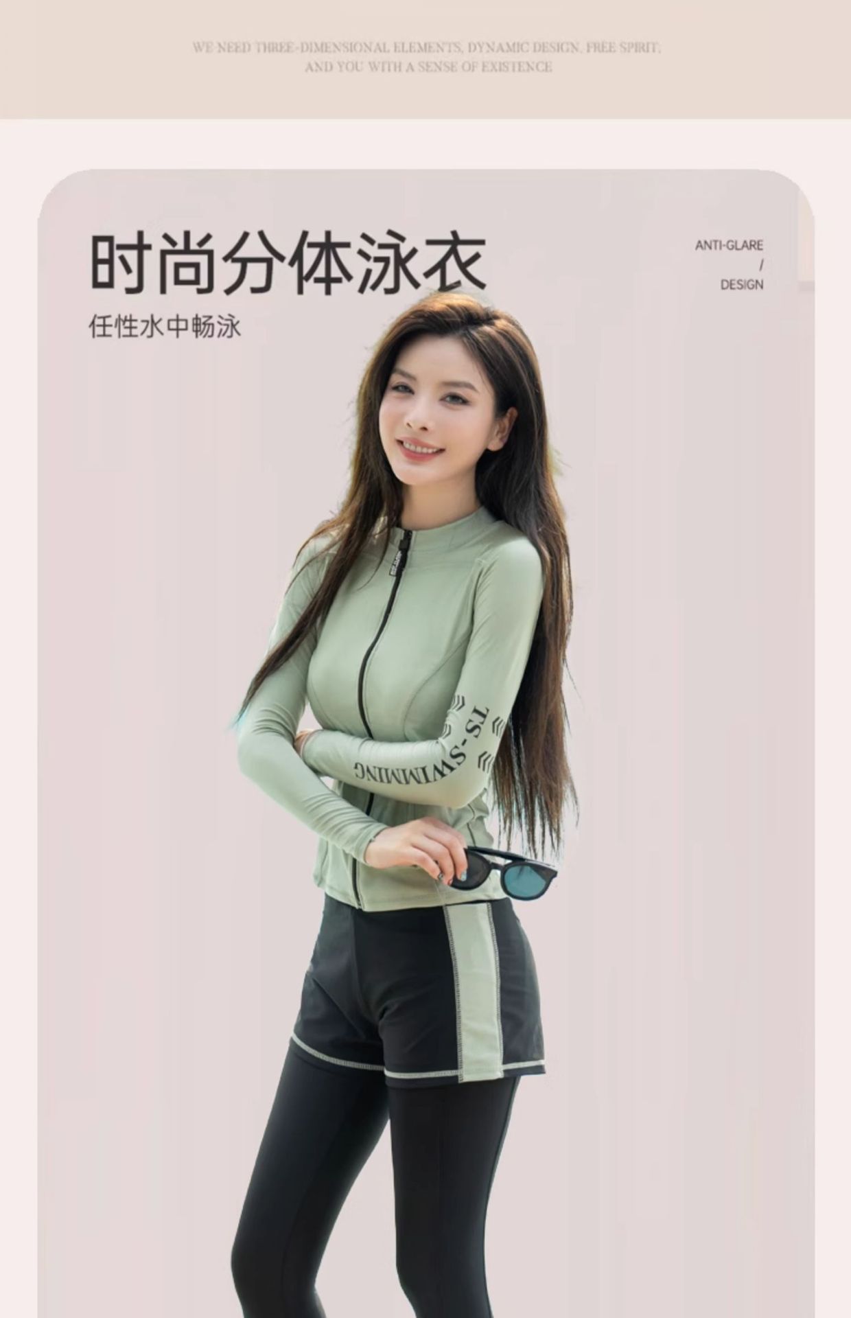 수영복 여성 2025 새로운 수영 선 스크린 3 피스 세트 보수 분할 긴 소매 바지 수영장스토어 가기