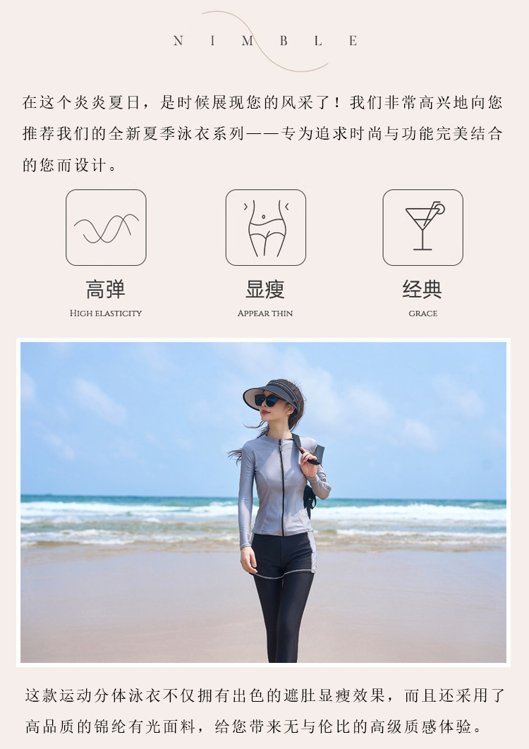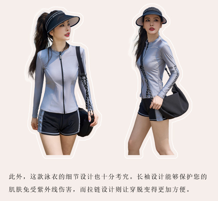 수영복 여성 2025 새로운 수영 선 스크린 3 피스 세트 보수 분할 긴 소매 바지 수영장