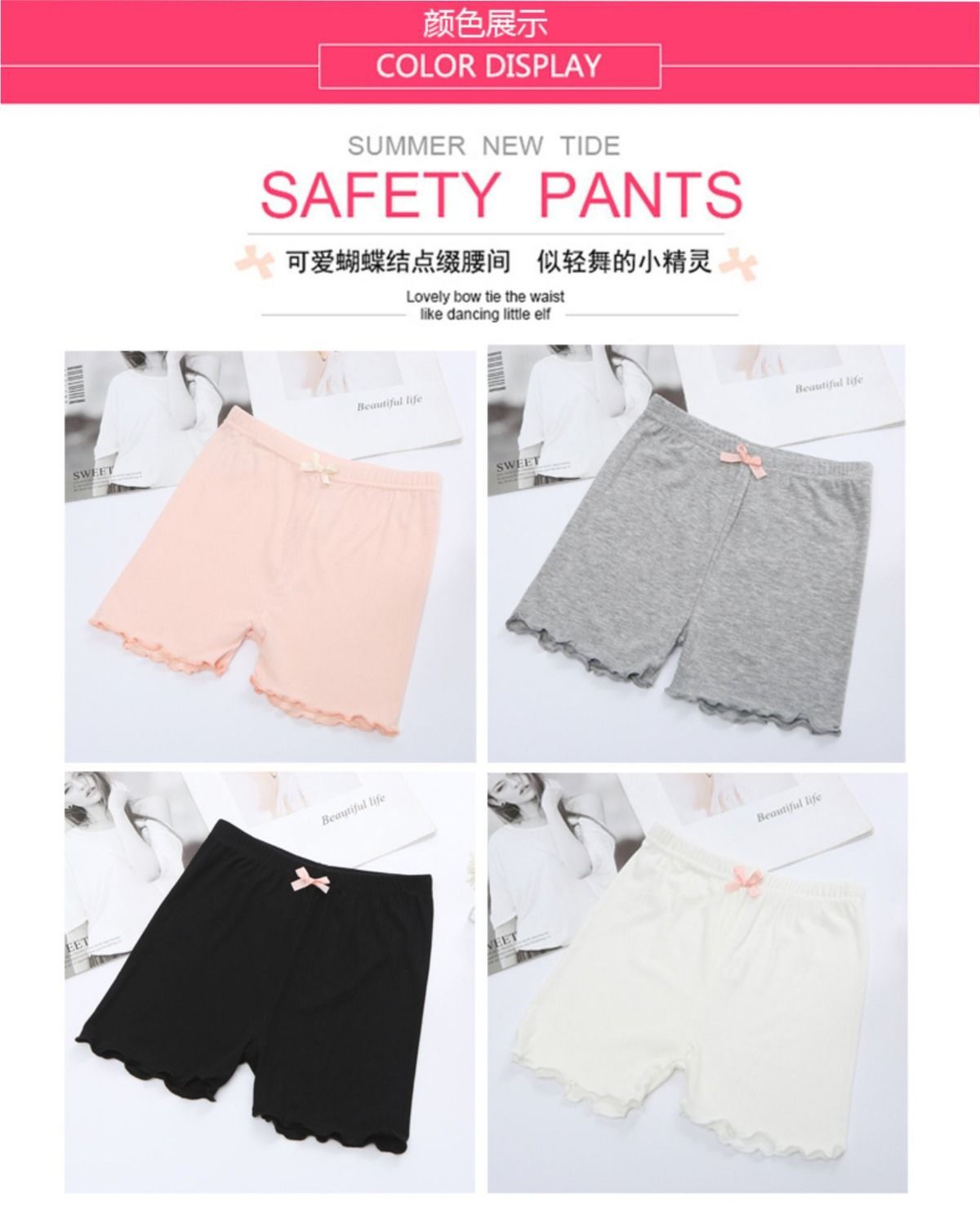 국경 간 폭발 소녀 안전 바지 안티 라이트 어린이 레깅스 모달 트리플 바지 나비 귀 가장자리 반바지스토어 가기