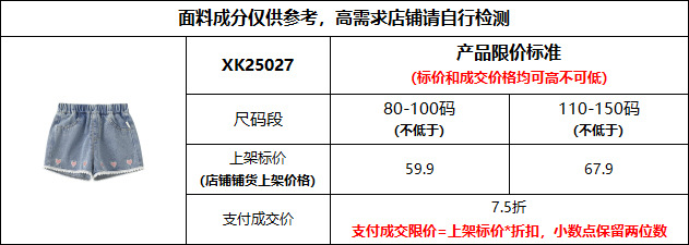 유바오 아동복 여아용 달콤한 반바지 2026년 여름 신상품 중소형 아동용 하트 자수 얇은 데님 핫팬츠스토어 가기