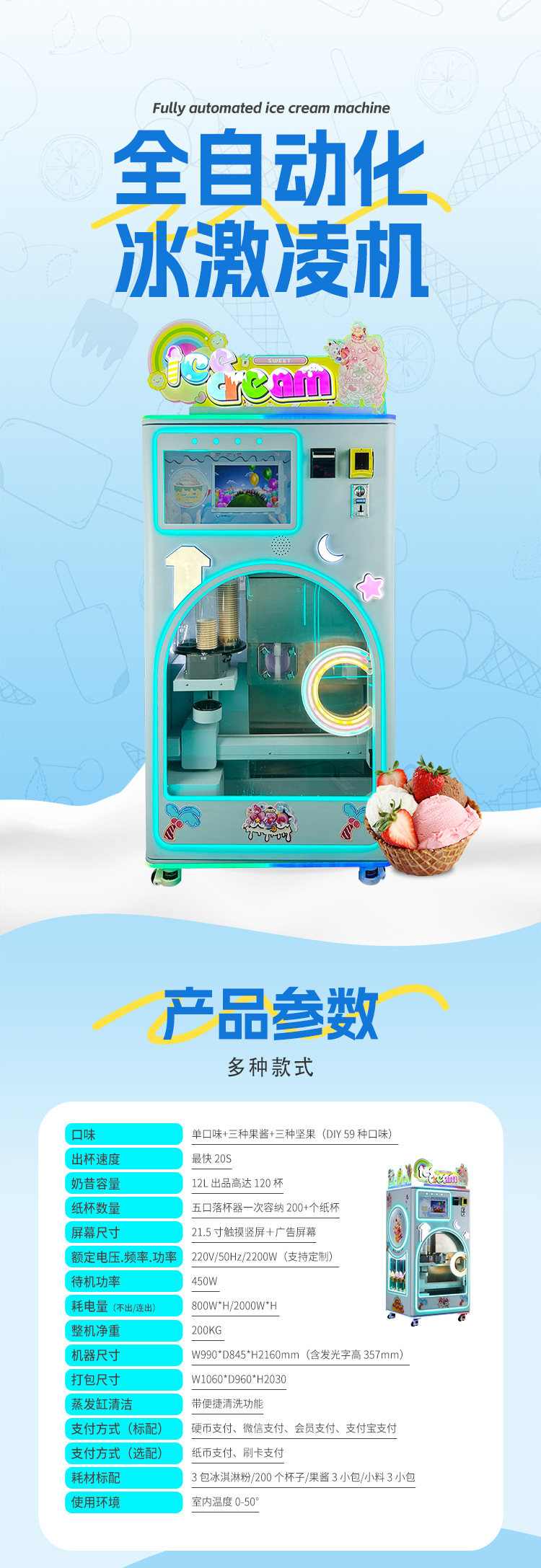 완전 자동 아이스크림 기계, 상업용 자동 판매기, 실외 무인 아이스크림 기계, 스캔 코드 셀프 서비스 자동 판매기