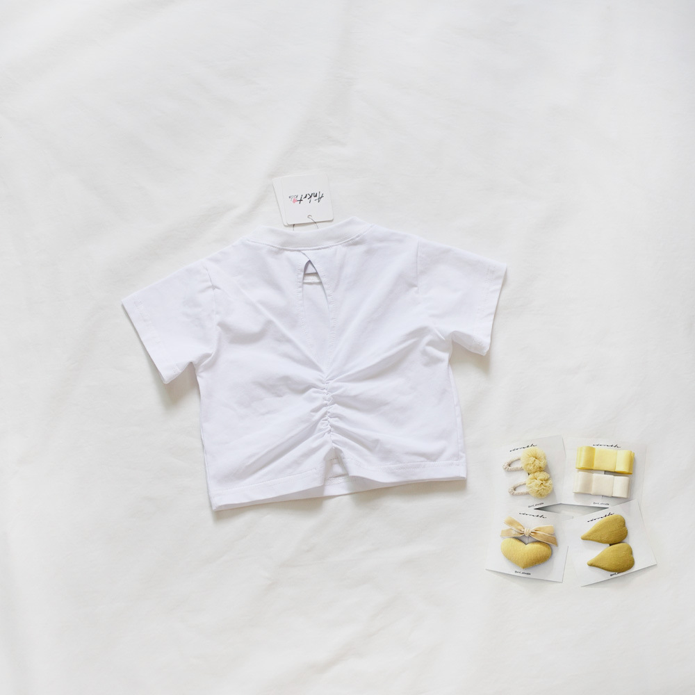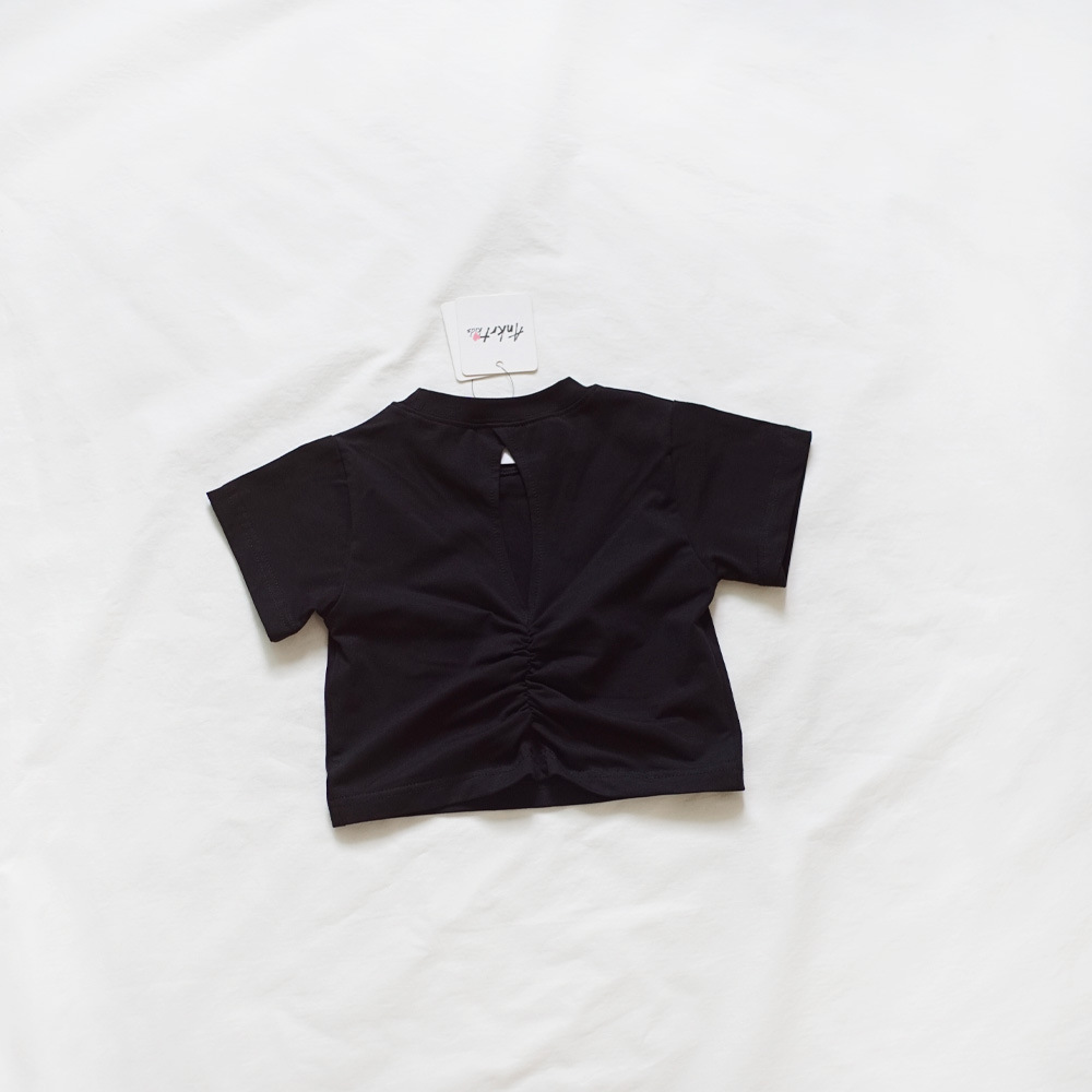 ANKRT 국경 간 부모 자식 일본인 원피스 어린이 반팔 티셔츠 니트 스웨터 소녀의 등 주름진 짧은 상단스토어 가기