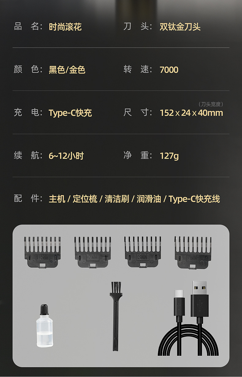 골드 롤링 다기능 이발기 전기 클리퍼 강력한 배터리 수명 알루미늄 합금 분리형 강력한 배터리 수명스토어 가기