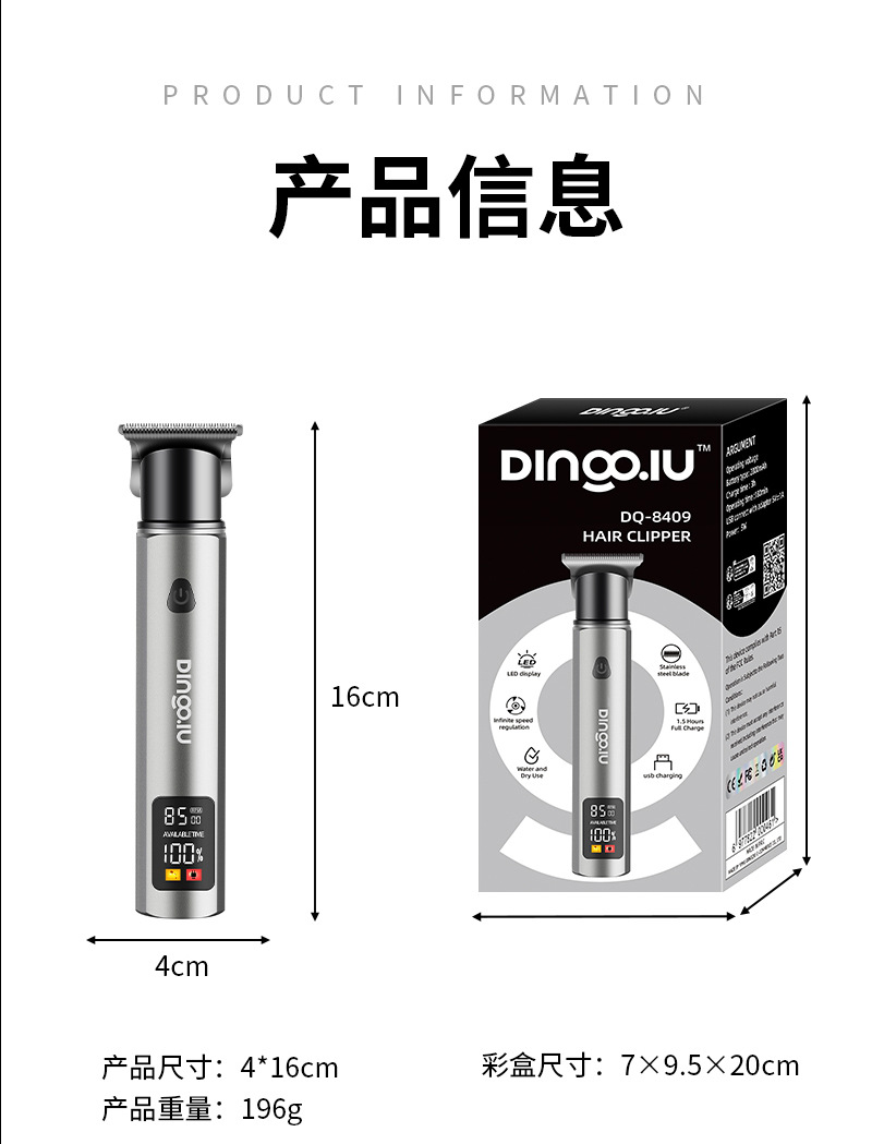 딩큐 DQ-8409 신형 전기 이발기, 이발용 전문 전기 클리퍼, 오일헤드/광머리용 이발기