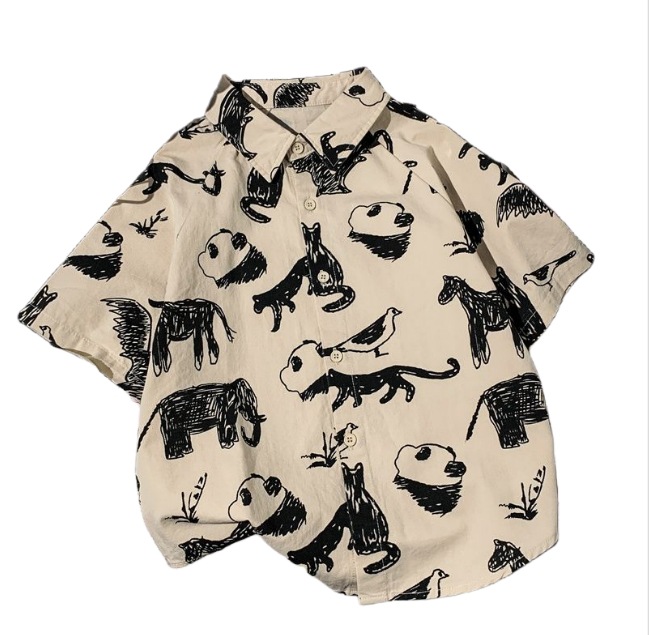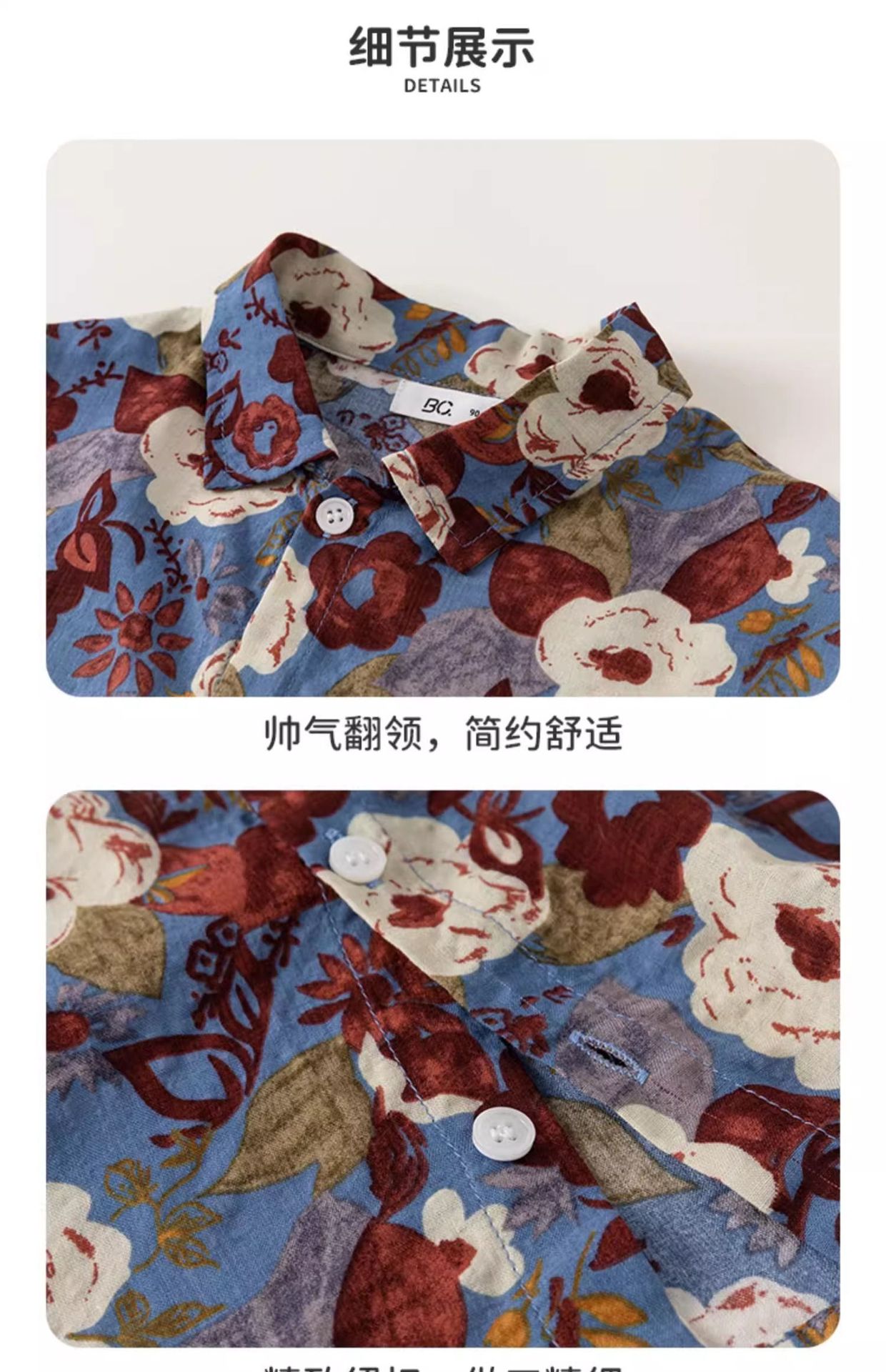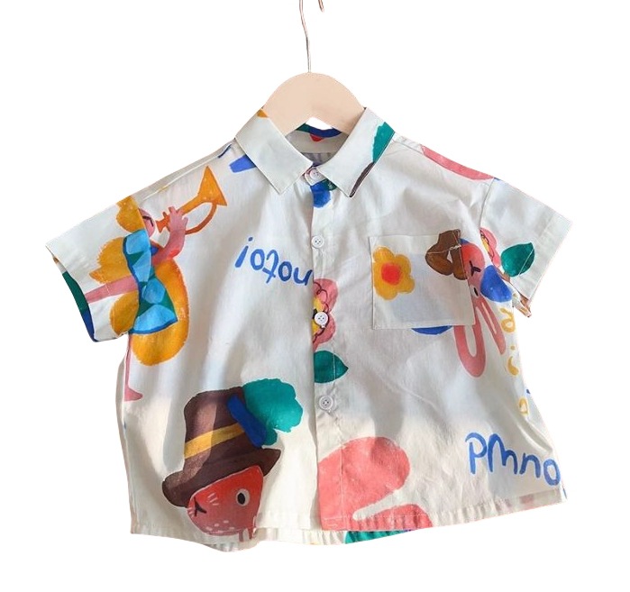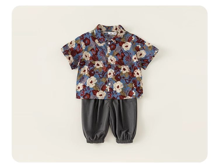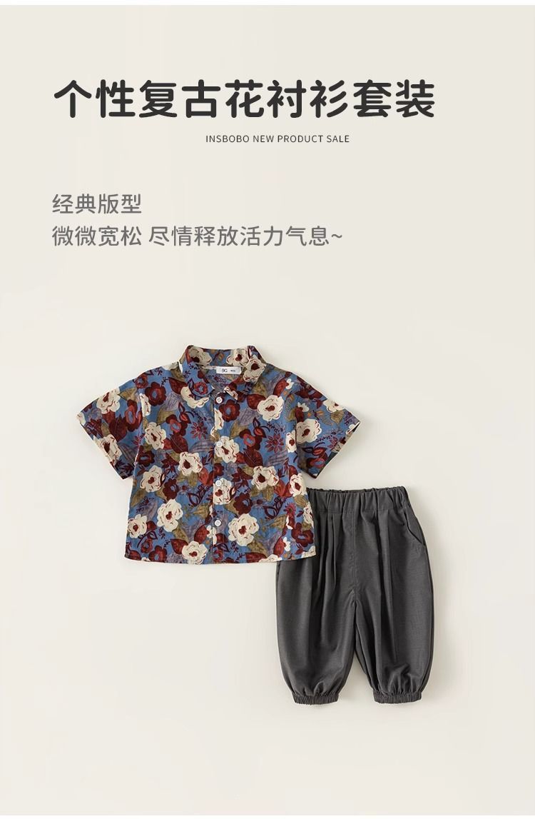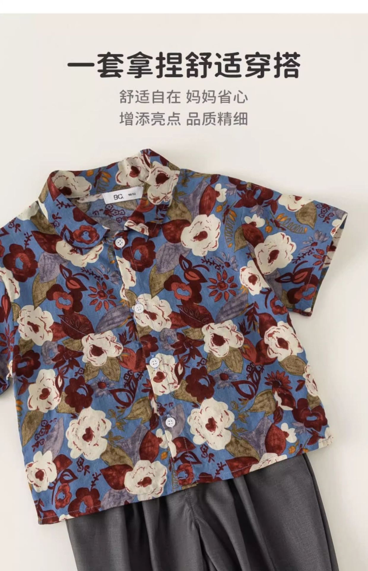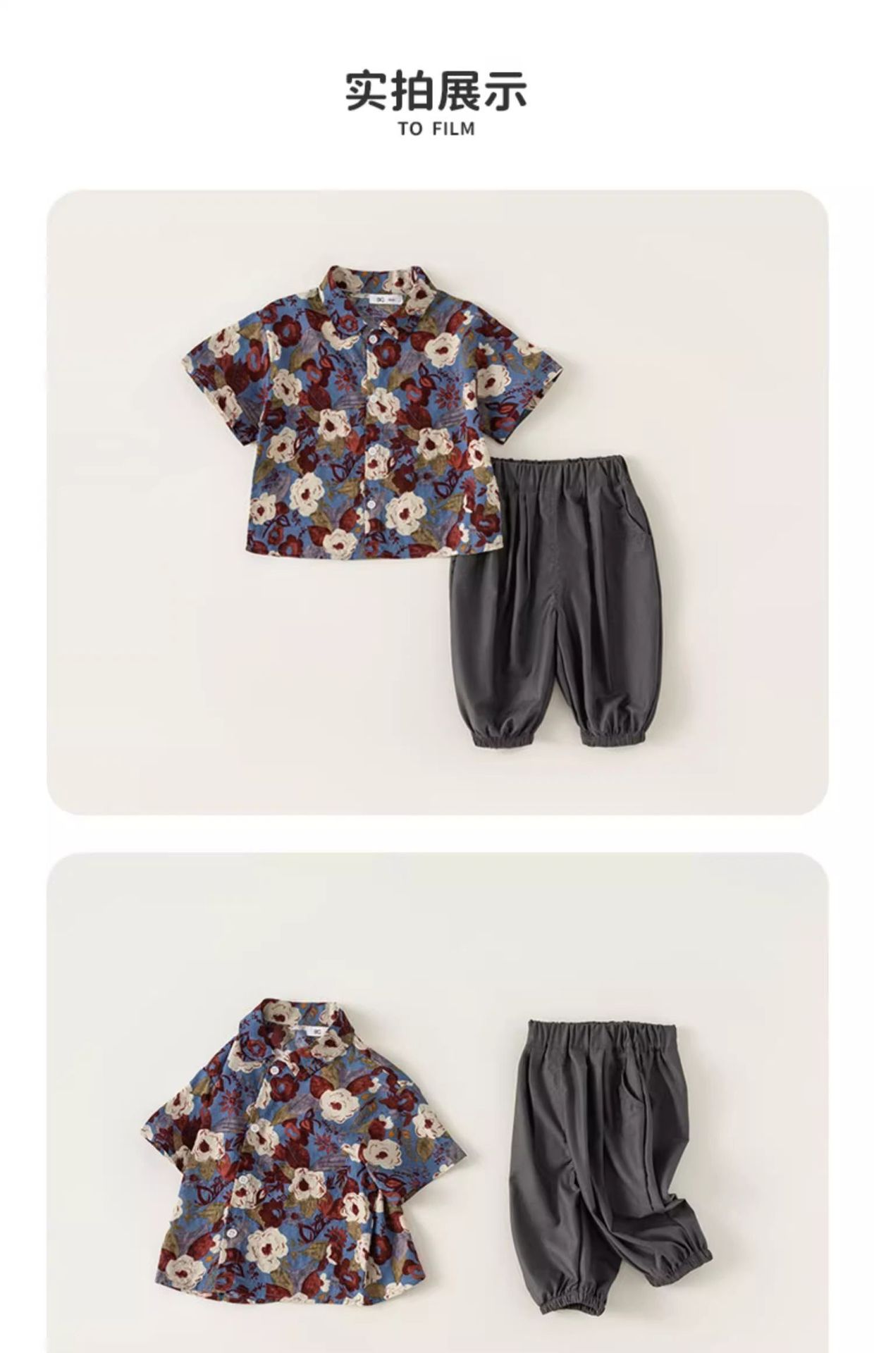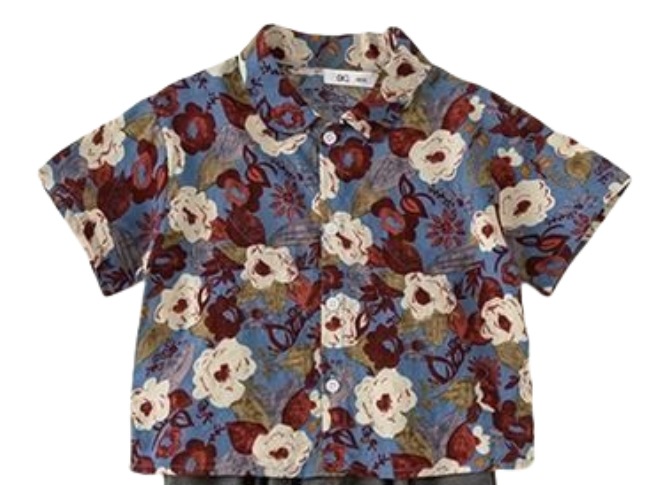 어린이 여름 도파민 꽃 셔츠 어린이 여성 반팔 세트 어린이 인터넷-유명한 패션 셔츠 홍콩 스타일 탑스토어 가기