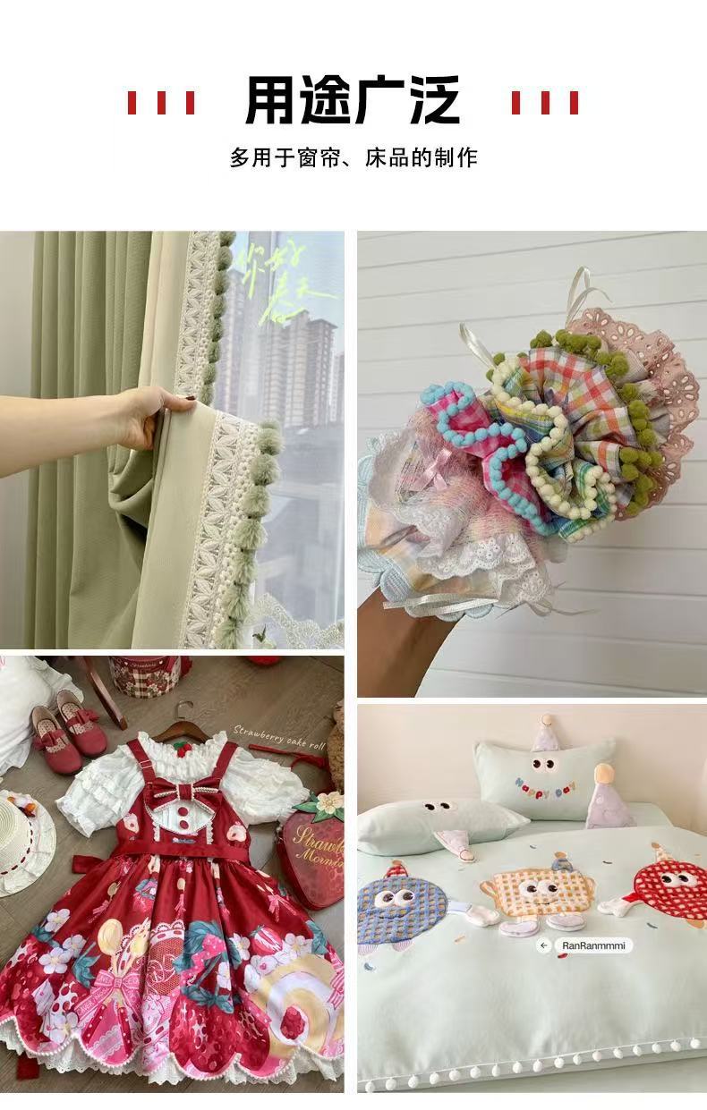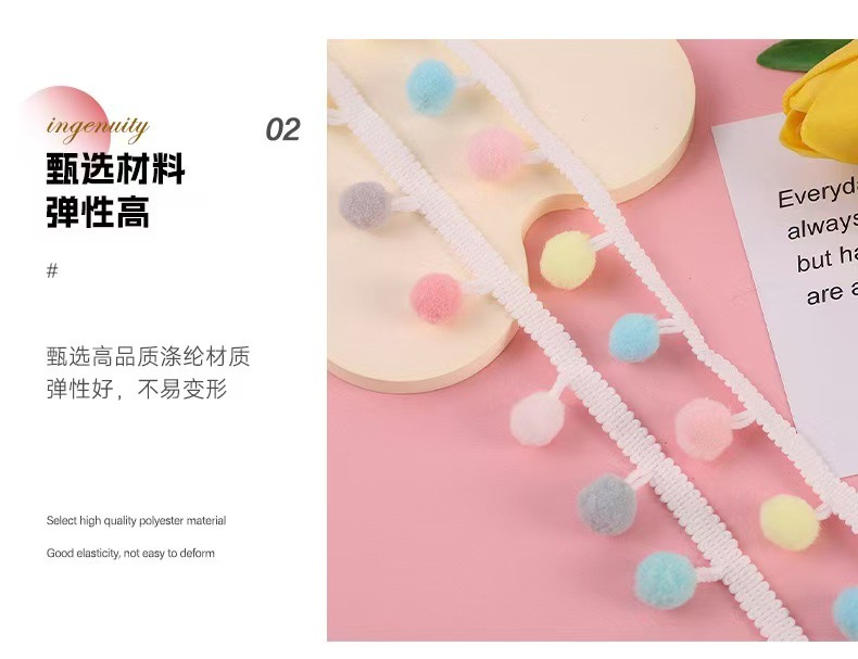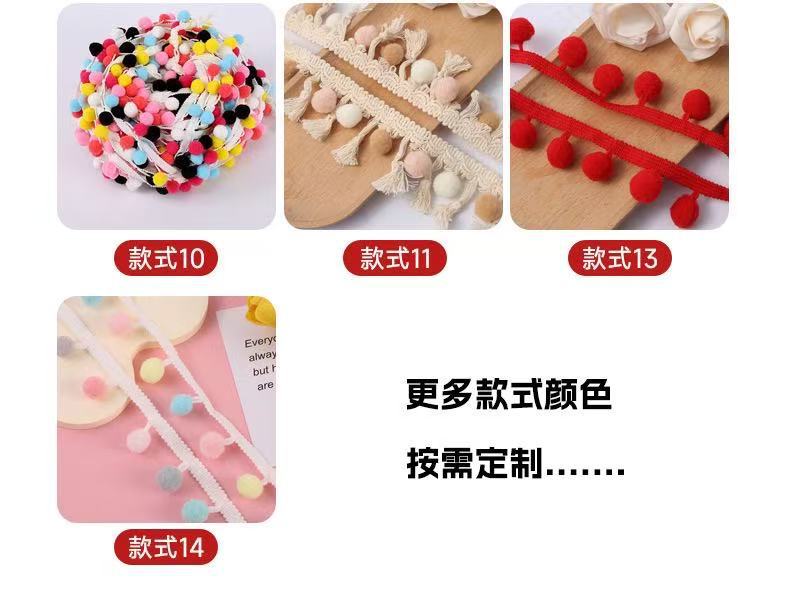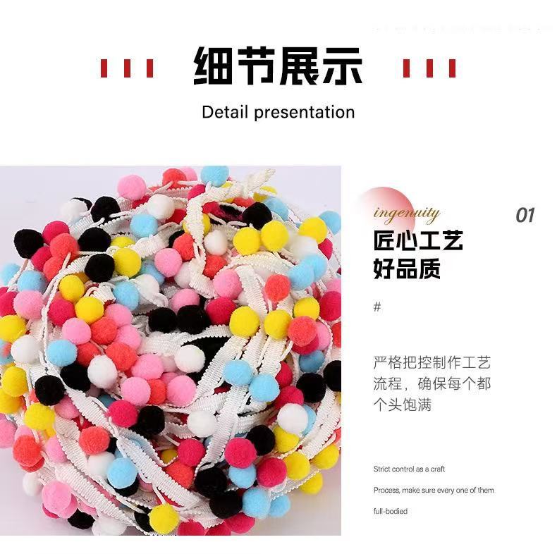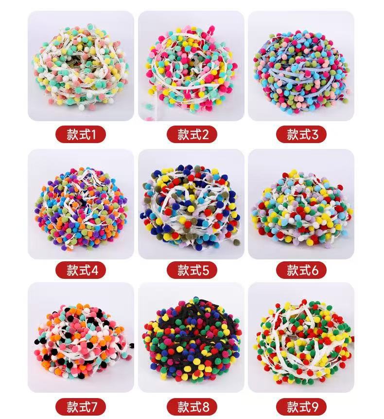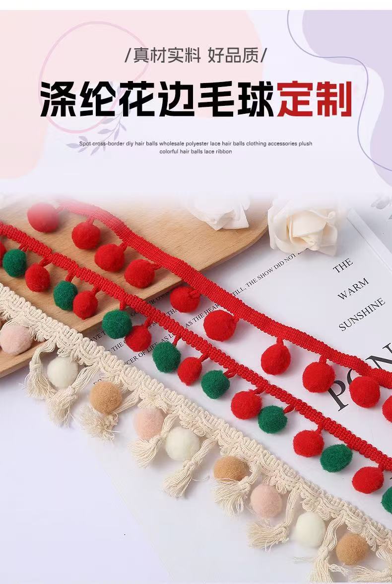 재고 크로스 보더 DIY 울 볼 도매 폴리 에스테르 레이스 울 볼 의류 액세서리 플러시 컬러 울 볼 레이스 리본스토어 가기