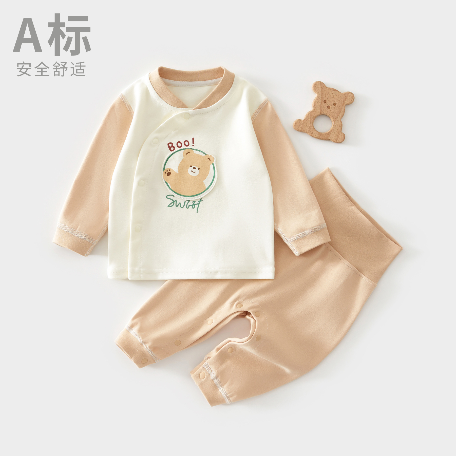 사계절 아기 가을옷 세트, 투피스 하이웨이스트 배 보호 아기 순면 세트, 아동 남녀 분리형 세트스토어 가기