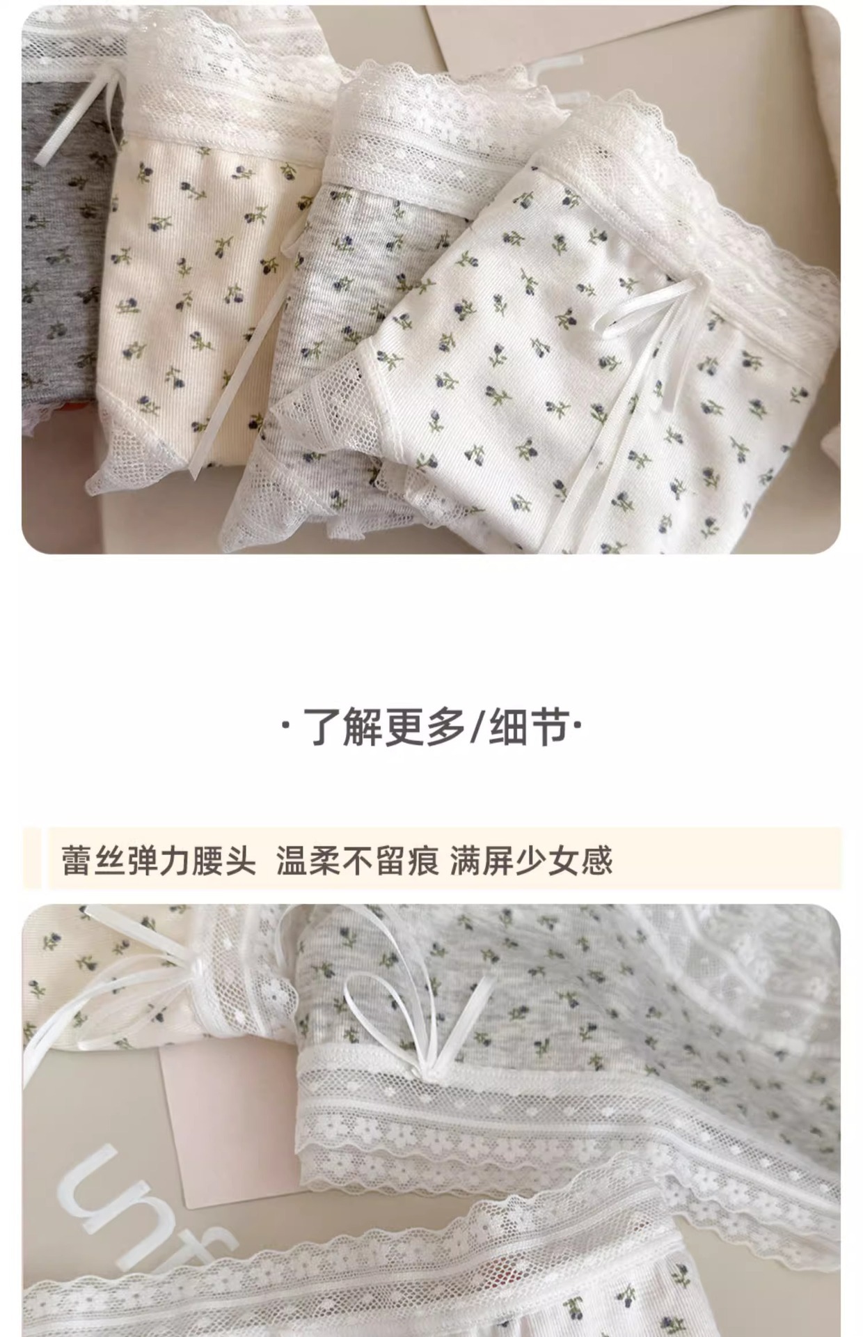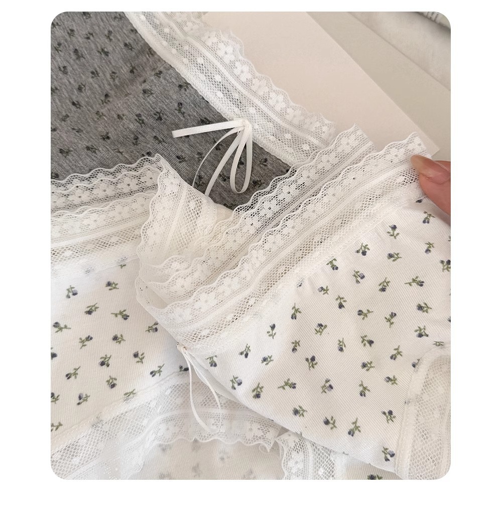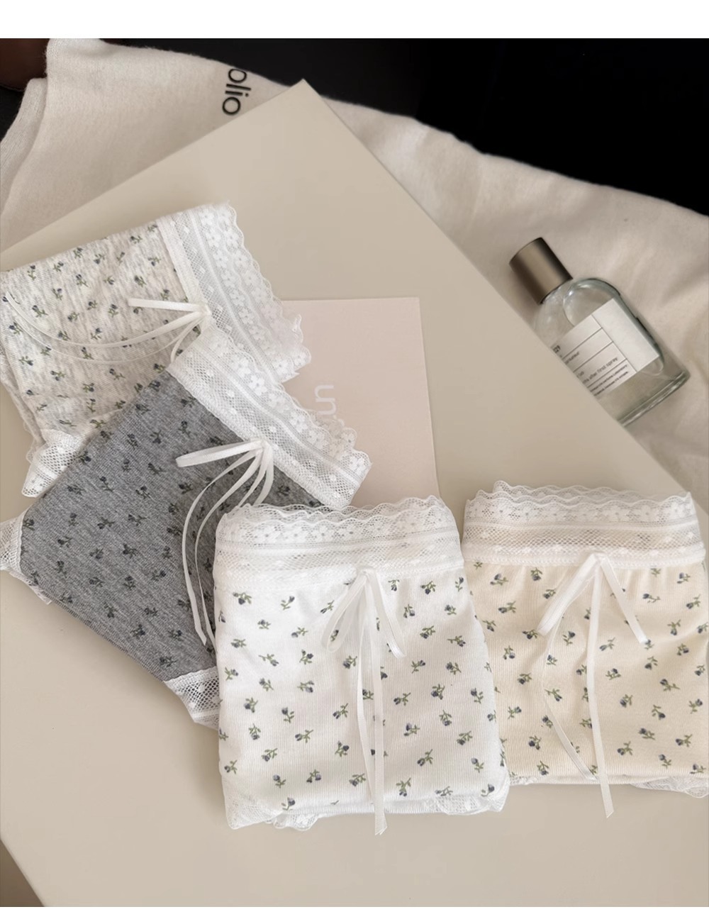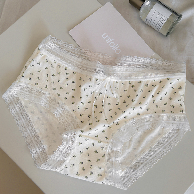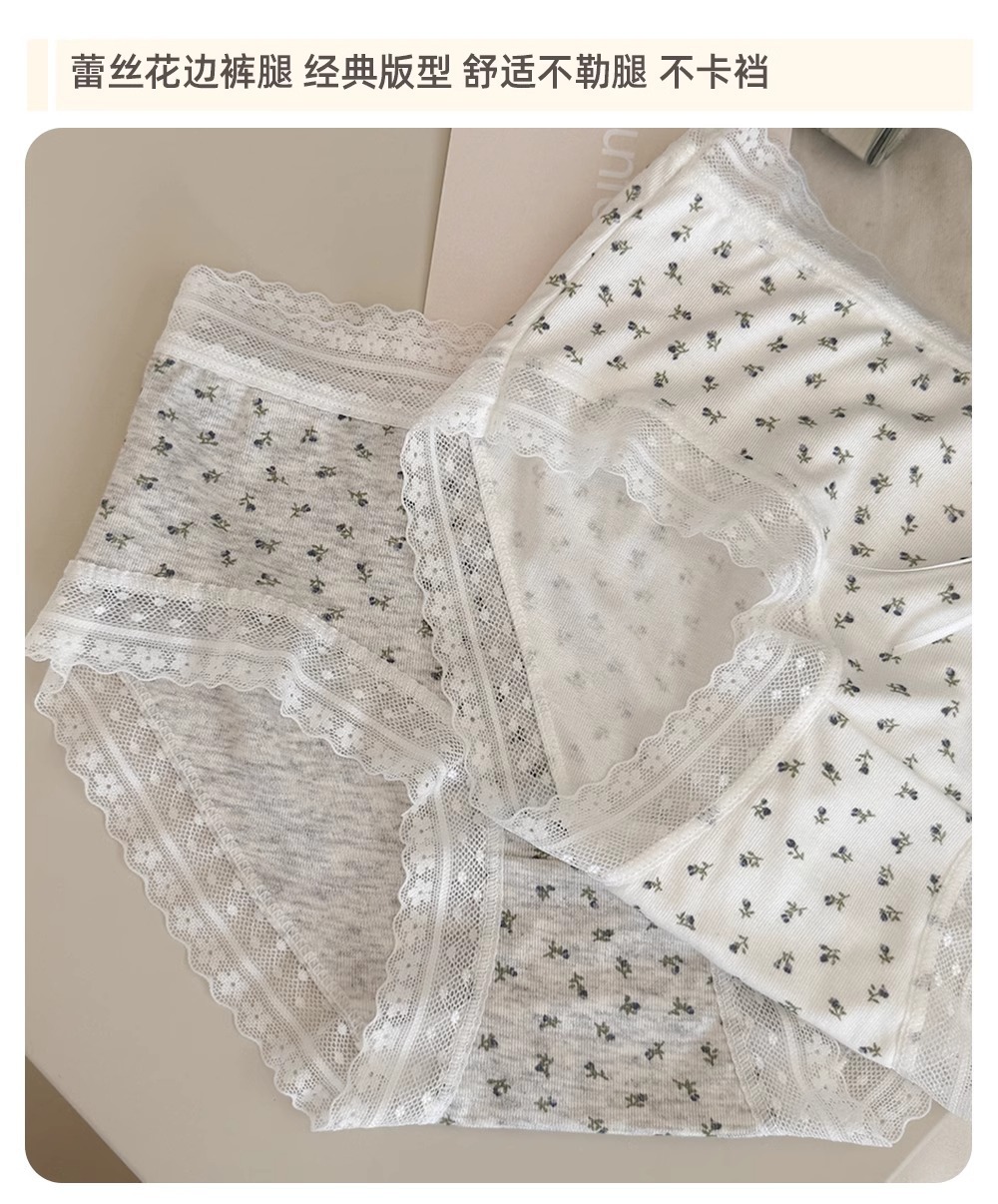 "Poetic Garden" 레이스 팬티 여자 순수 코튼 가랑이 팬티 2025 새로운 섹시한 중간 허리 반바지스토어 가기