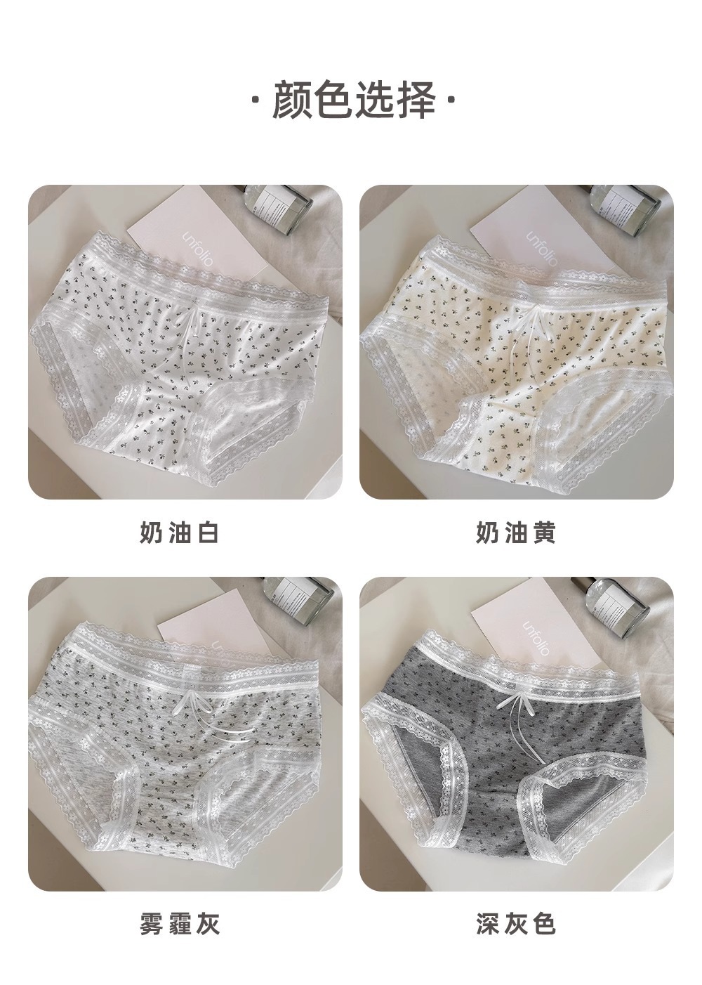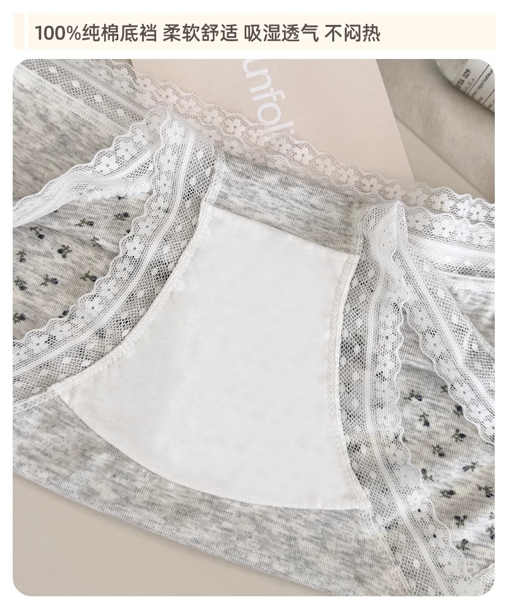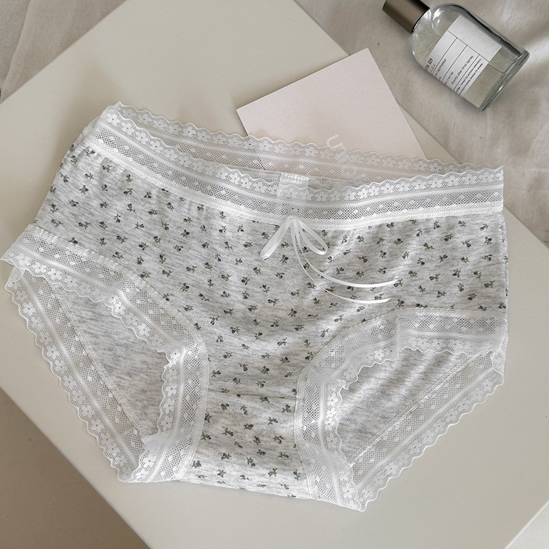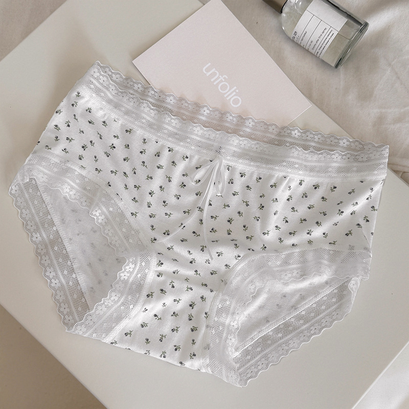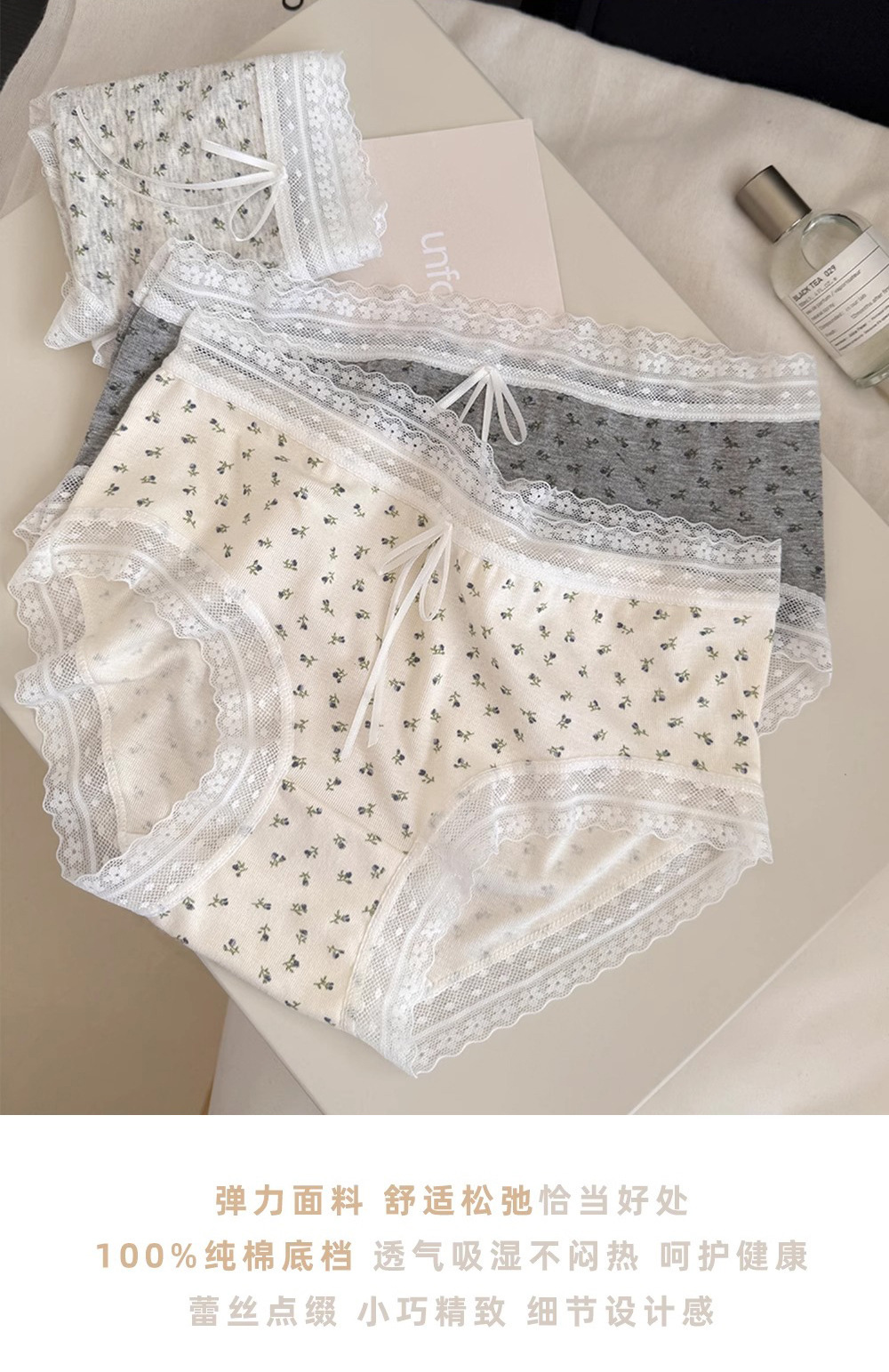 "Poetic Garden" 레이스 팬티 여자 순수 코튼 가랑이 팬티 2025 새로운 섹시한 중간 허리 반바지