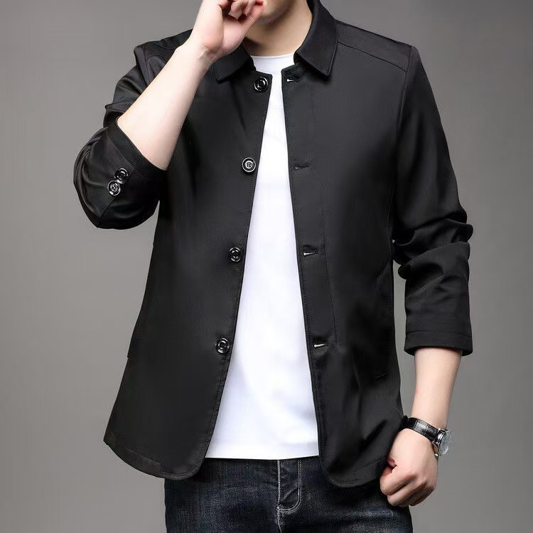 봄과 가을 중년 새로운 남성 버튼 재킷 캐주얼 아빠 재킷 얇은 탑 옷깃 중년 남성스토어 가기