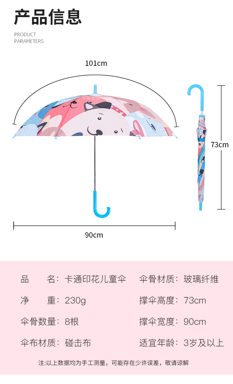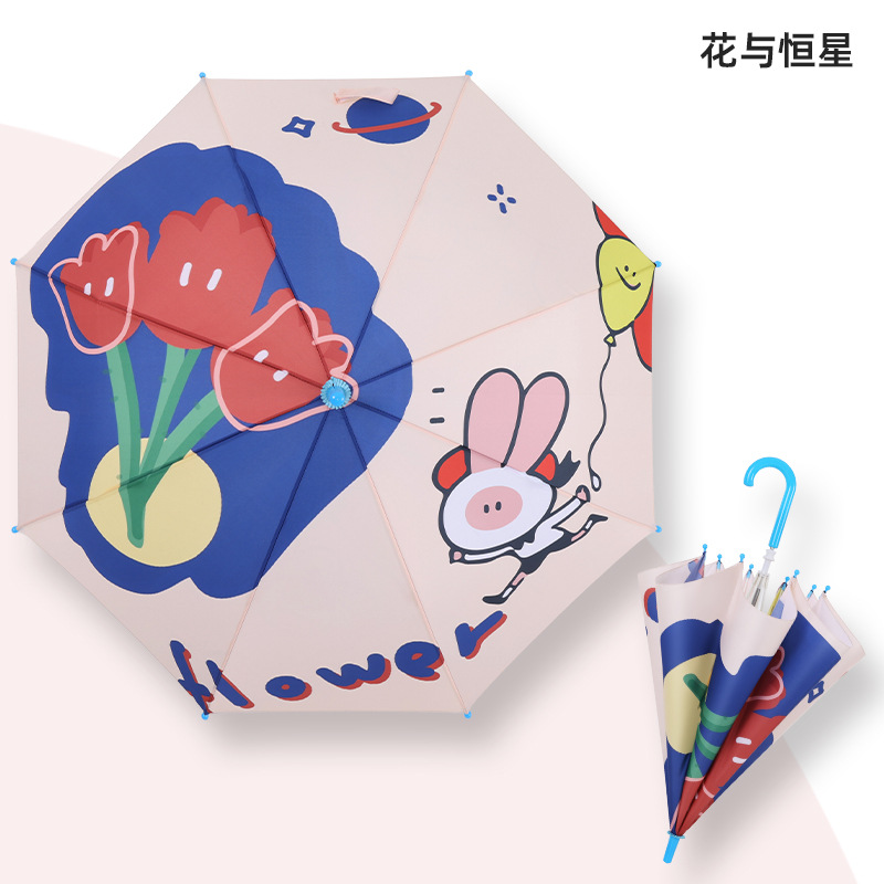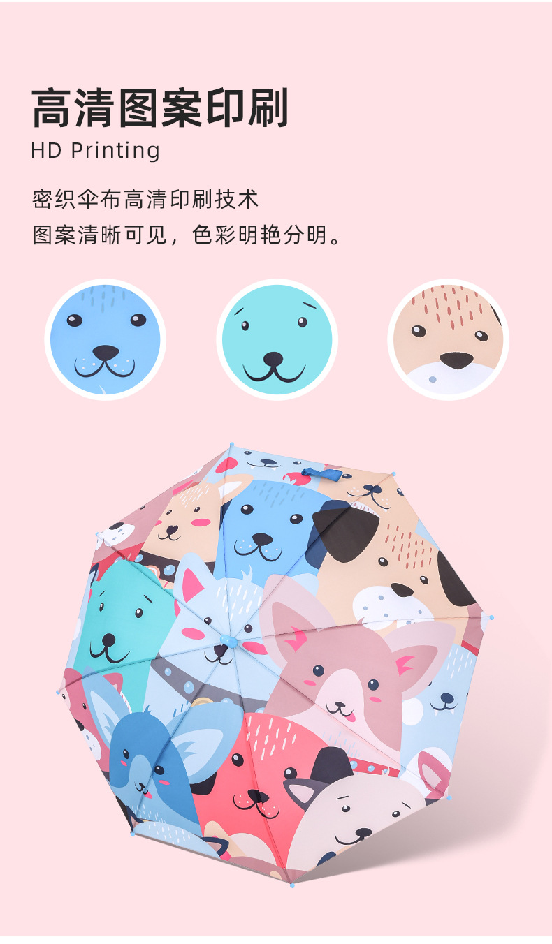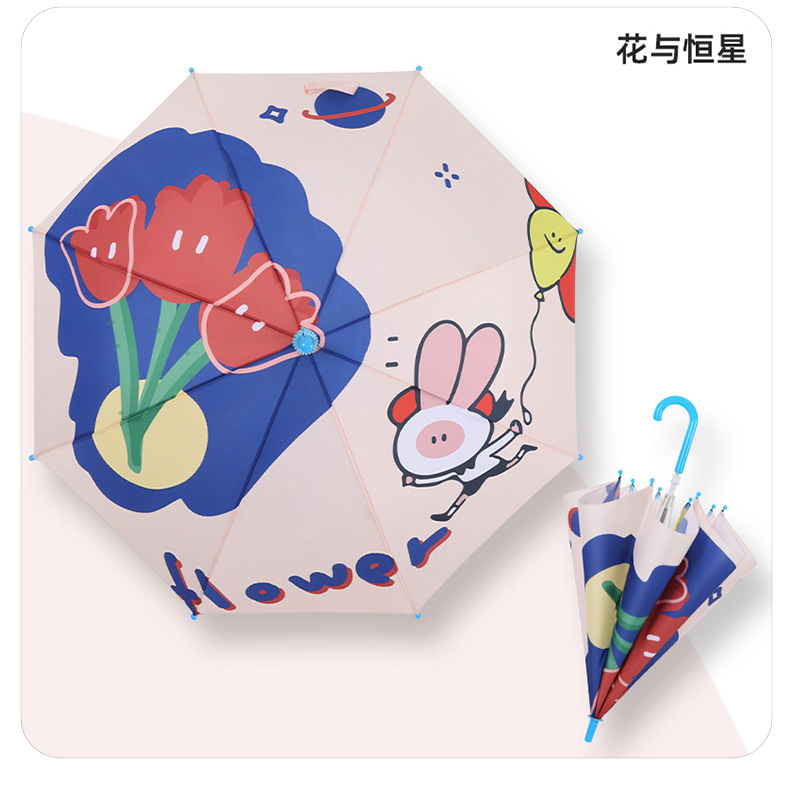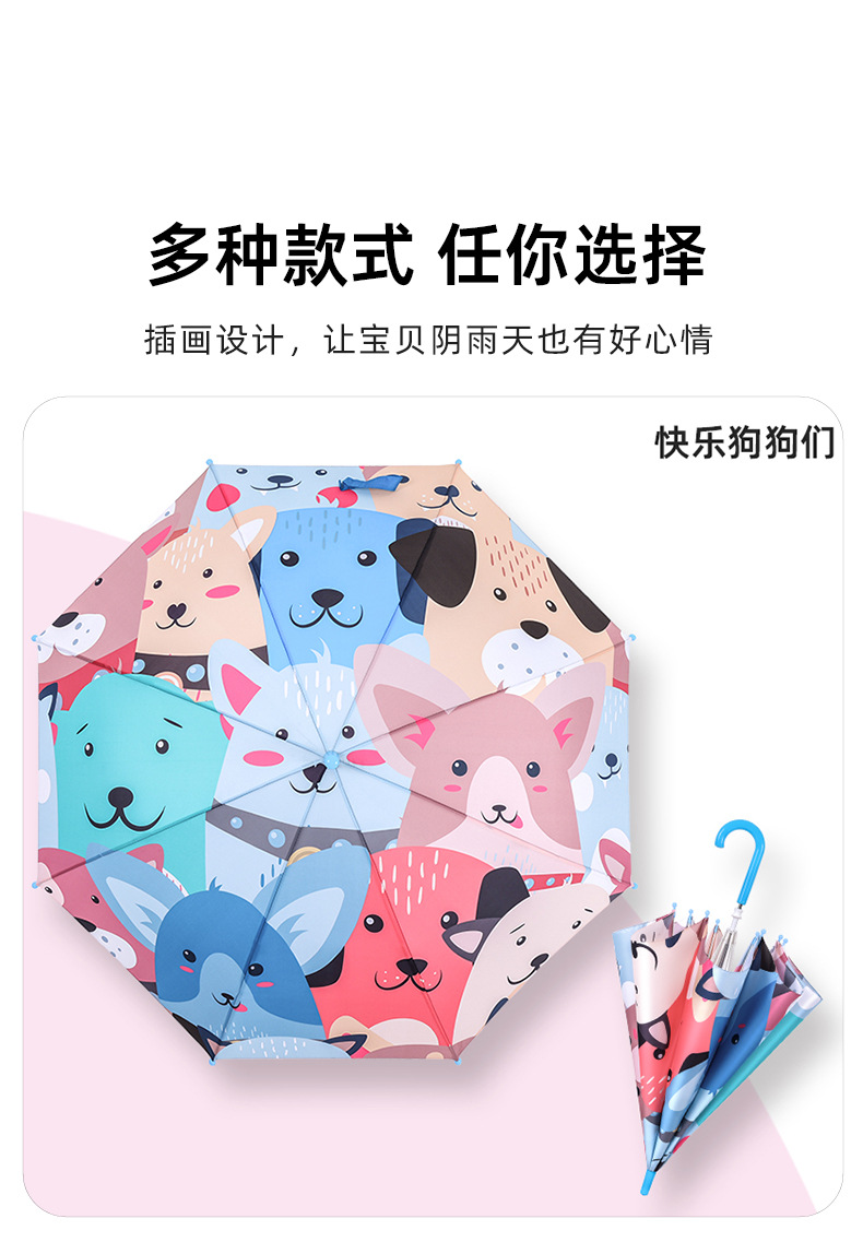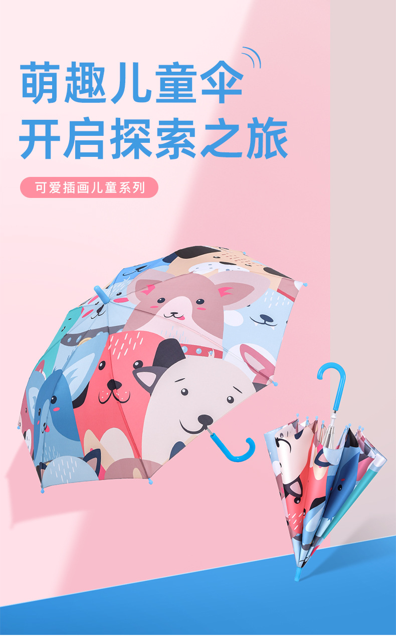 손으로 그린 일러스트레이션, 비가 오나 눈이 오나 직선형, 작고 편리한 어린이 우산, 만화 어린이 우산, 로고 인쇄, 도매 가능