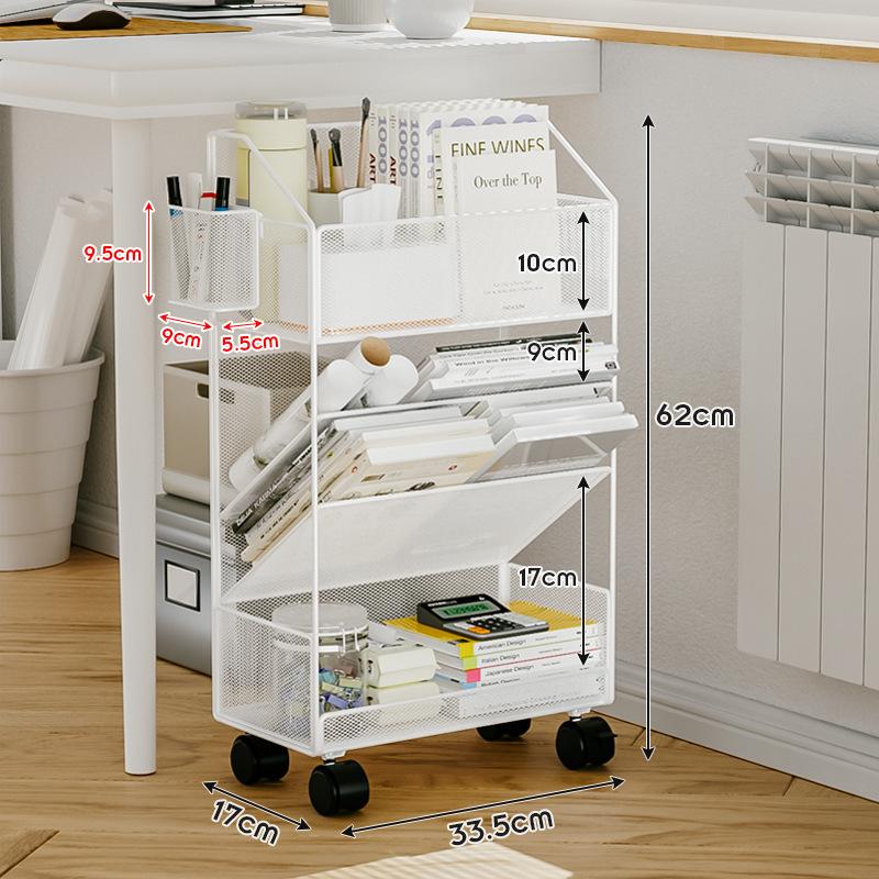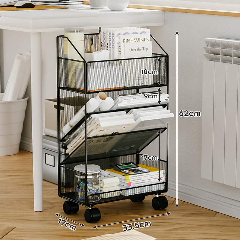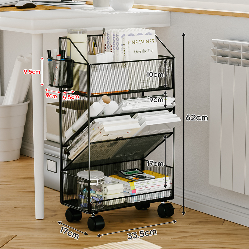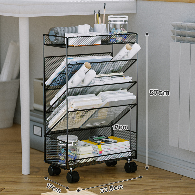사무실 책장 바닥 저장 선반 책상 저장 랙 바퀴가 움직일 수있는 테이블 사이드 카트를 가진 간단한 보관 캐비닛스토어 가기