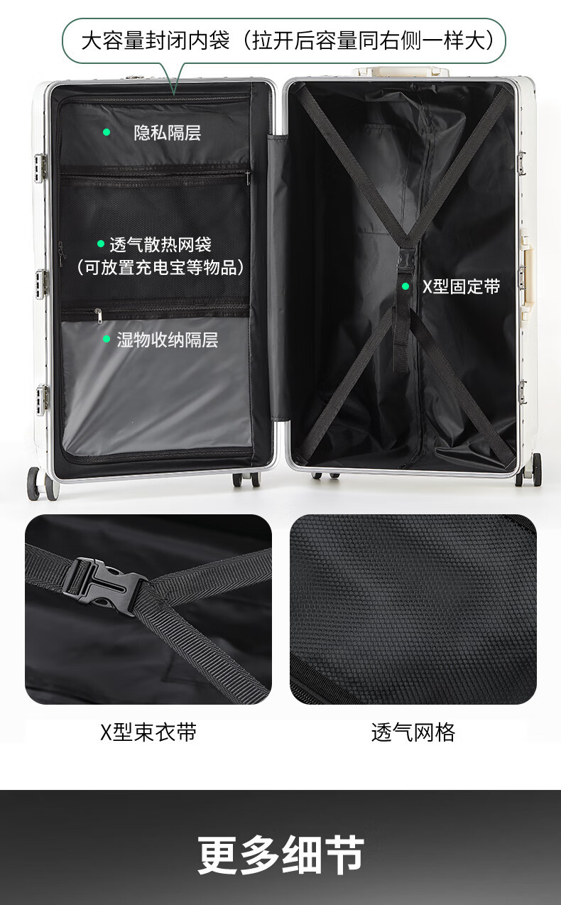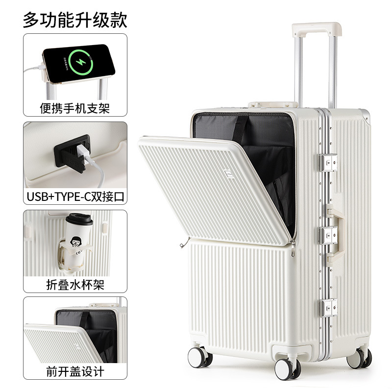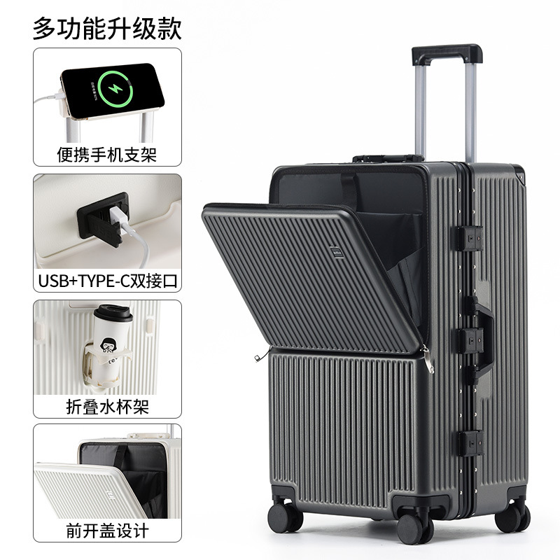 여성용 전면 개방형 알루미늄 프레임 가방 28inch 두꺼운 대용량 20 비밀번호 가방 가죽 케이스 남성용 트롤리 케이스스토어 가기