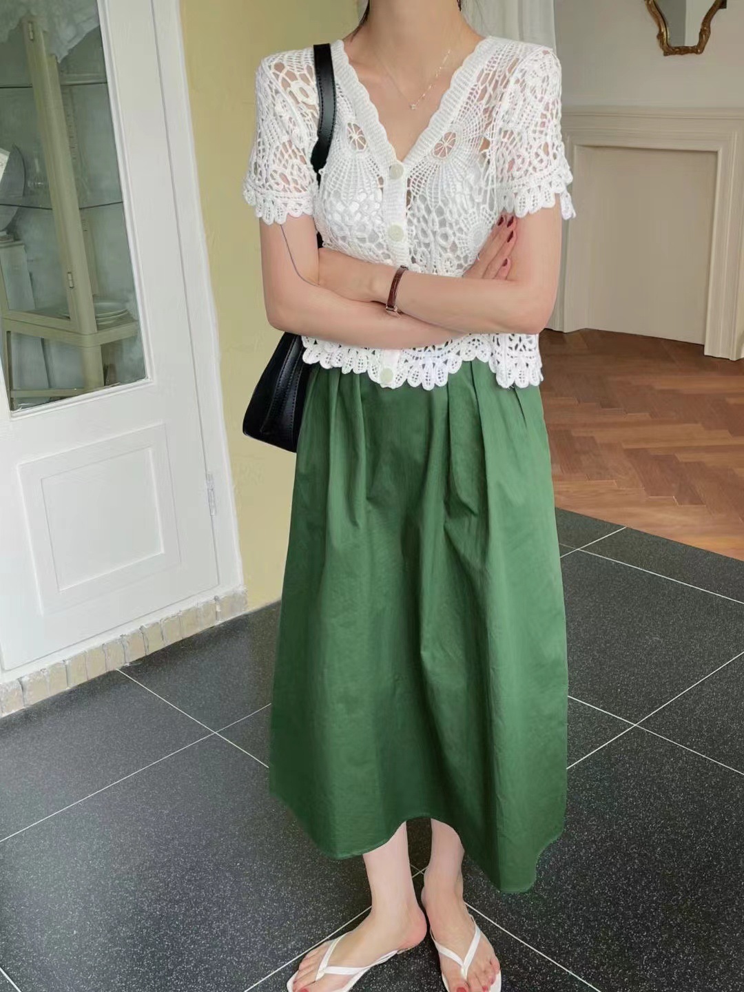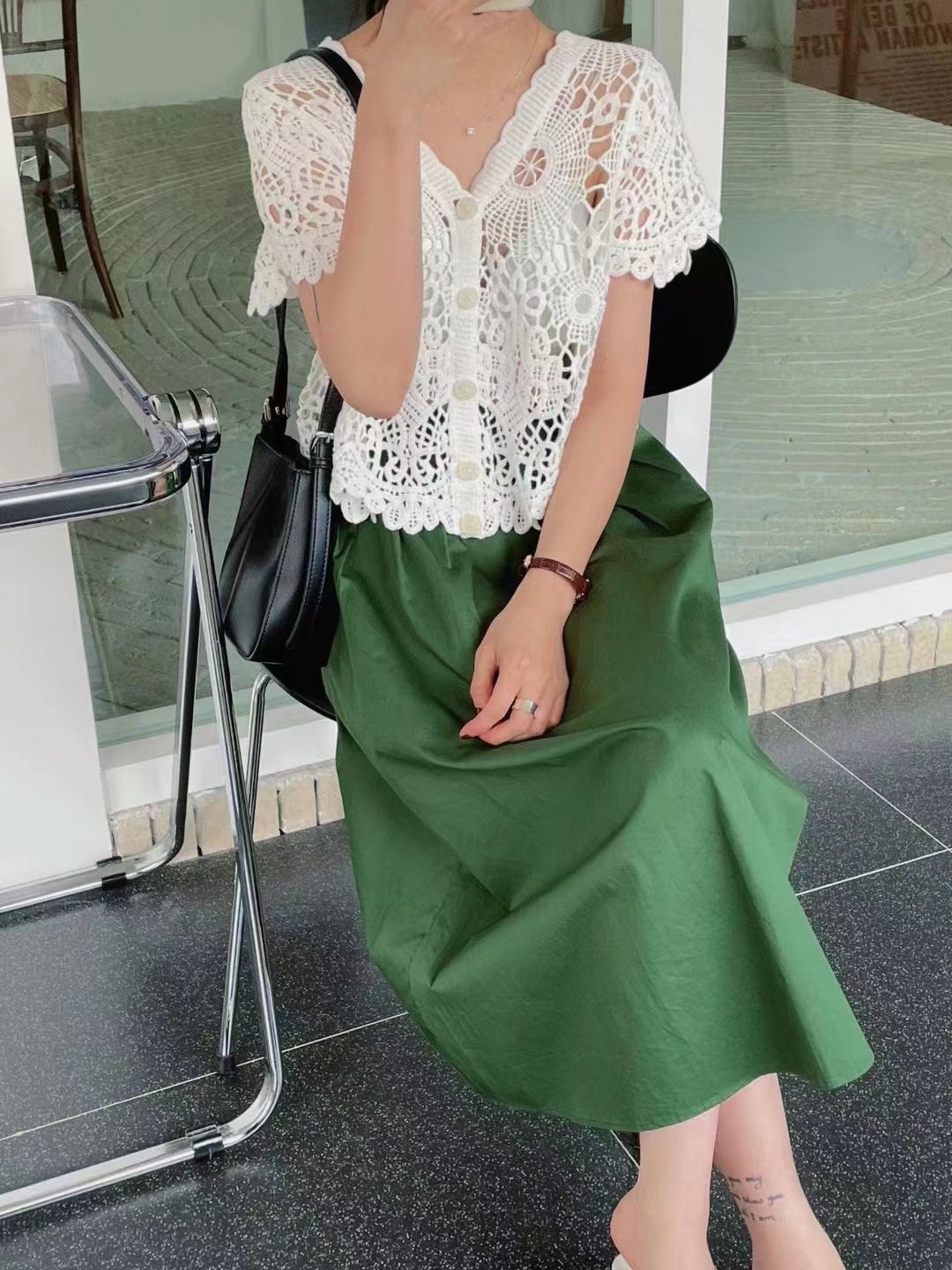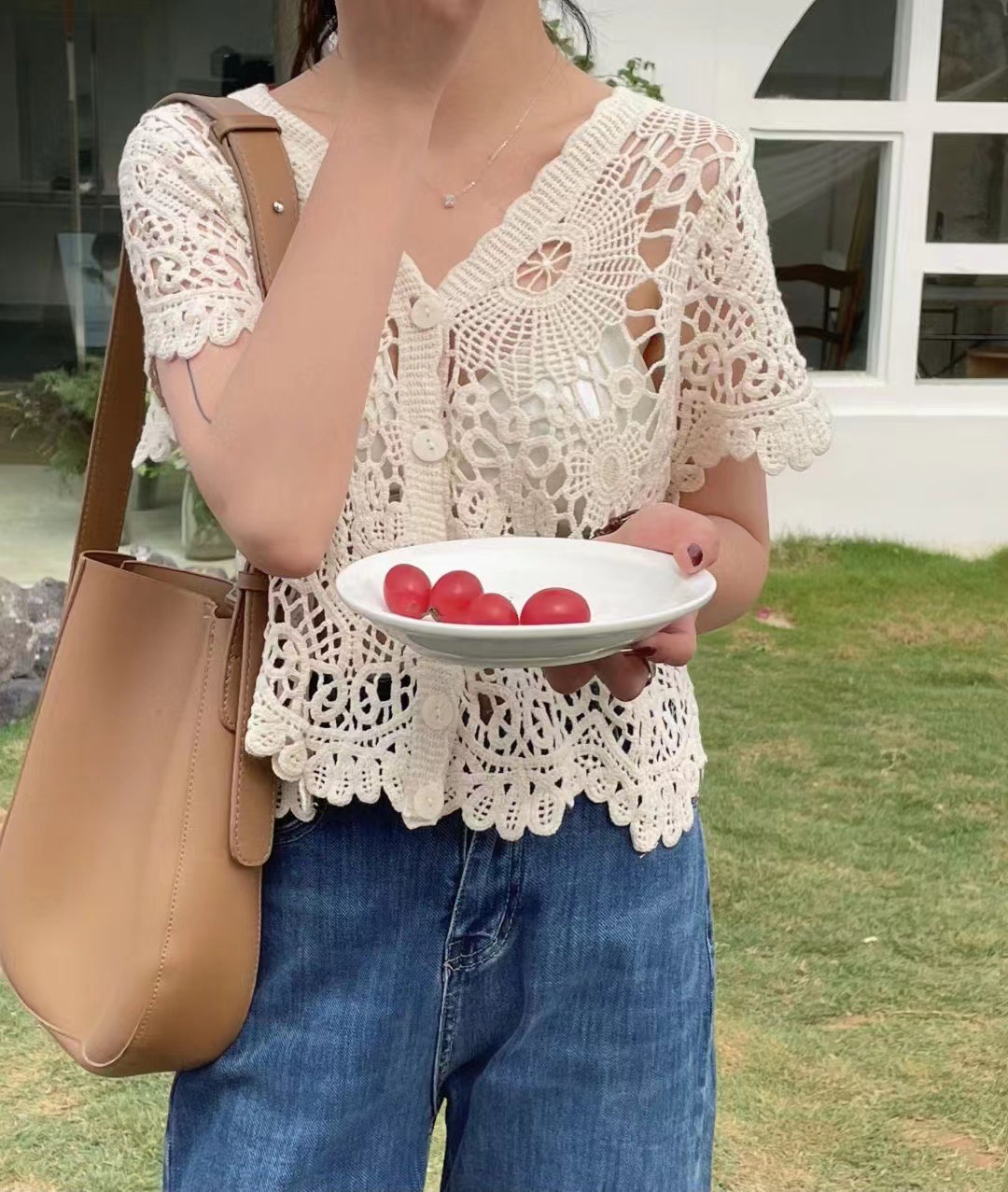 여성을위한 레트로 크로 셰 뜨개질 중공 반팔 탑 2025 여름 새 스웨터 다목적 짧은 카디건 v 넥 탑