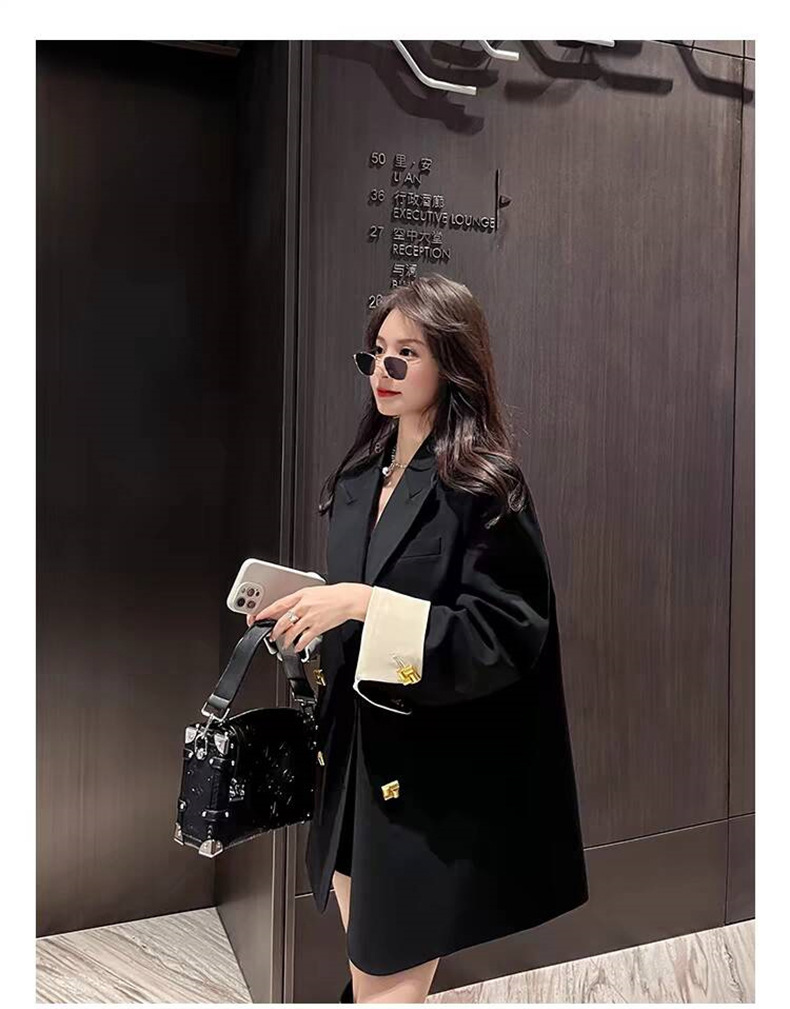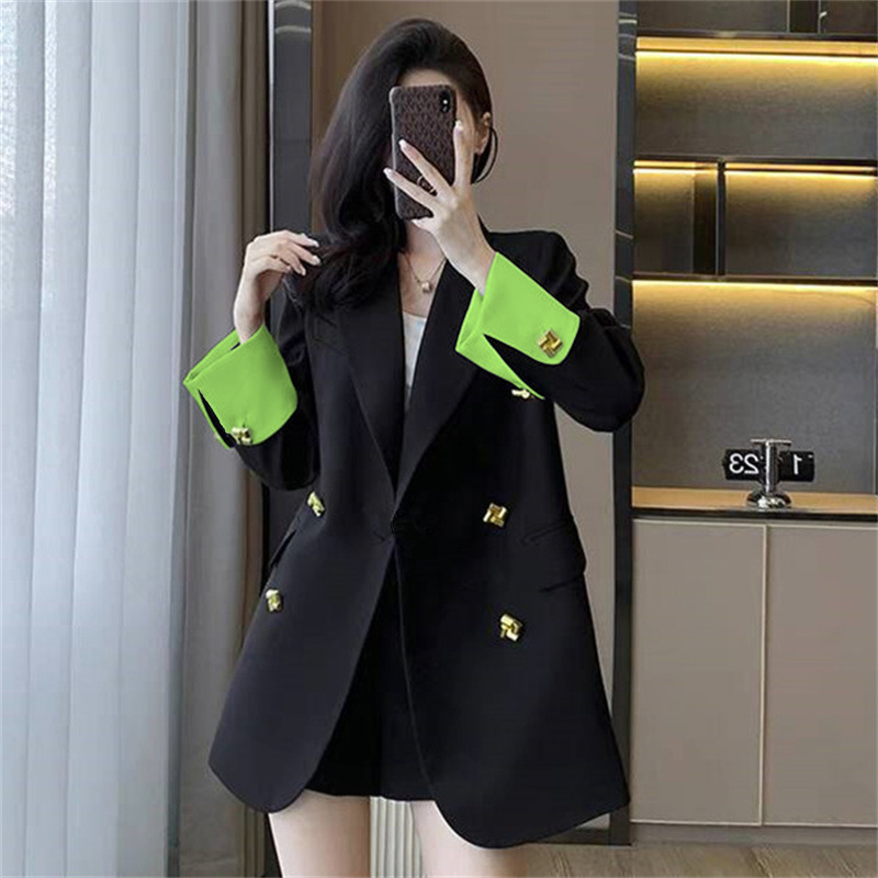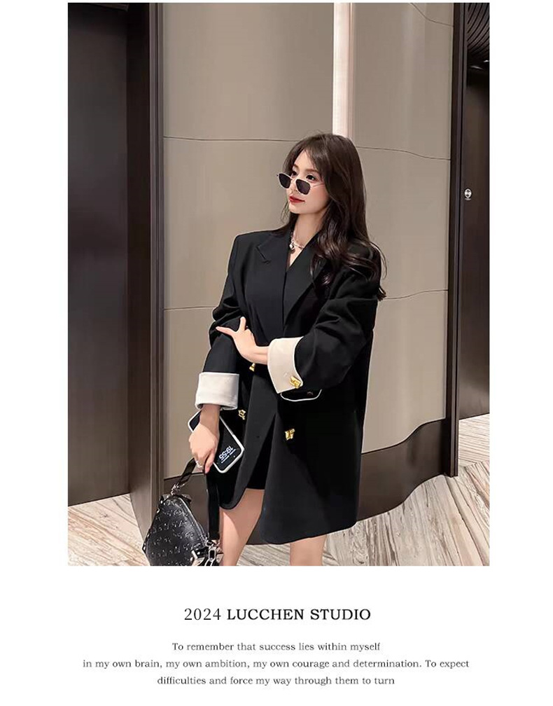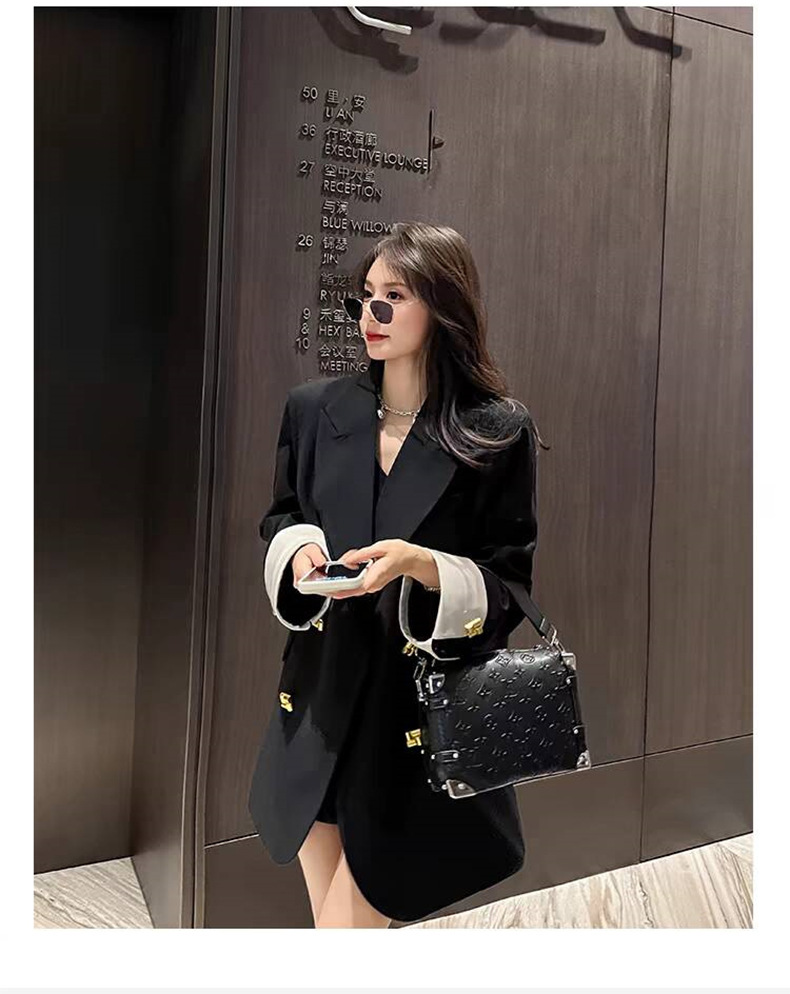 2025 봄 검은 세트 소매 우아한 느슨한 작은 세트 한국 패션 더블 브레스트 디자인 센스 세트