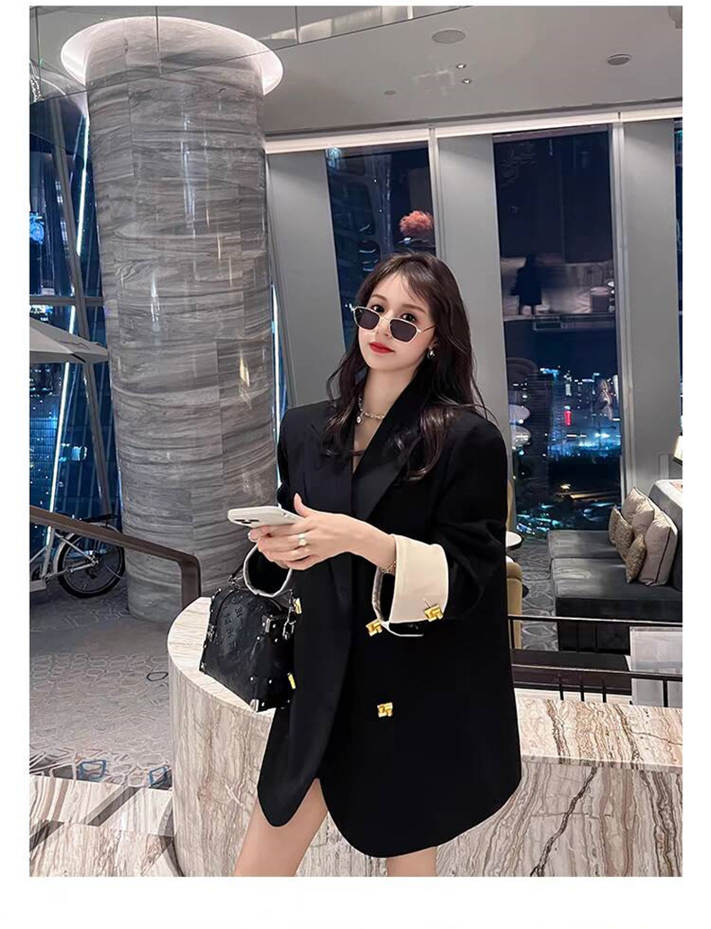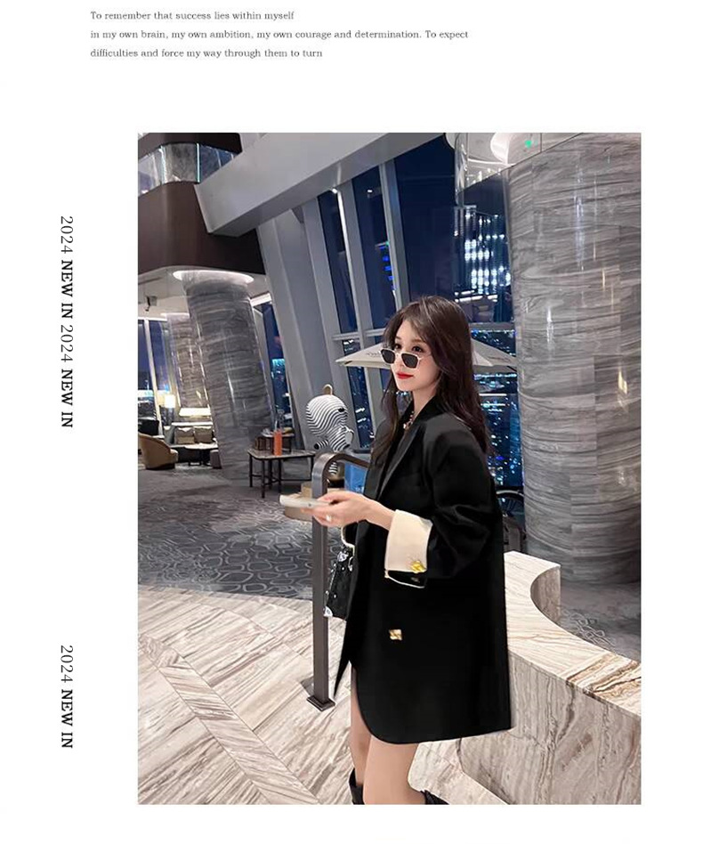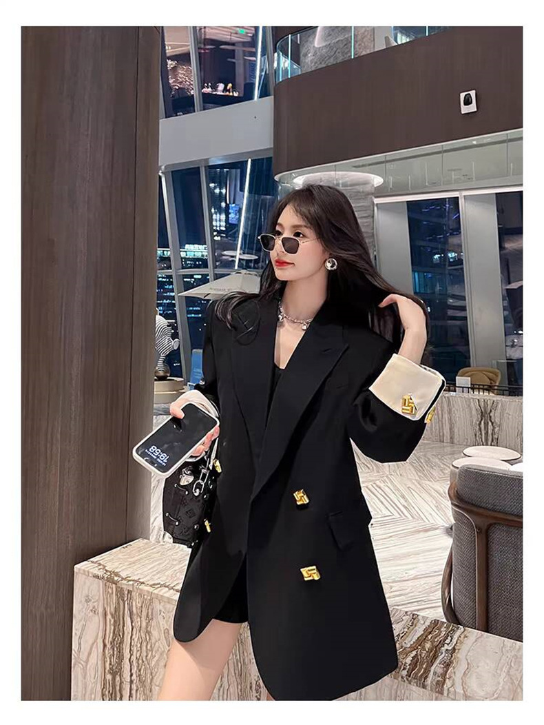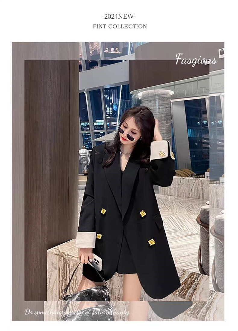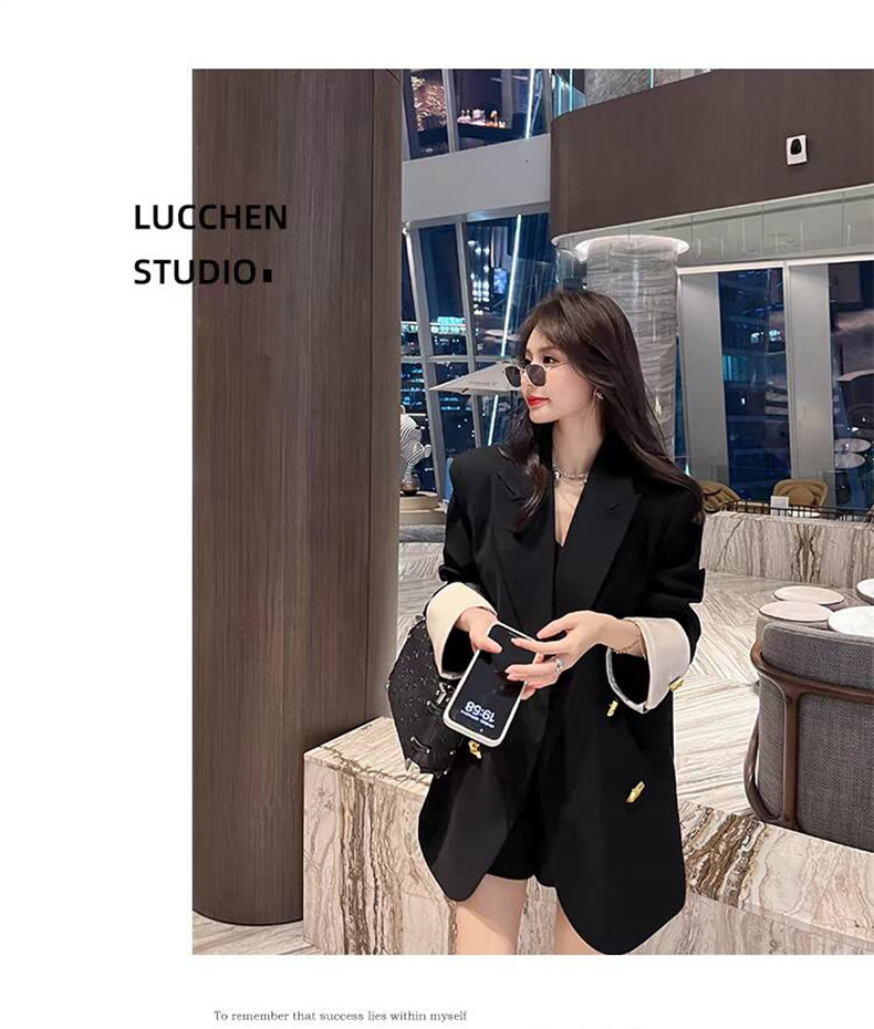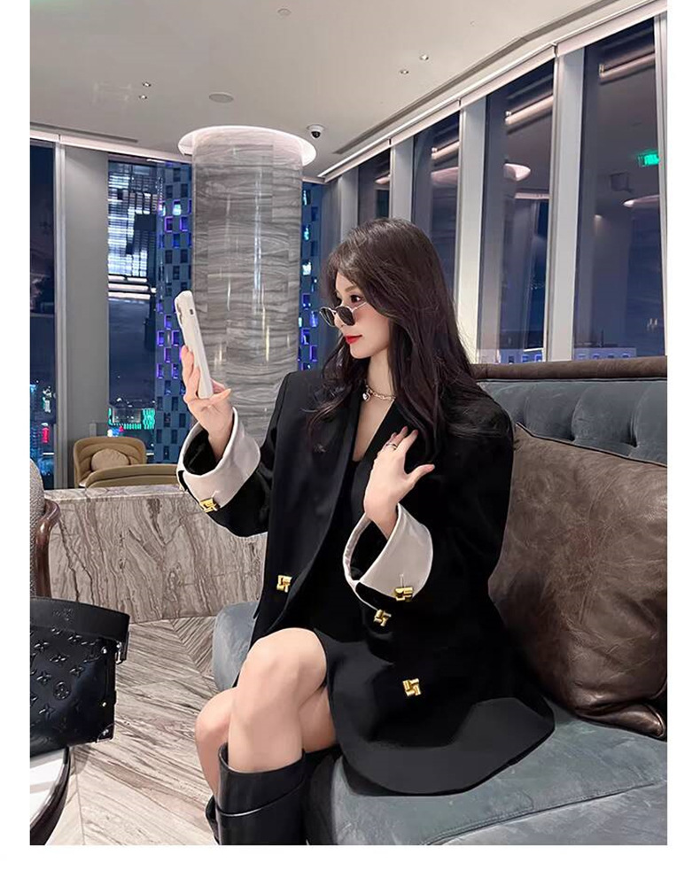 2025 봄 검은 세트 소매 우아한 느슨한 작은 세트 한국 패션 더블 브레스트 디자인 센스 세트스토어 가기